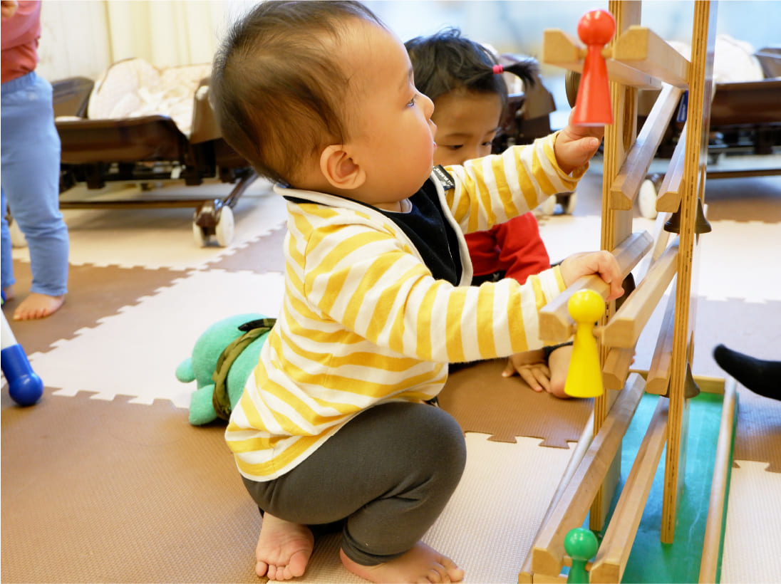 職員は認可保育園と同じ基準で配置しており全員が有資格者です。例えば0歳児3人に保育士が1人担当します。12名定員の小さな保育園だからこそ、一人一人の発達に応じた、きめ細やかな保育を大切にしております。
