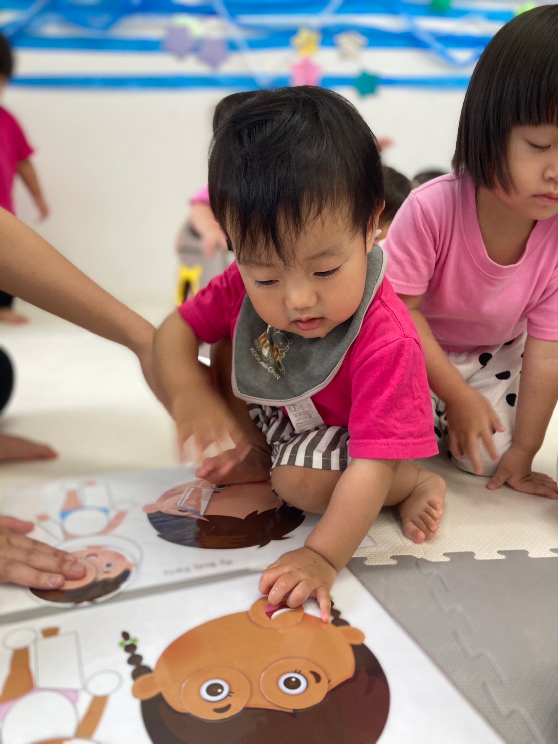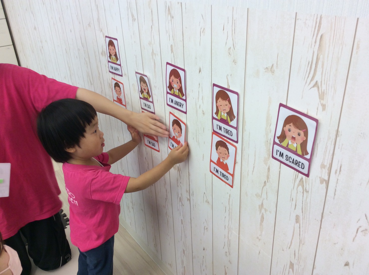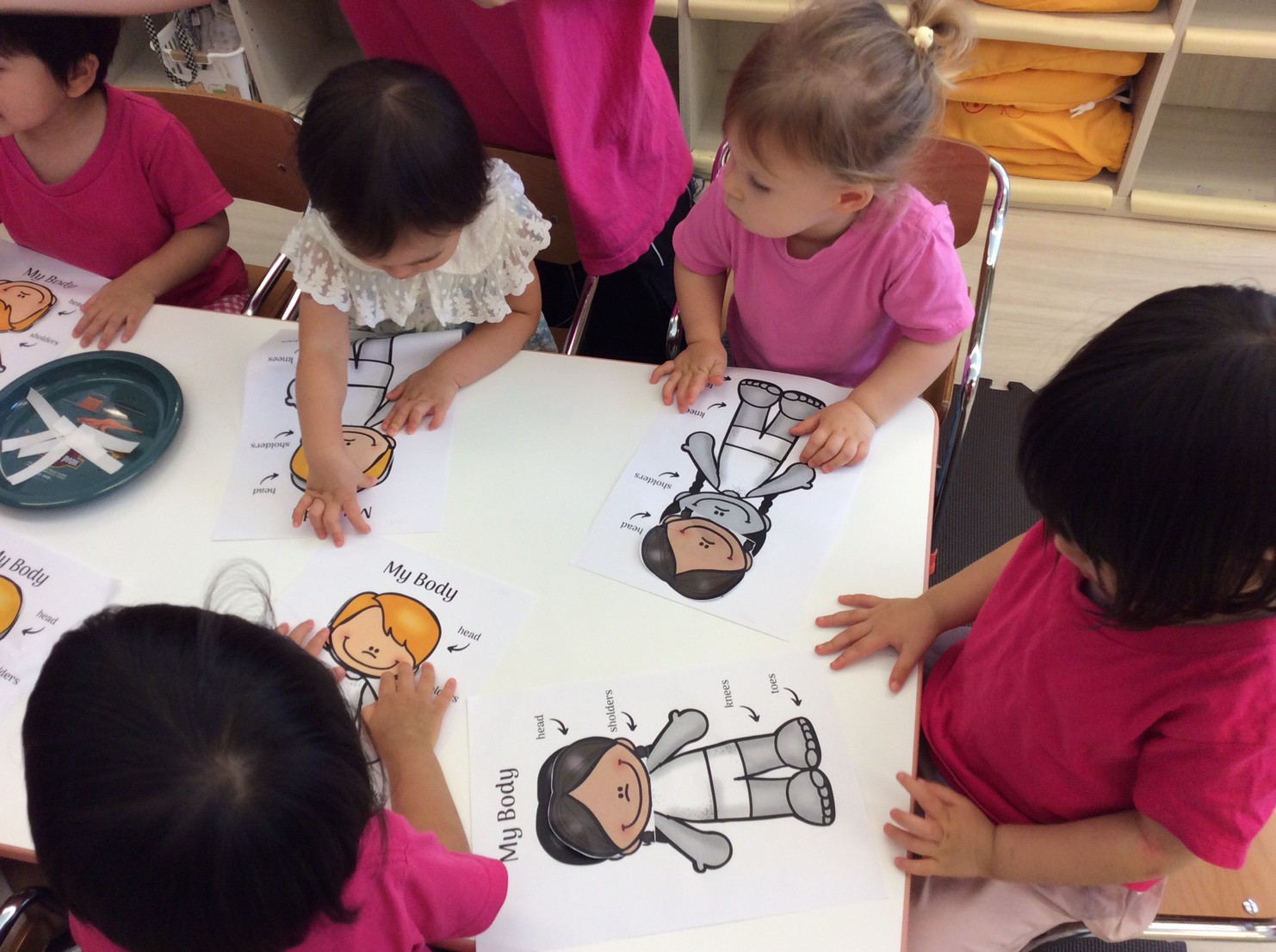 英語保育7月は「身体の部分と気持ち」(Body parts & Emotions)をテーマにして遊びました。