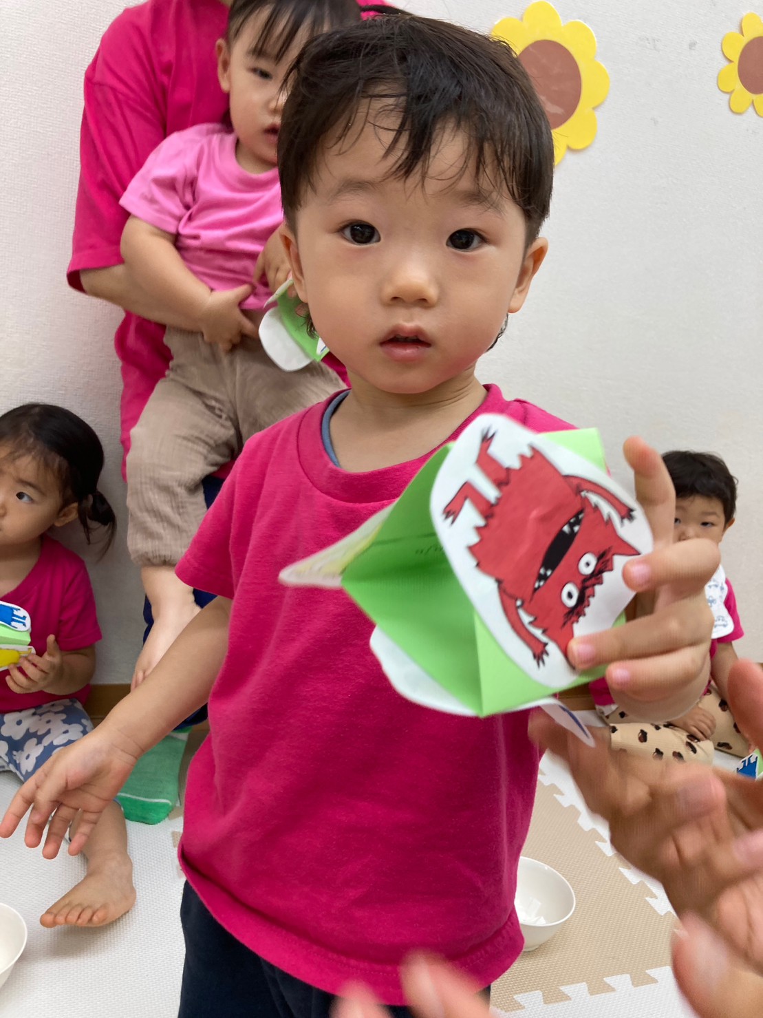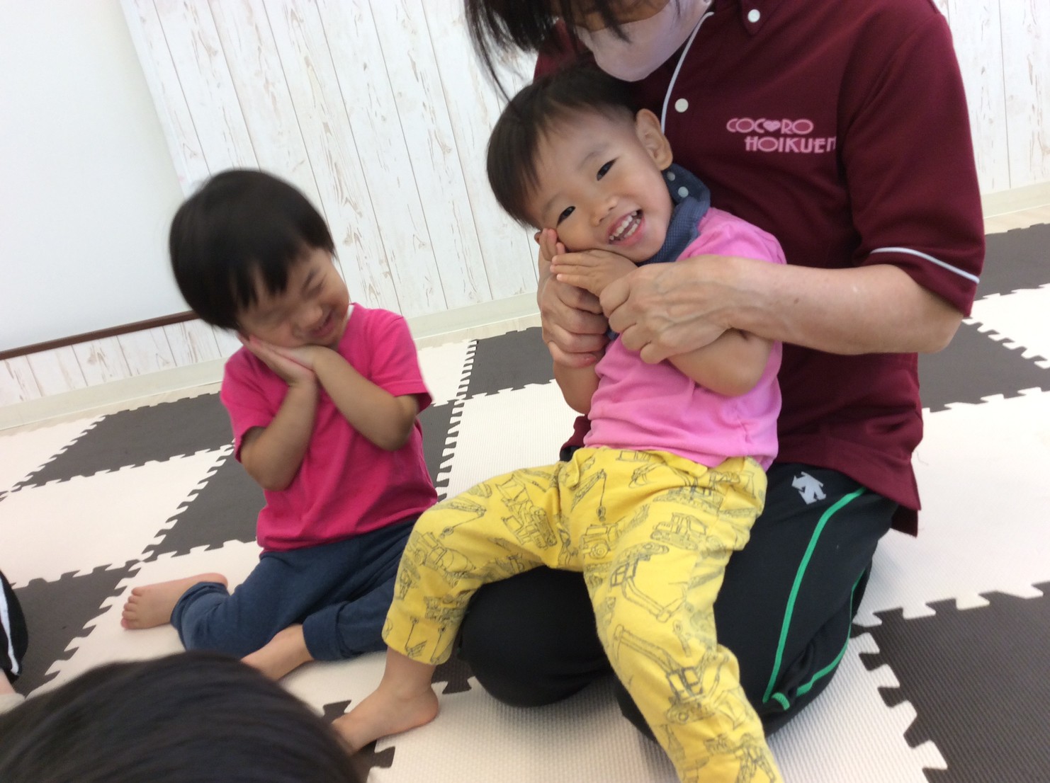 また大型のサイコロに、表情の書いてある物を順番に転がして、みんなで出た目の顔の表情を真似して遊ぶゲームも、みんなとても楽しく参加していました。