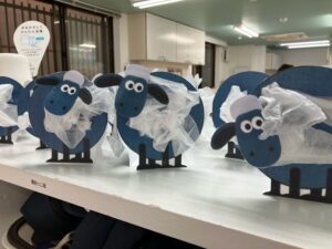 ・Shaun the sheep craft くろいボディーに白いお花紙を貼り付けて羊のショーンを作る