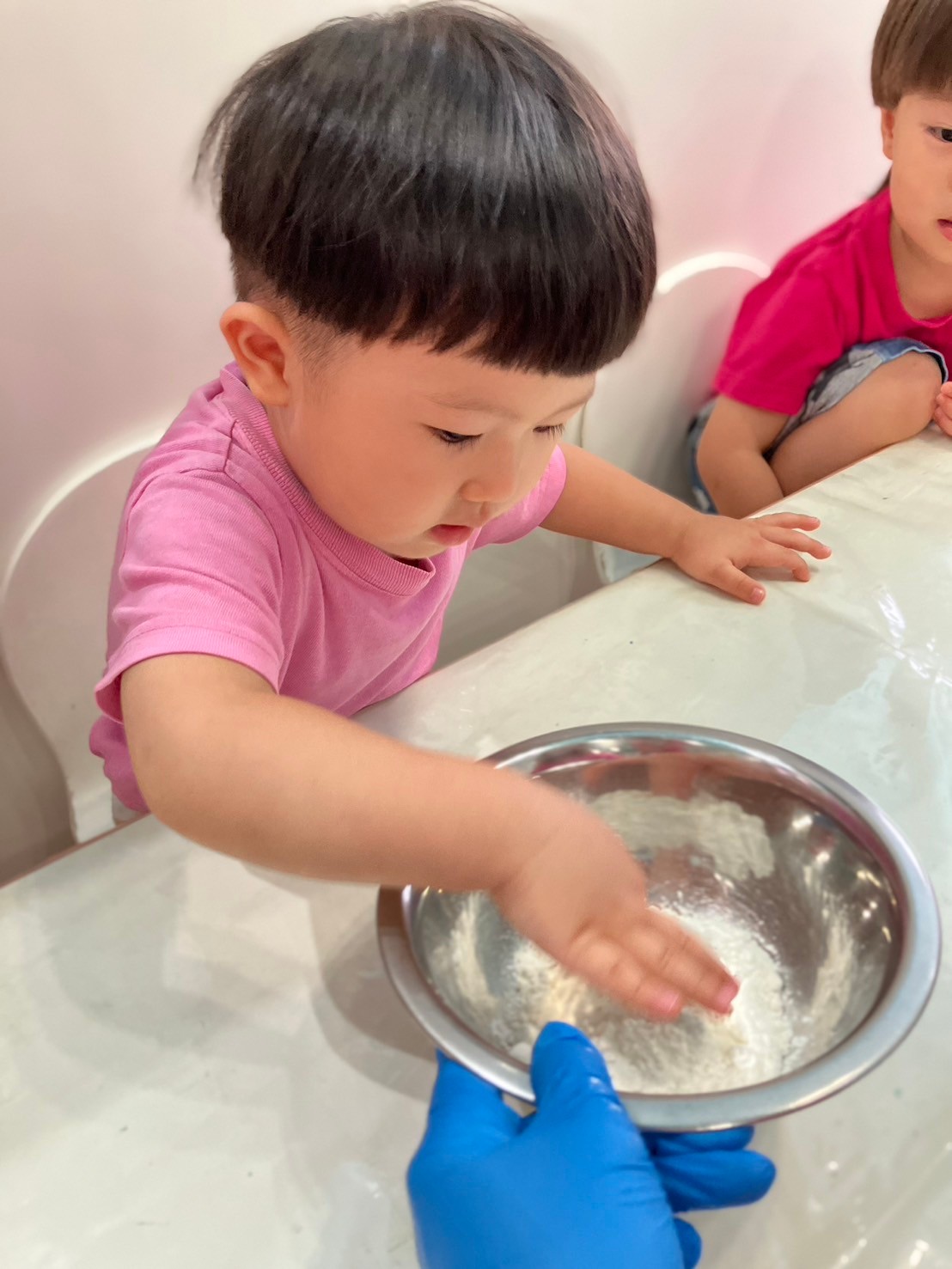 粉を指でちょんちょんして、「さらさらしてるね〜」とお話ししてくれました。