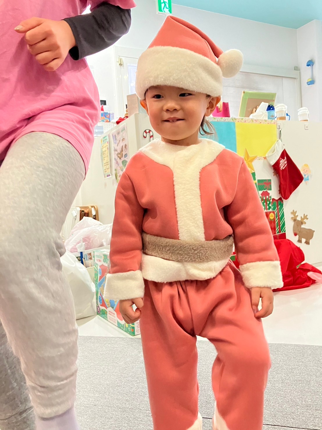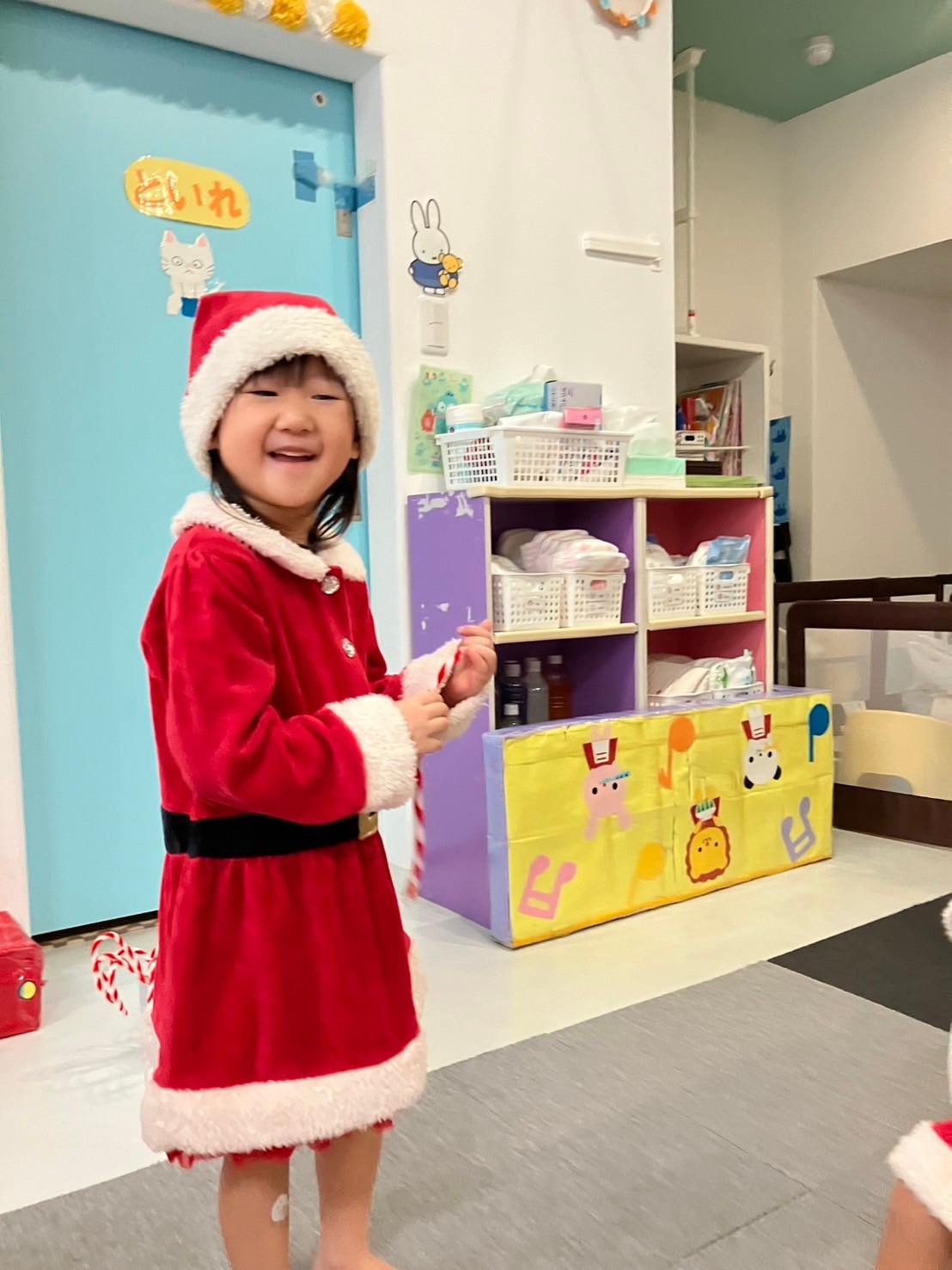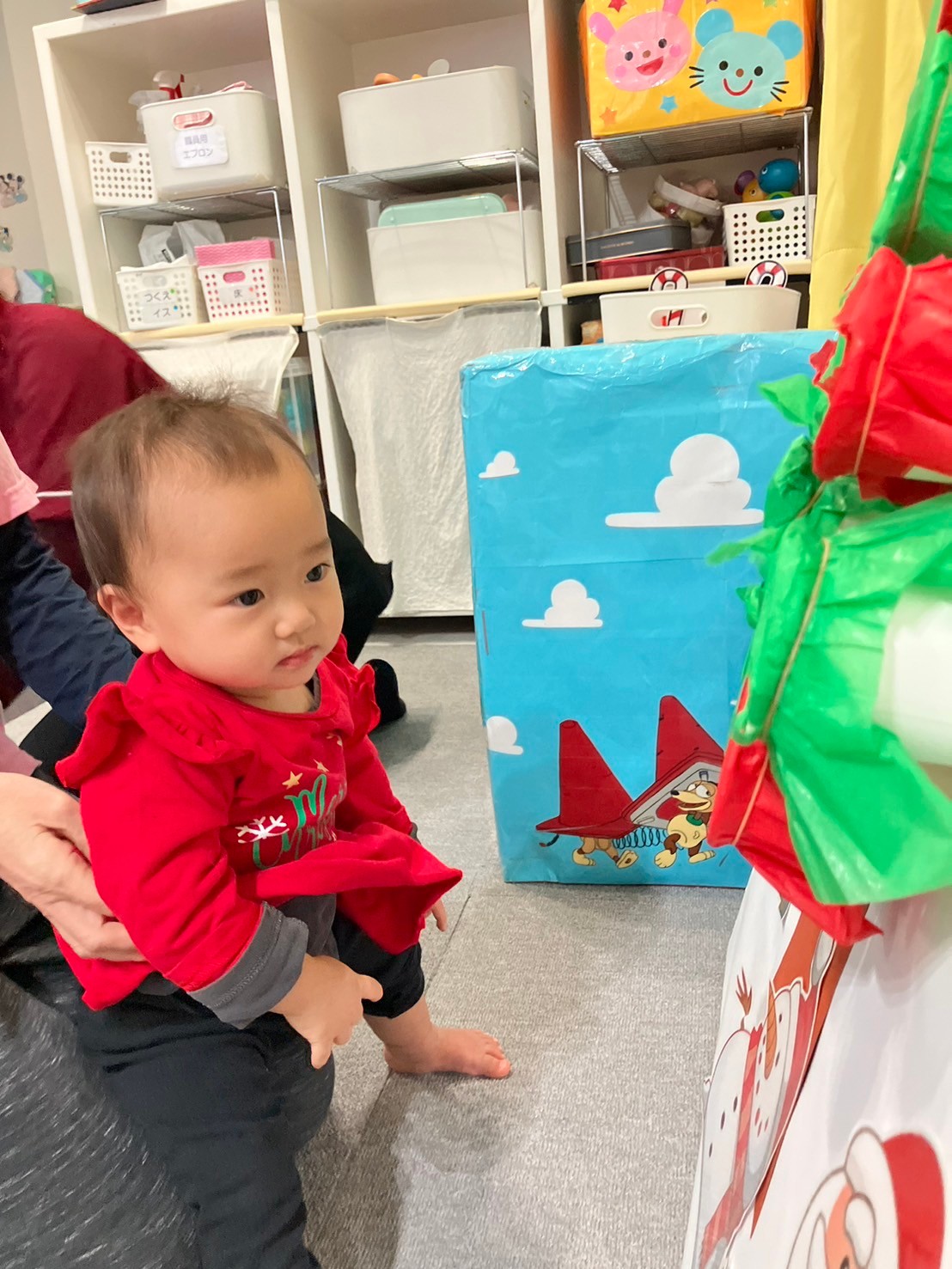 サンタさんの登場には、泣いてしまう子やニヤッと笑って写真の時に横に座る子もいましたが、サンタさんに目もくれず、プレゼントに夢中になる子もいました✴︎