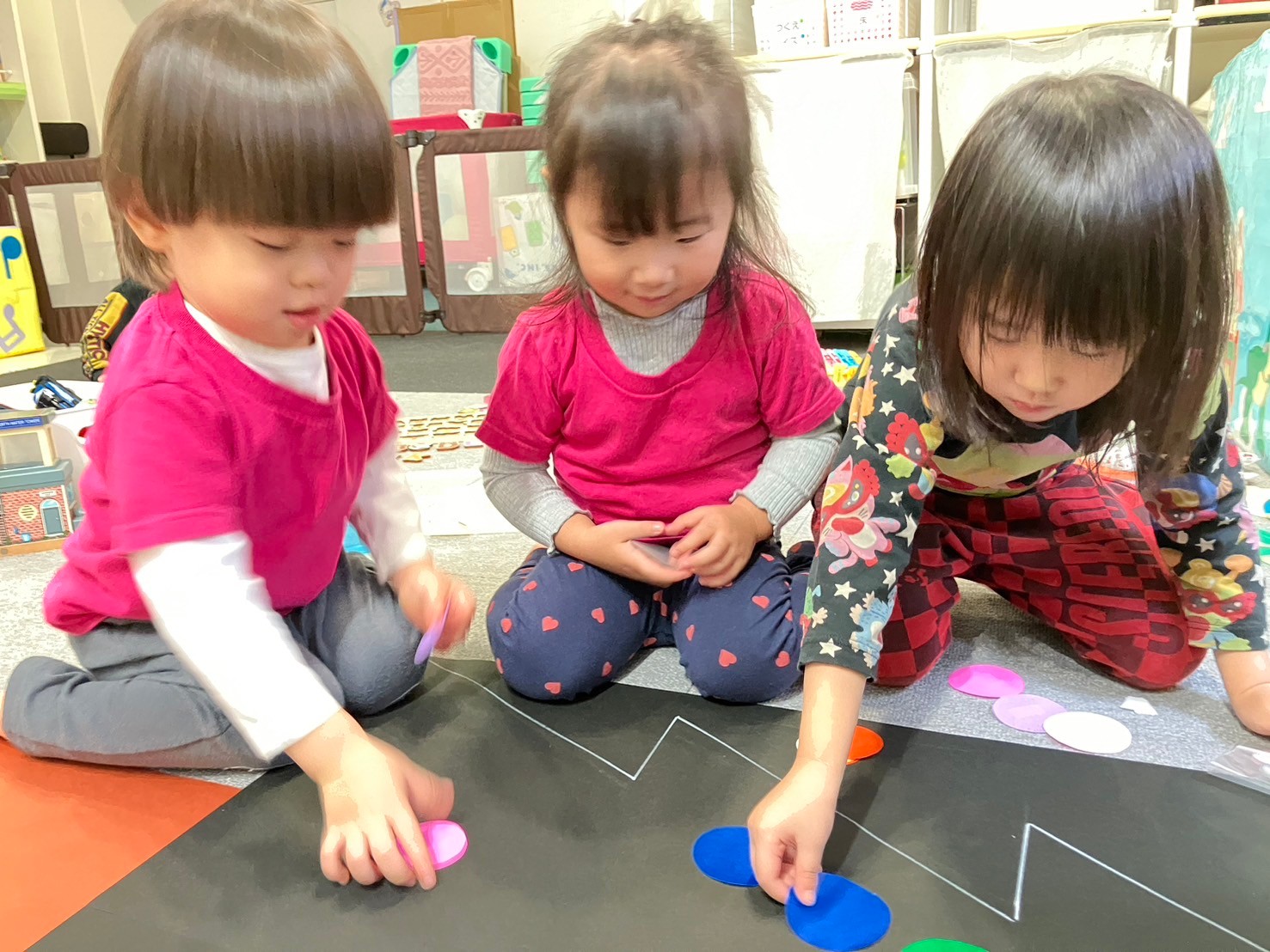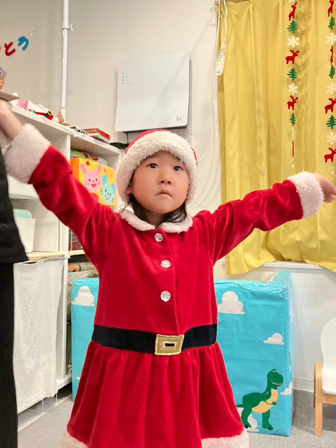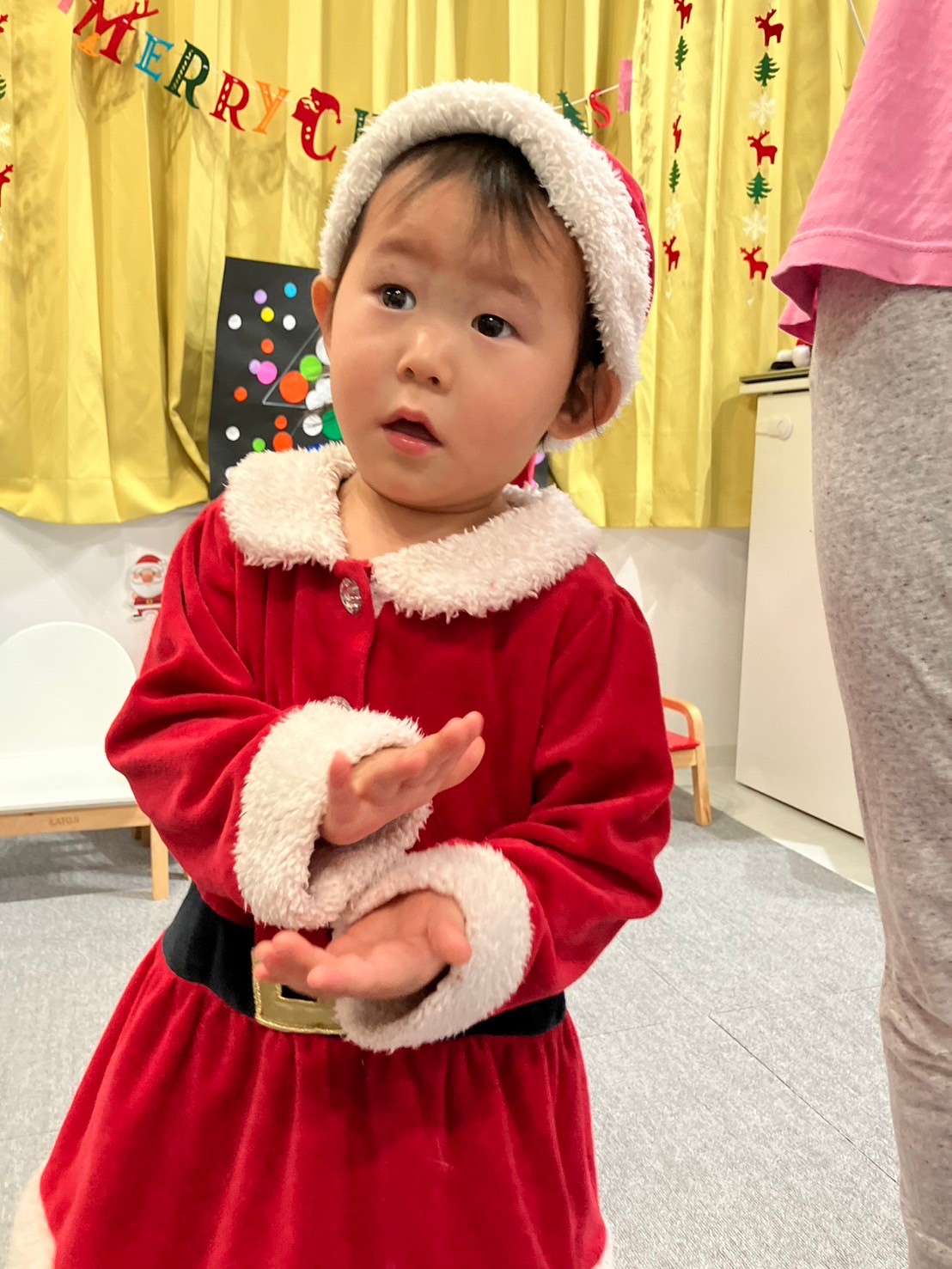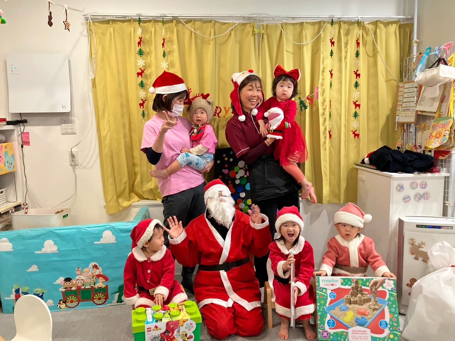 サンタさんの登場には、泣いてしまう子やニヤッと笑って写真の時に横に座る子もいましたが、サンタさんに目もくれず、プレゼントに夢中になる子もいました✴︎