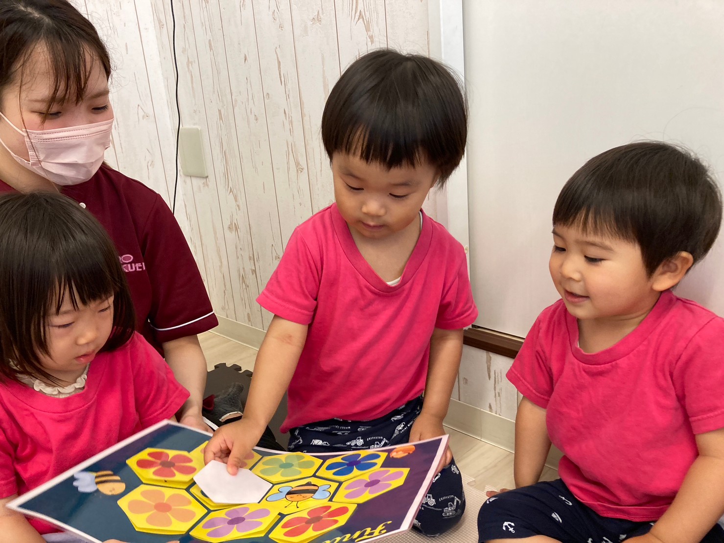 ・Find the bees!蜂の巣の絵の六角形のお部屋の中に隠されている3匹のハチを見つけるゲーム。