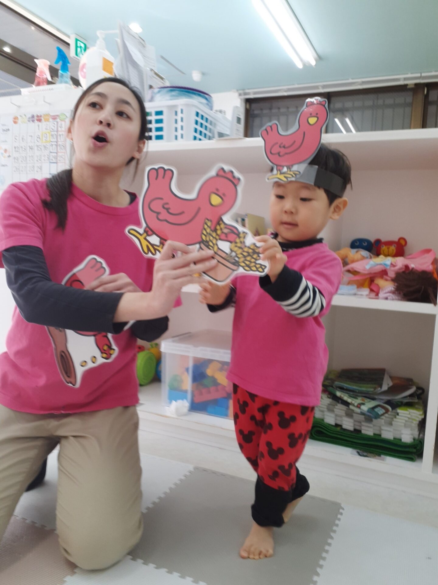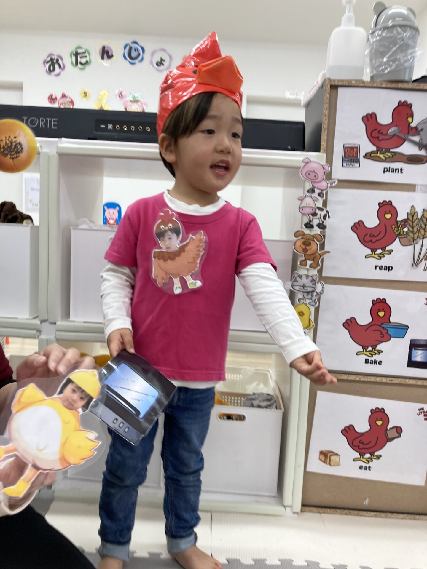 参観日には「The Little Red Hen」の劇ごっこも保護者の皆さんに観ていただけました。