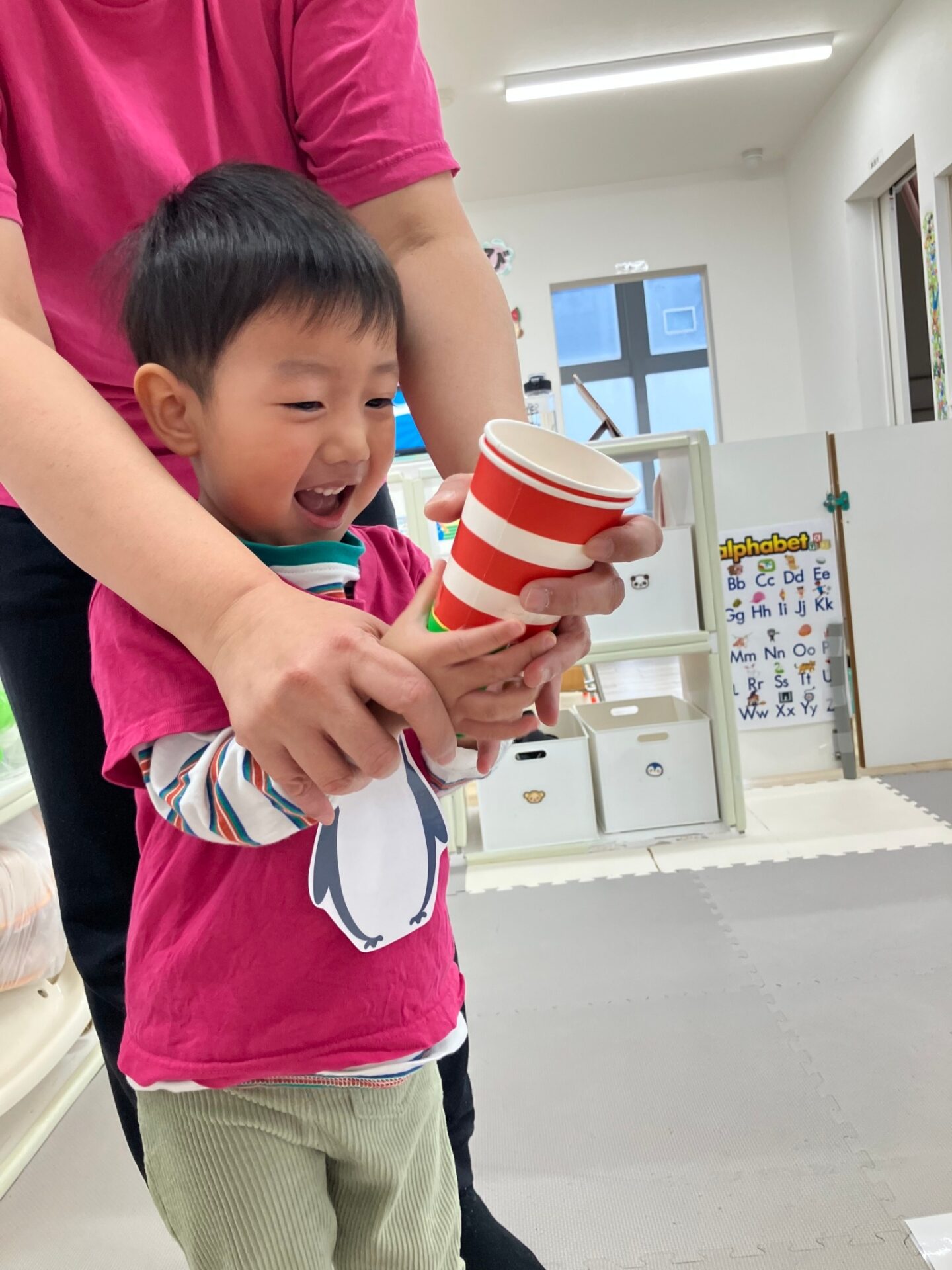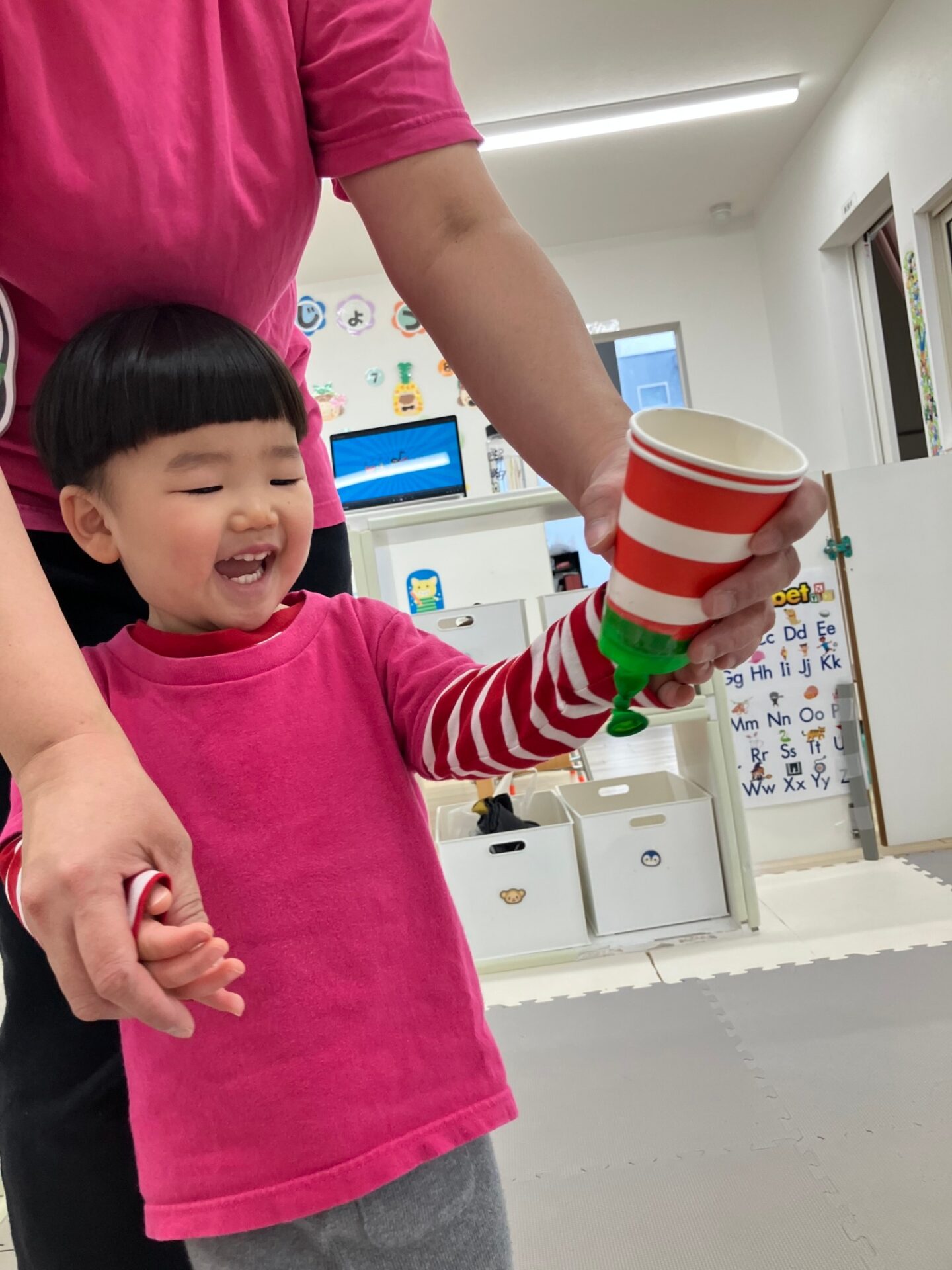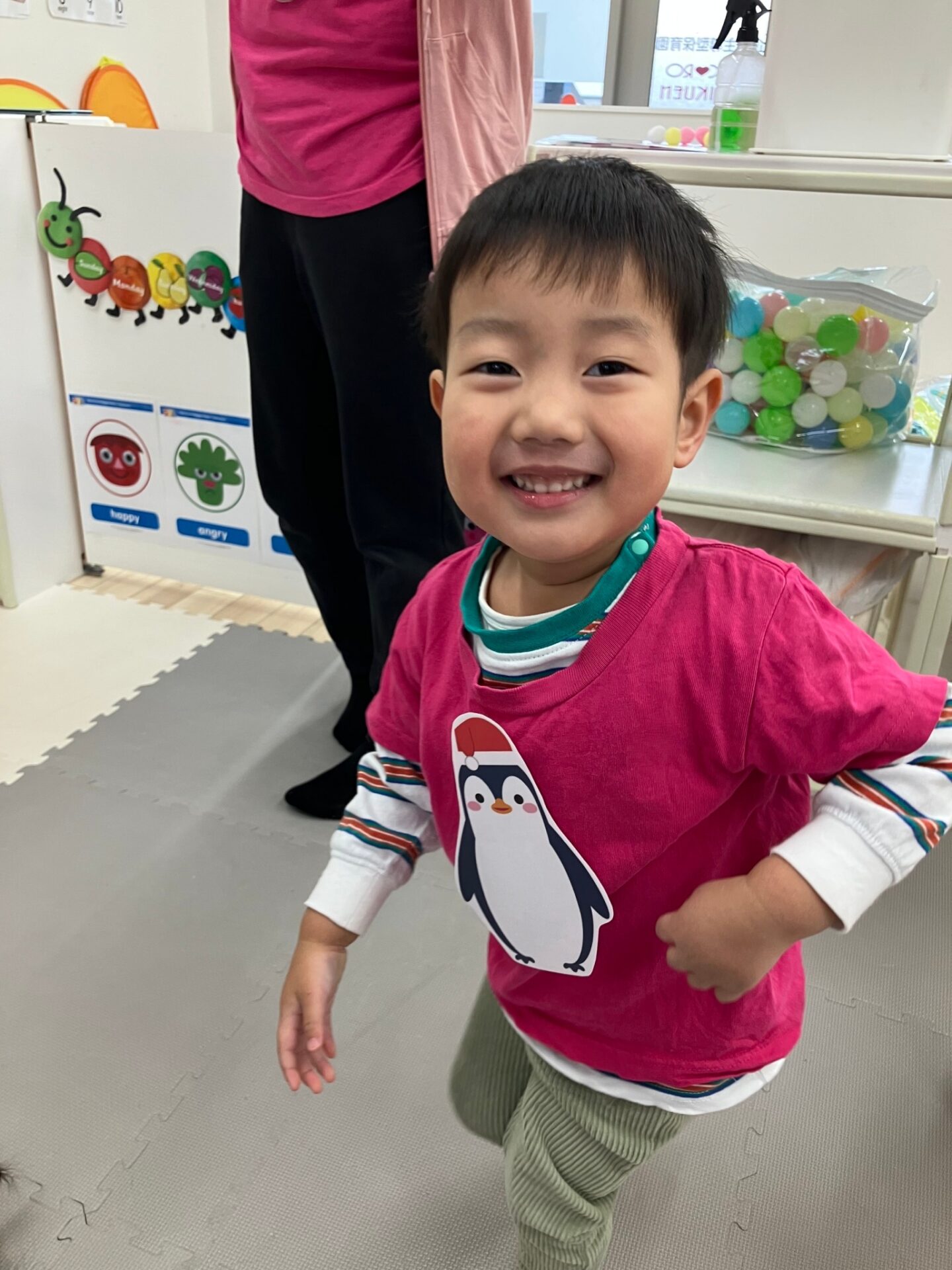 物語の登場人物になりきって「OK!」や「No!」と言ったり、「Don’t open the door!」と歌に合わせて言ってみたり、Hide and Seek(かくれんぼ)をしたりと、これまで聞くだけだった英語を実際に使って表現する、とても良い機会となりました。