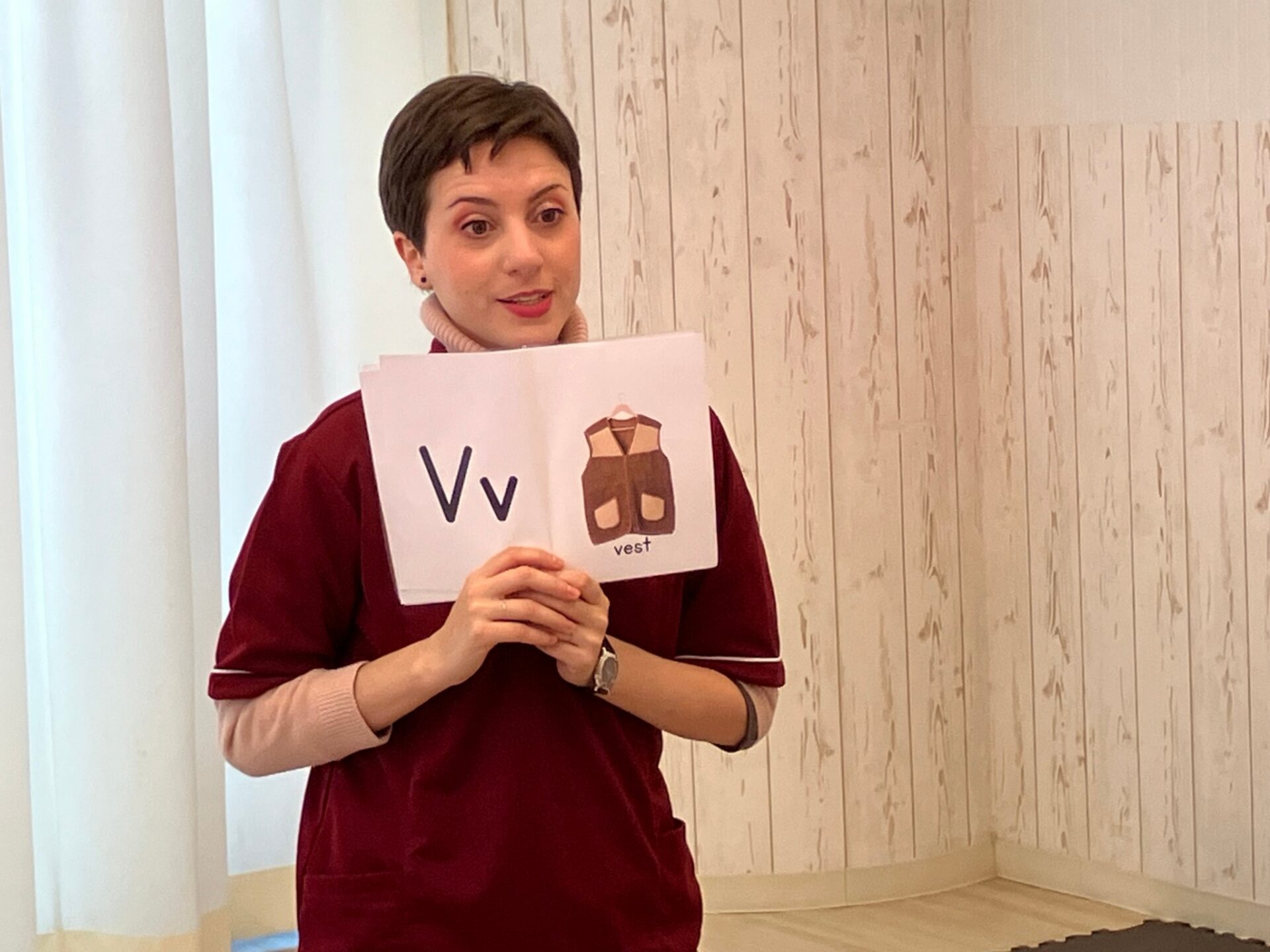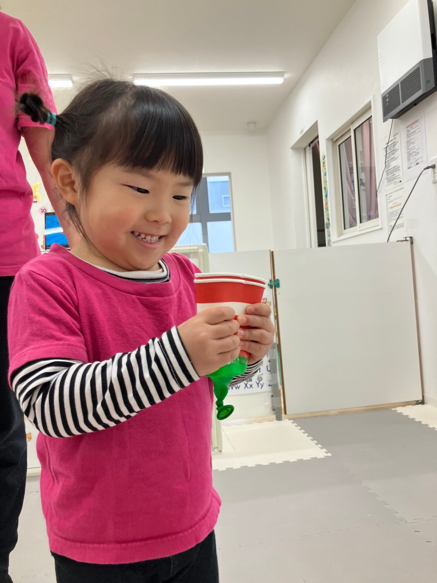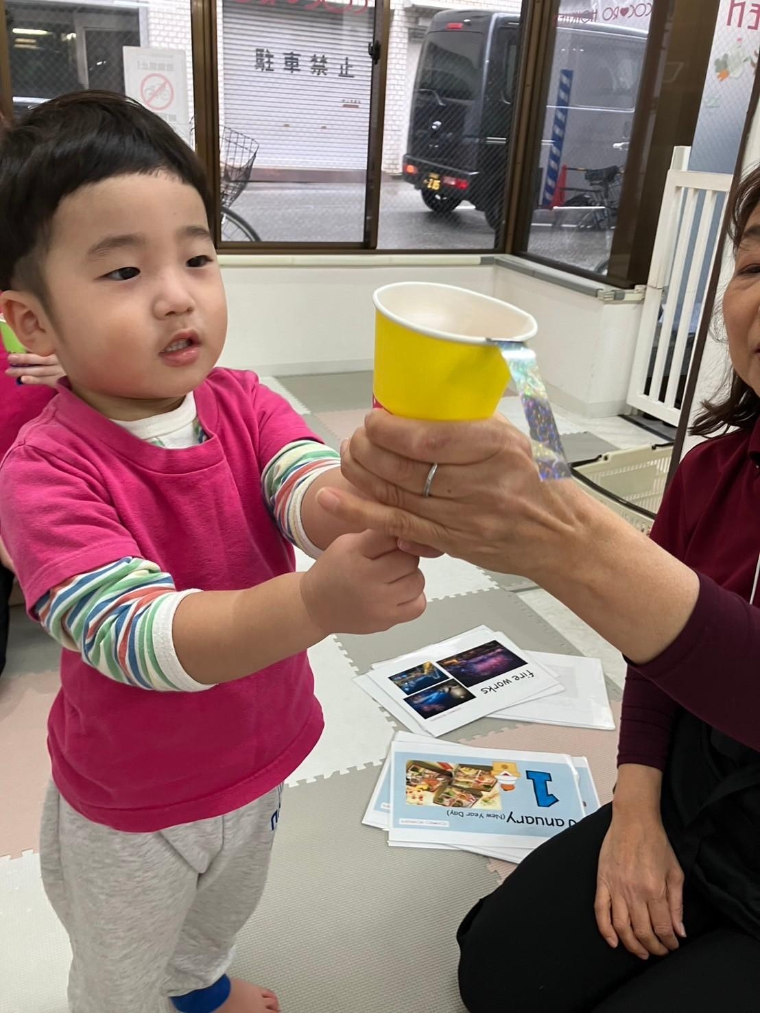 物語の登場人物になりきって「OK!」や「No!」と言ったり、「Don’t open the door!」と歌に合わせて言ってみたり、Hide and Seek(かくれんぼ)をしたりと、これまで聞くだけだった英語を実際に使って表現する、とても良い機会となりました。
