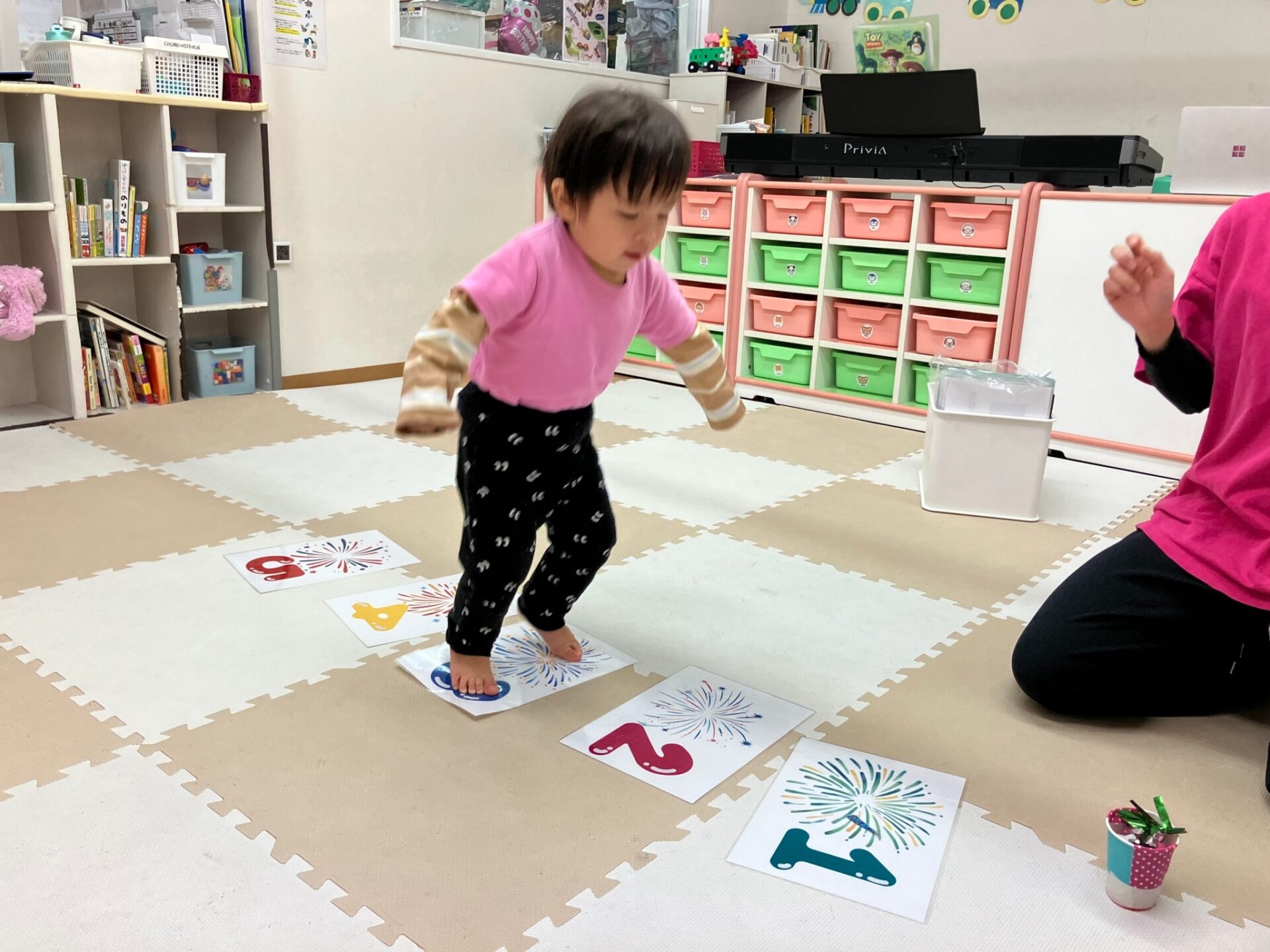 ・Fireworks countdown 5-4-3-2-1 とカウントダウンしながら数字のカード上をジャンプし移動し、最後にHappy New Year!と言って打ち上げ花火の真似をしながら大きくジャンプする遊び。