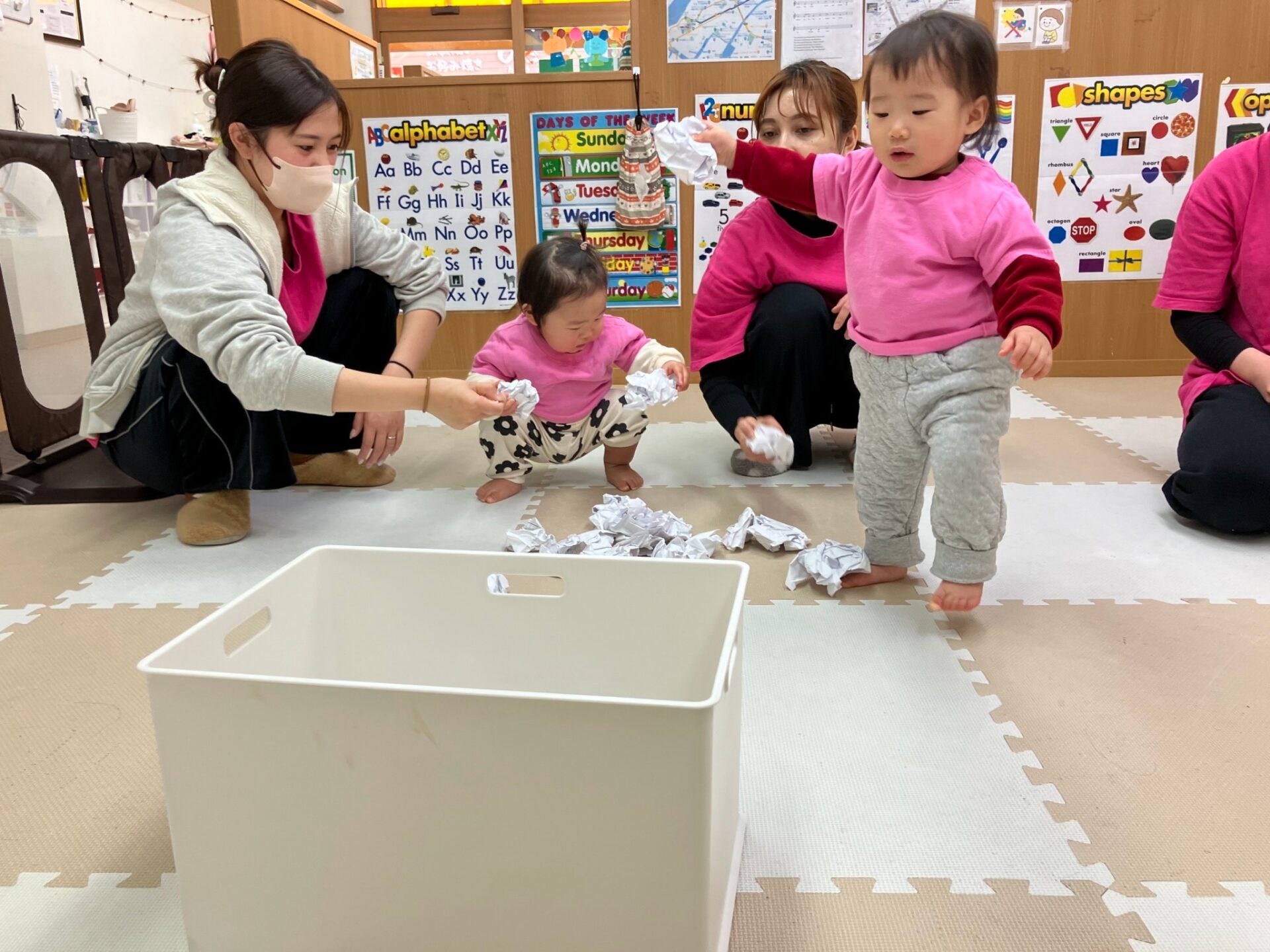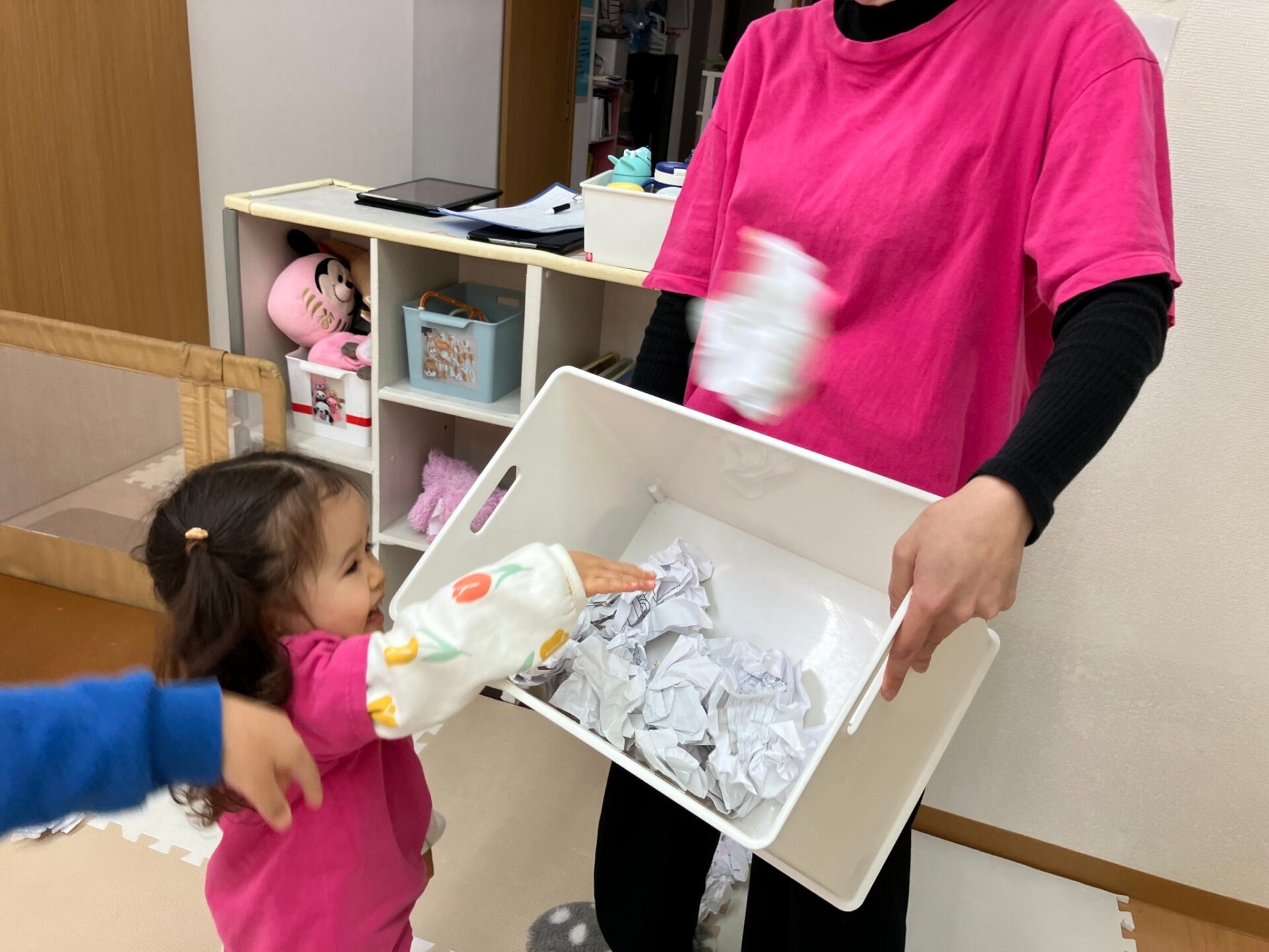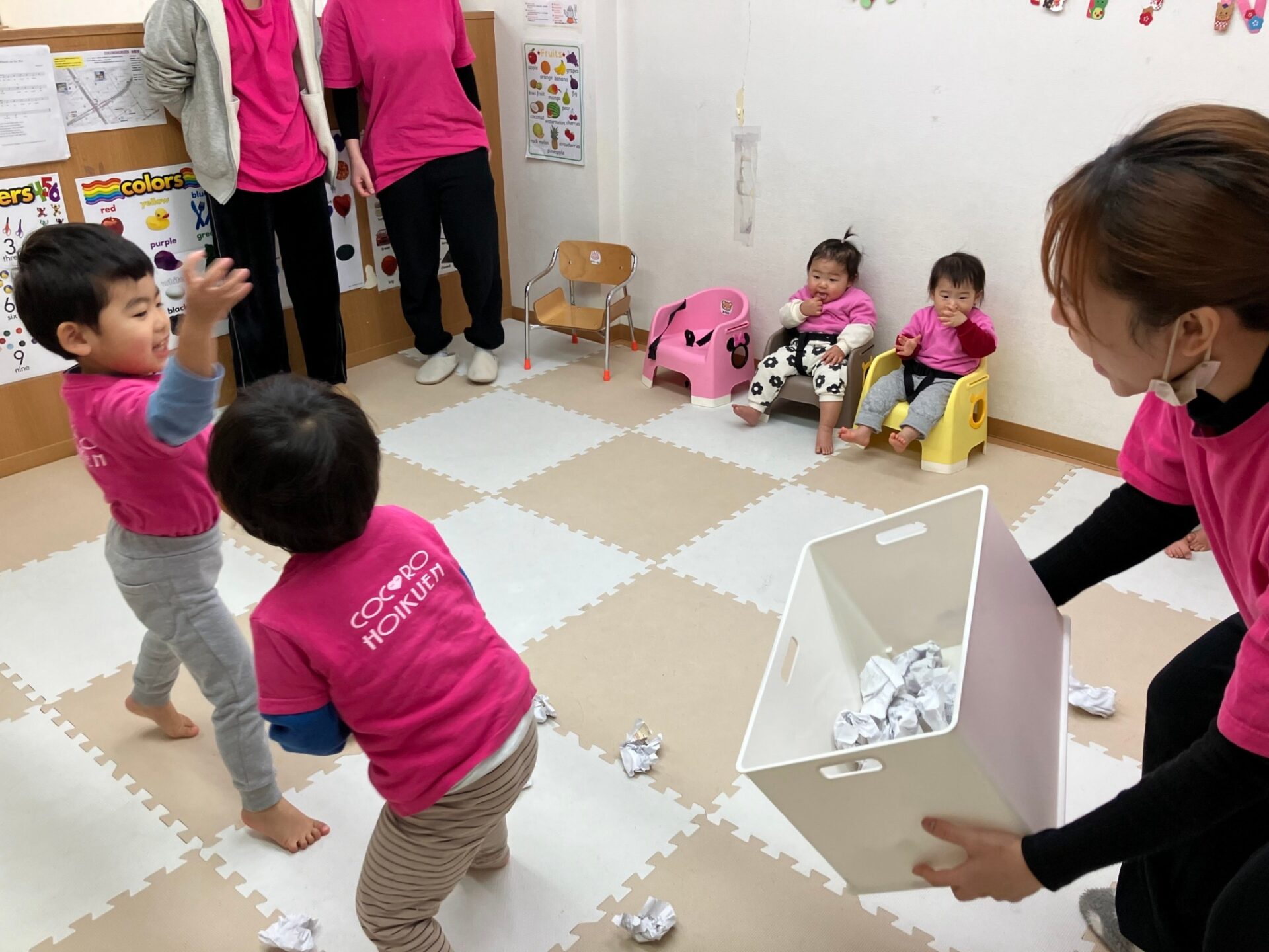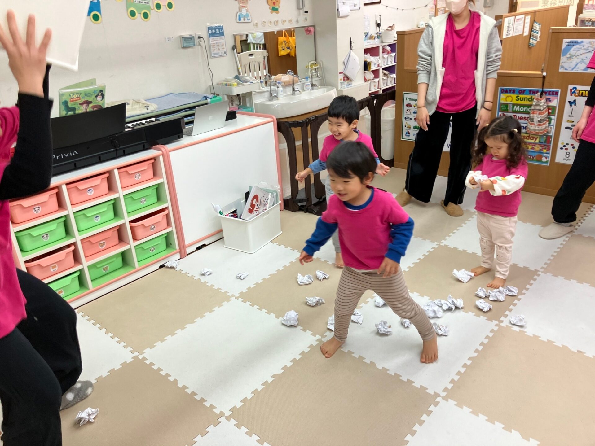 ・Snow ball fight 紙をまるめて作った雪玉を投げっこして雪合戦ごっこをする