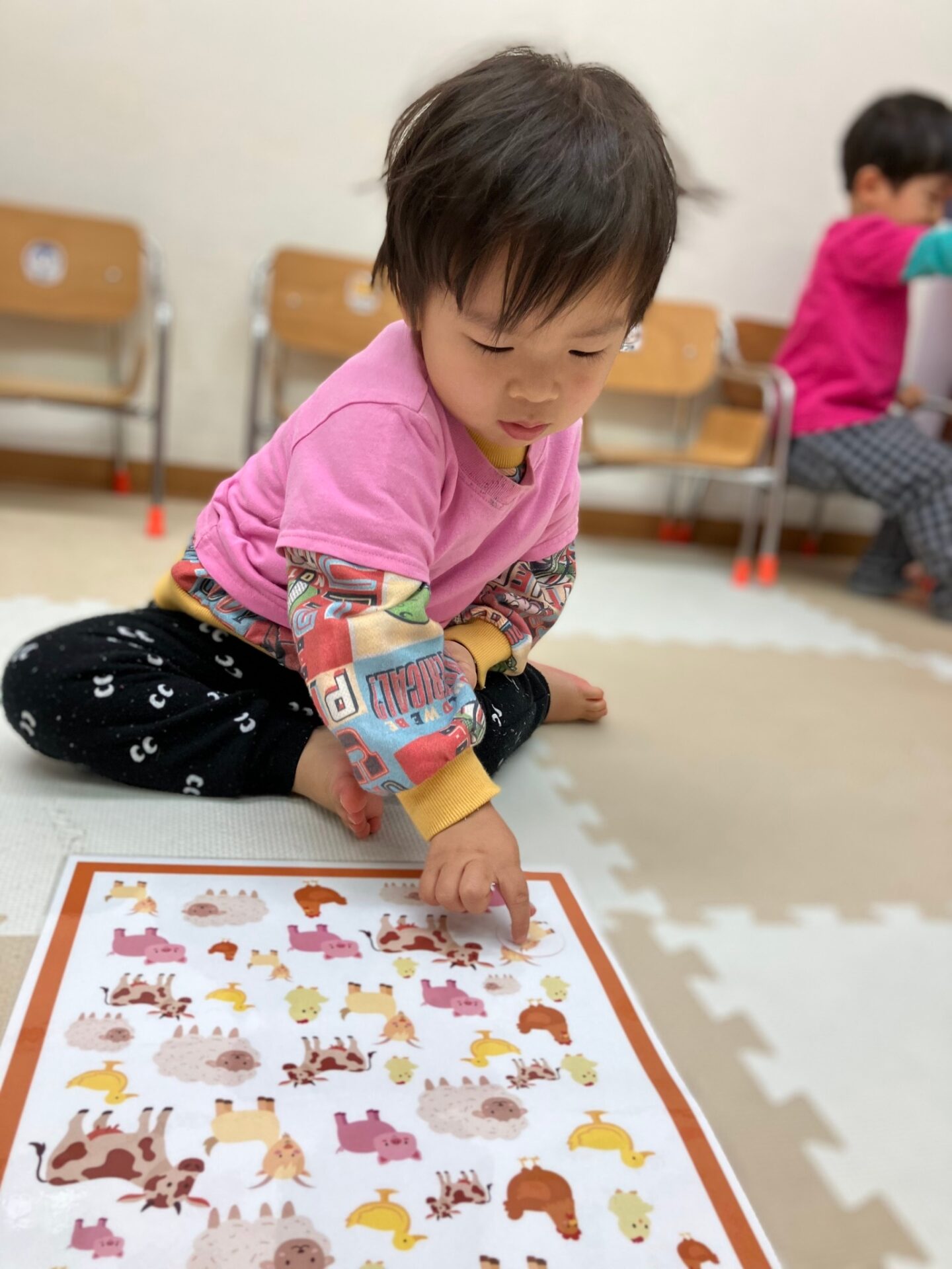 ・Animal HIde and Seek 草のうしろに隠れた頭としっぽを見て、同じ動物を見つけ絵合わせして貼る