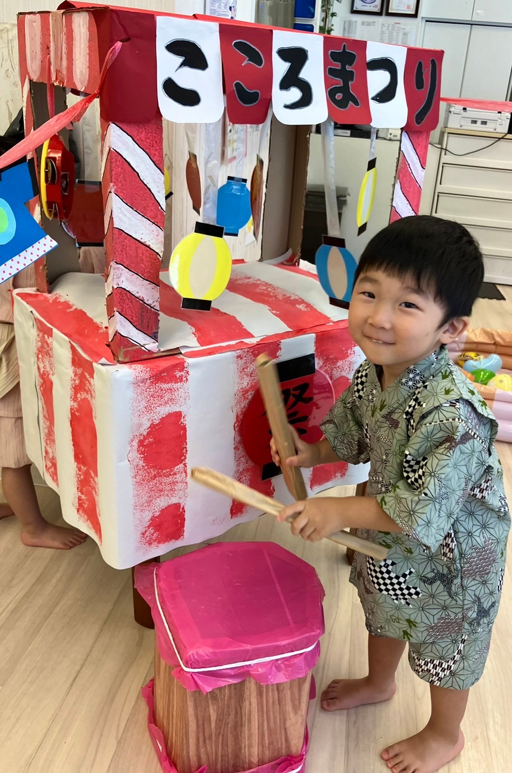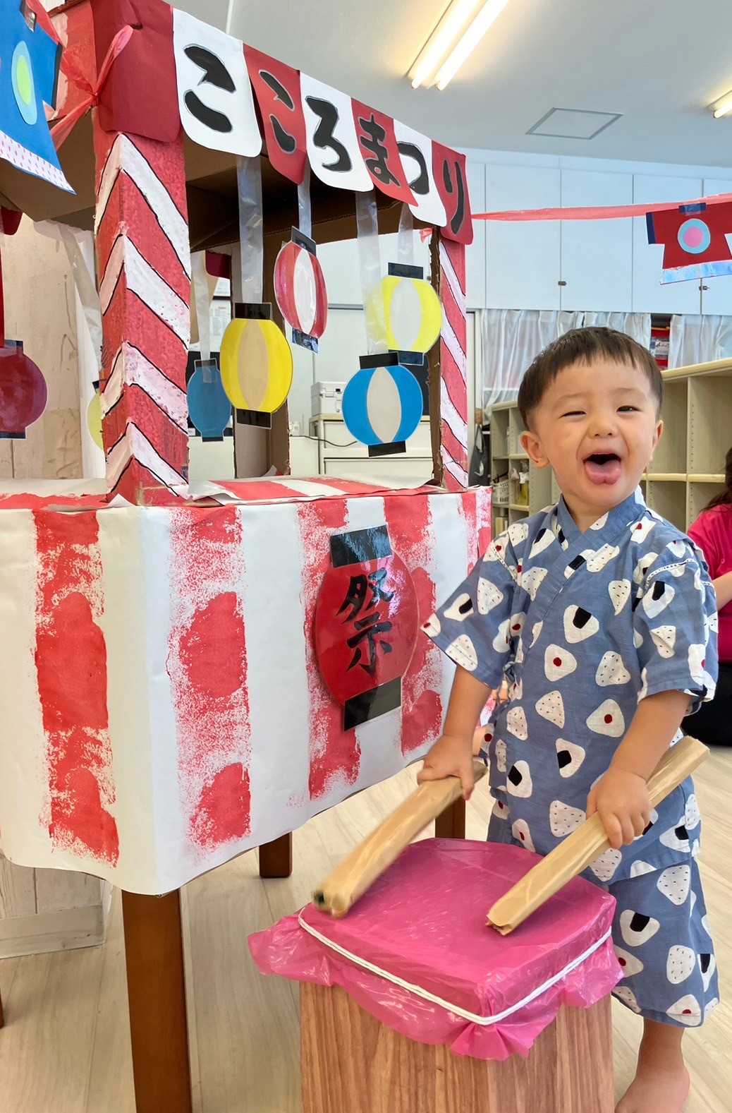 第一声に「おまつり、いってきたよ」と子ども達の声が聞こえ、お祭り気分全開の8月です。