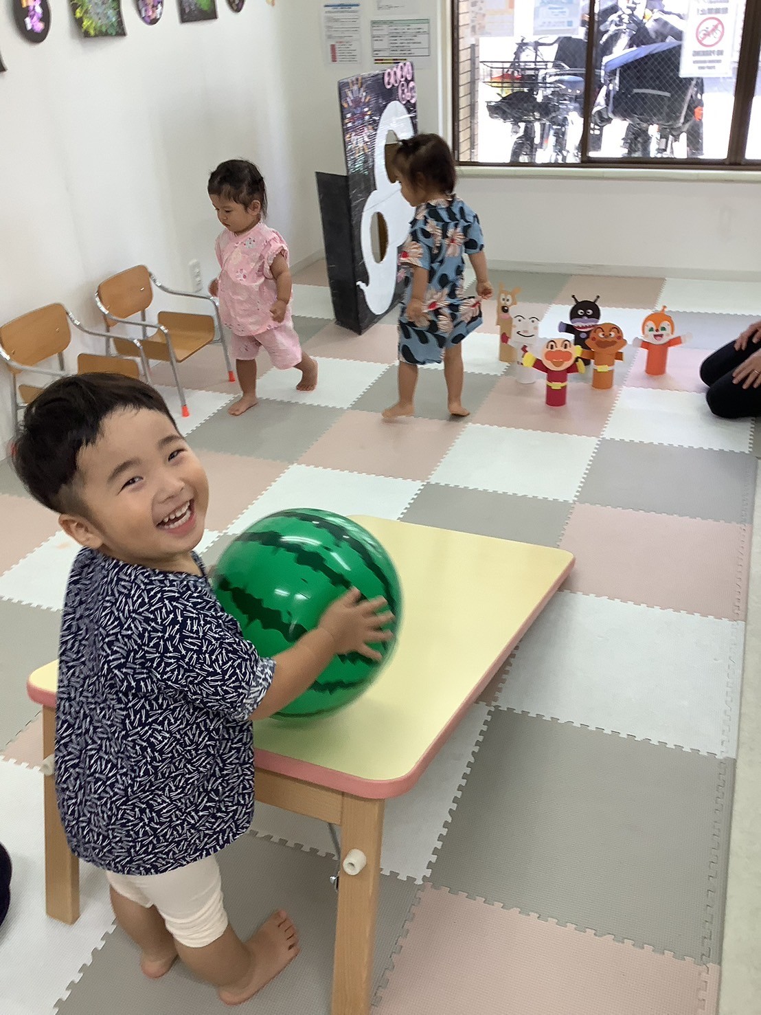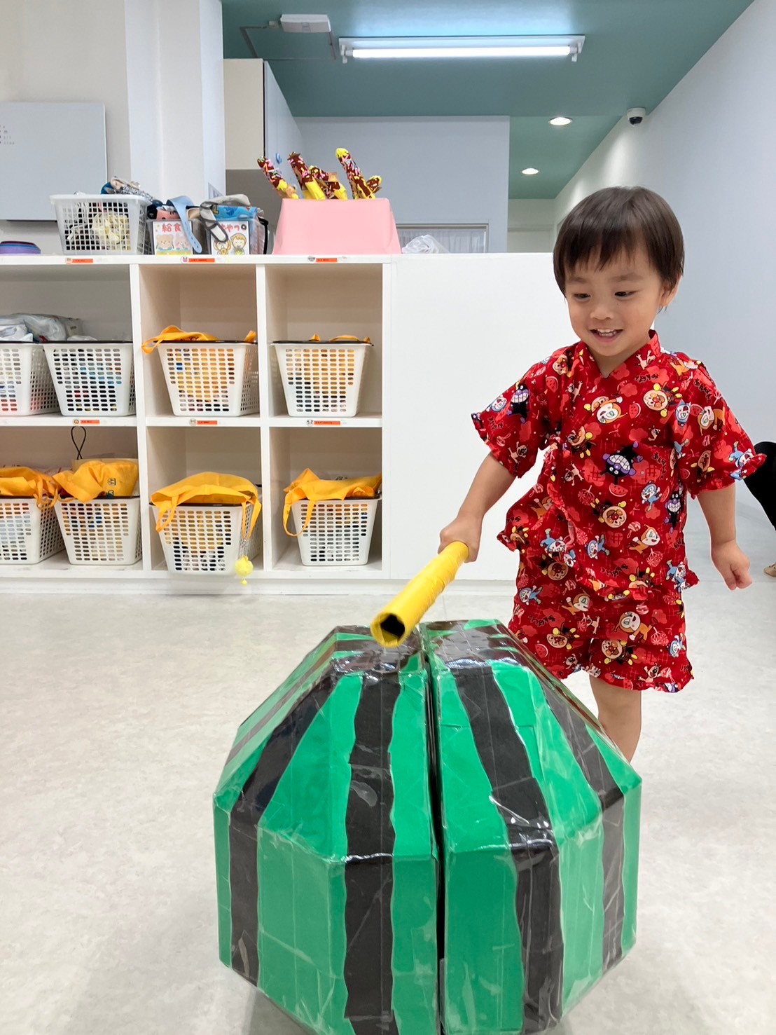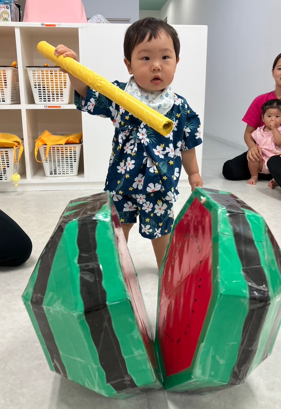 はじめは、ぱーーん!と割れるスイカに驚いた表情でしたが、慣れてくると何度も何度も挑戦していました⭐︎