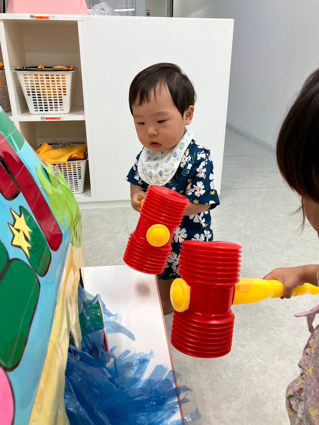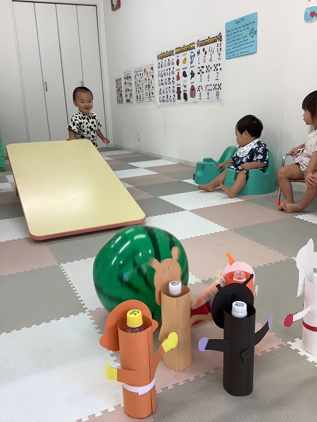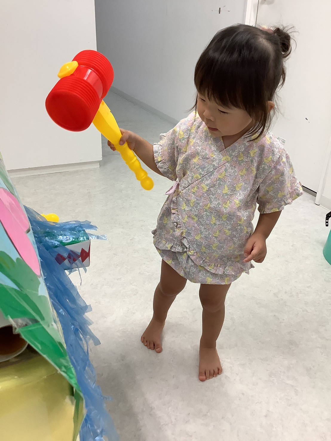 はじめは、ぱーーん!と割れるスイカに驚いた表情でしたが、慣れてくると何度も何度も挑戦していました⭐︎