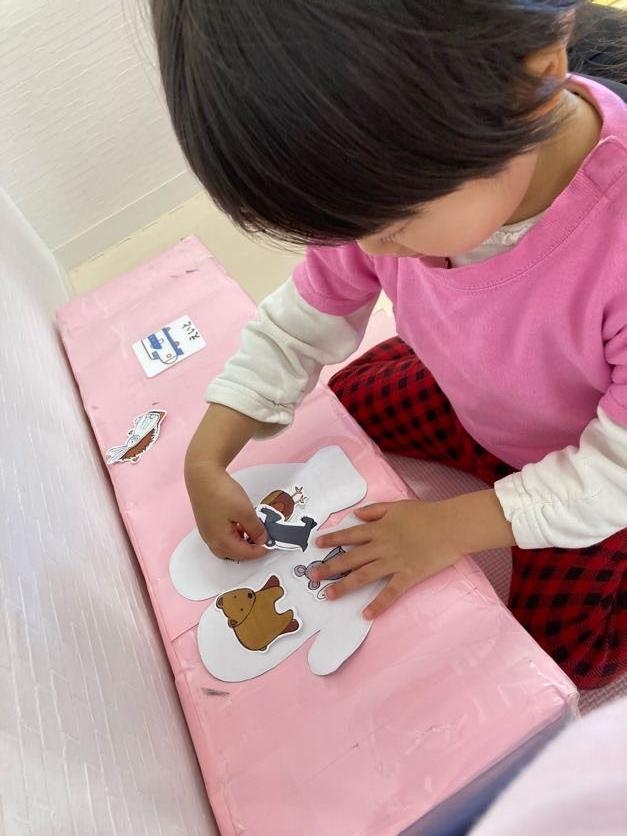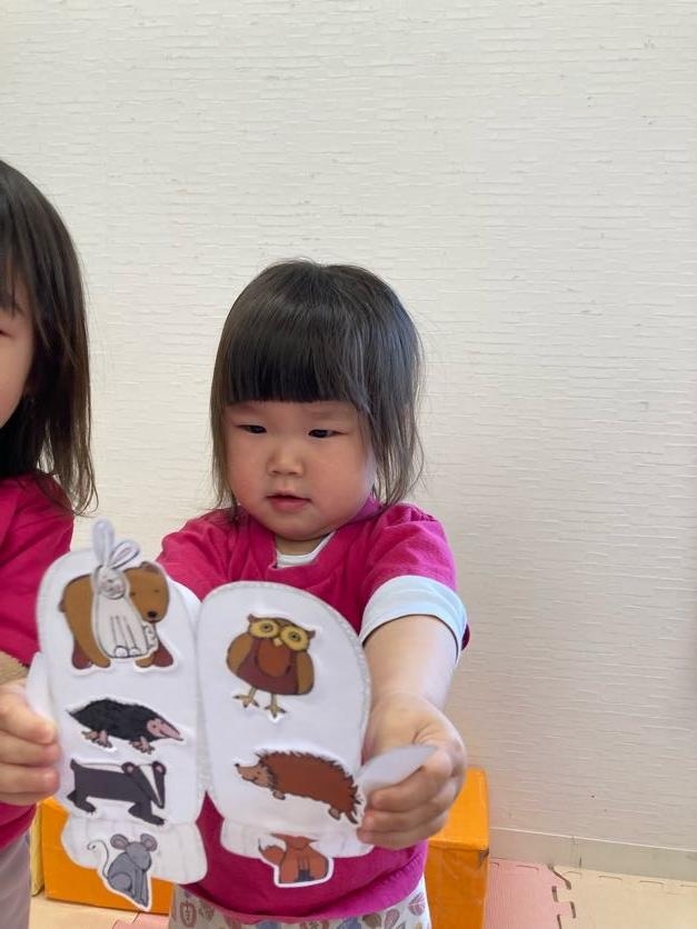 ・Mitten Craft 「手袋」の物語に出てくる動物を手袋の絵の中に貼り付ける遊び