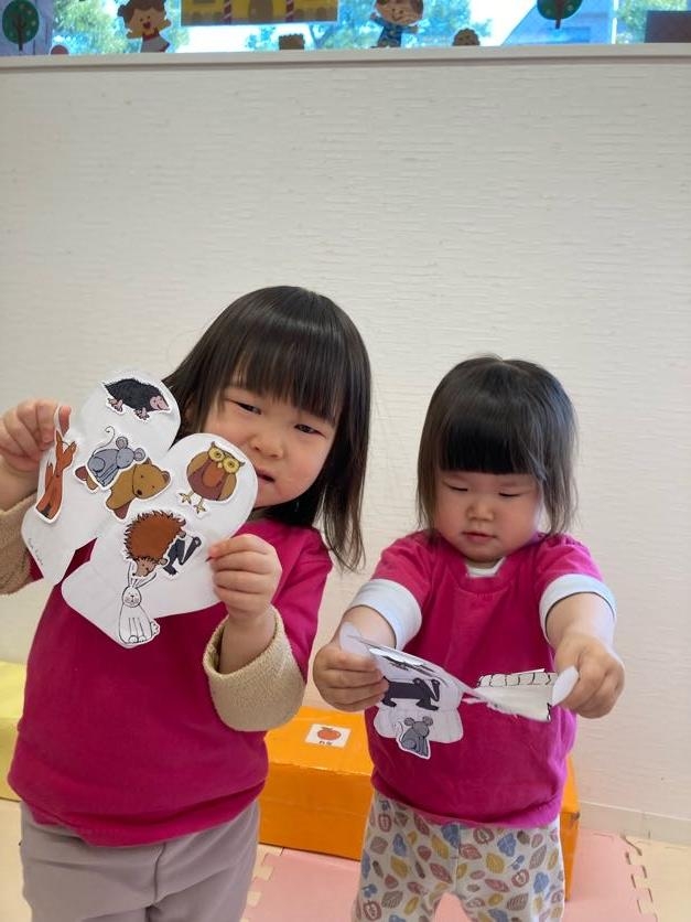 動物のダンス、虫取りごっこやアイスクリームの色合わせ、魚釣りごっこ、落ち葉の色合わせ、