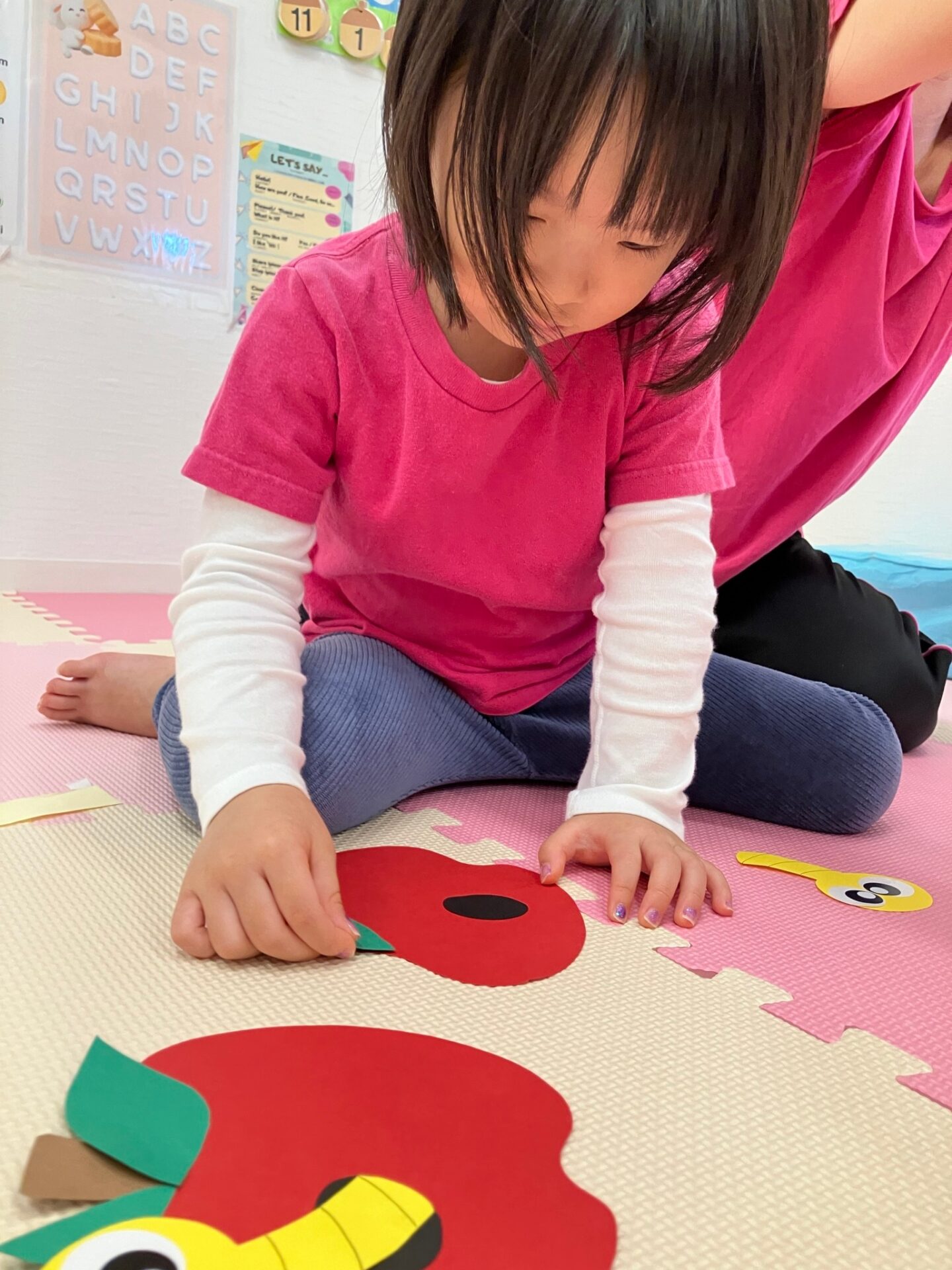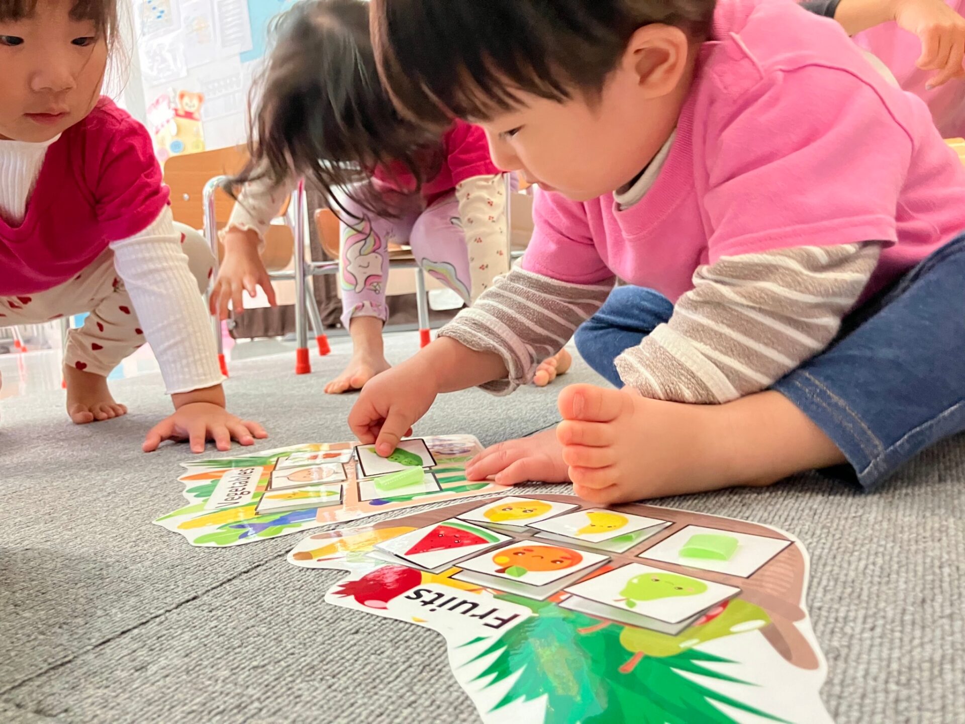 ・Apple Color sorting 赤、黄、緑のリンゴを色ごとに集めて正しい場所に貼る