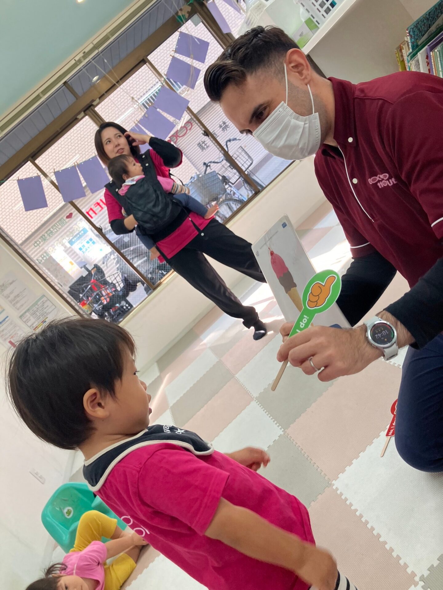 歌にあわせて楽しく真似してくれました。