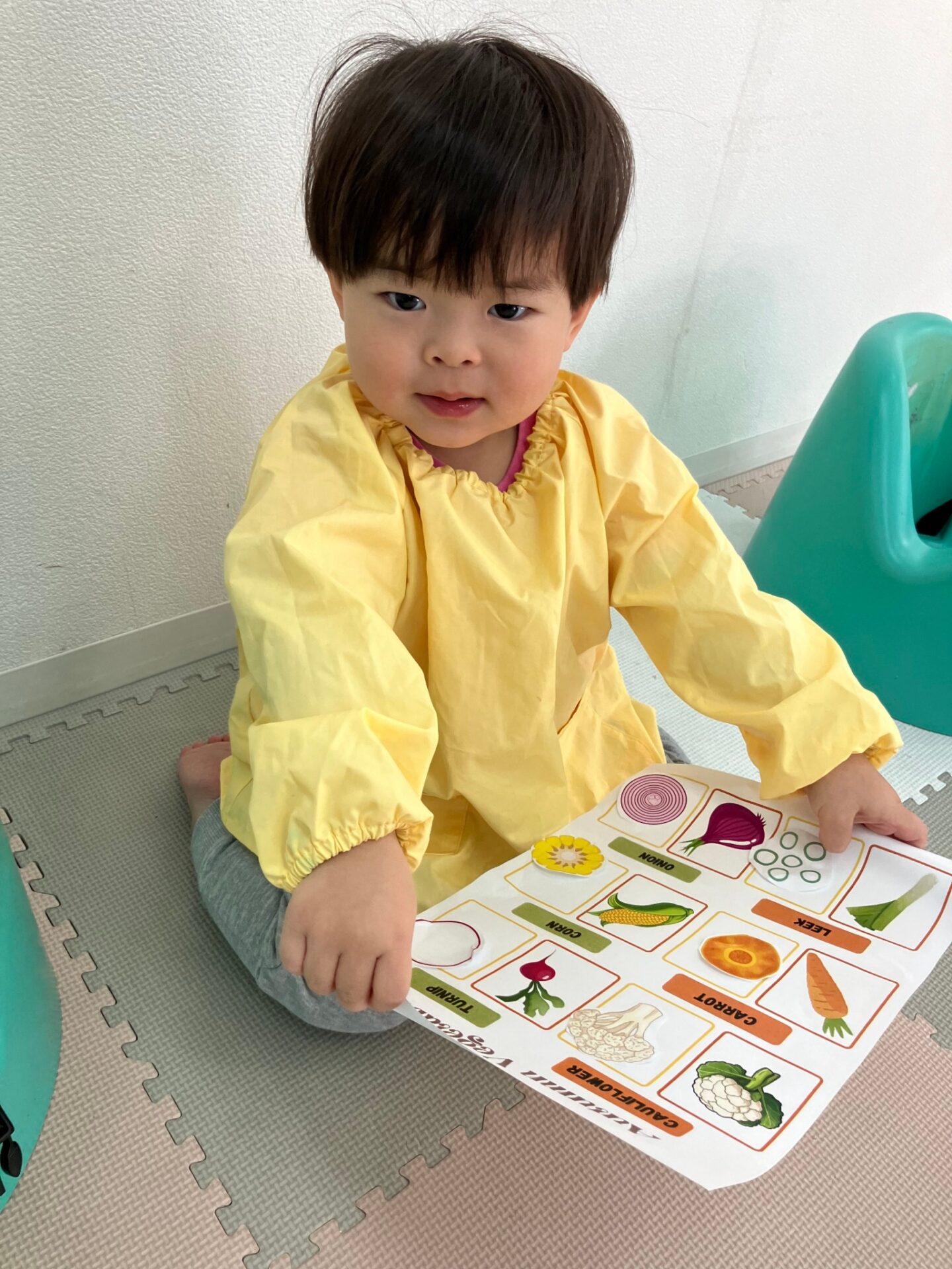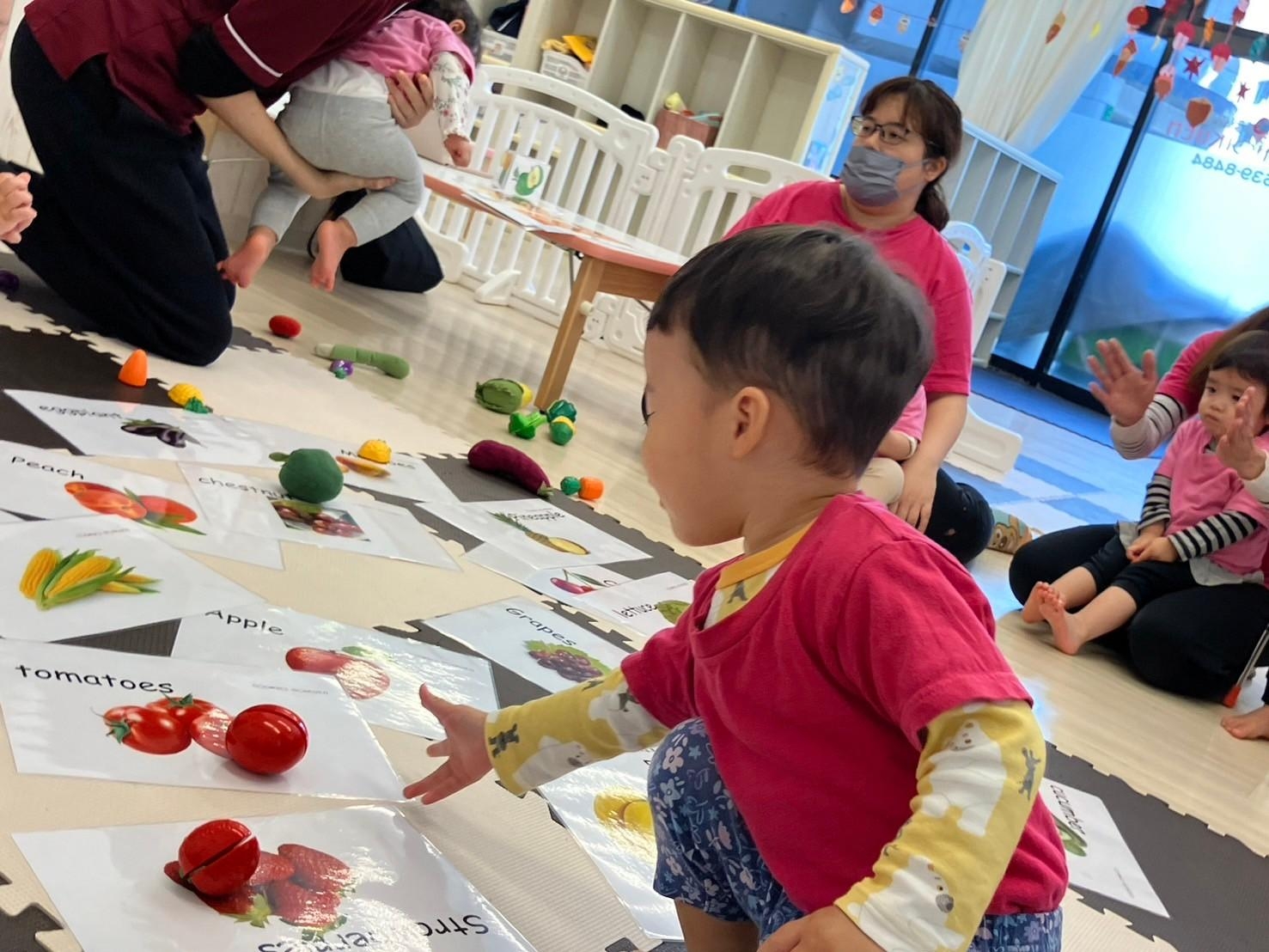 お野菜や果物を好きか嫌いか答える歌 Do you like broccoli? で、好き(Yes, I do!) 嫌い(No, I don’t)の言い方も練習しました。