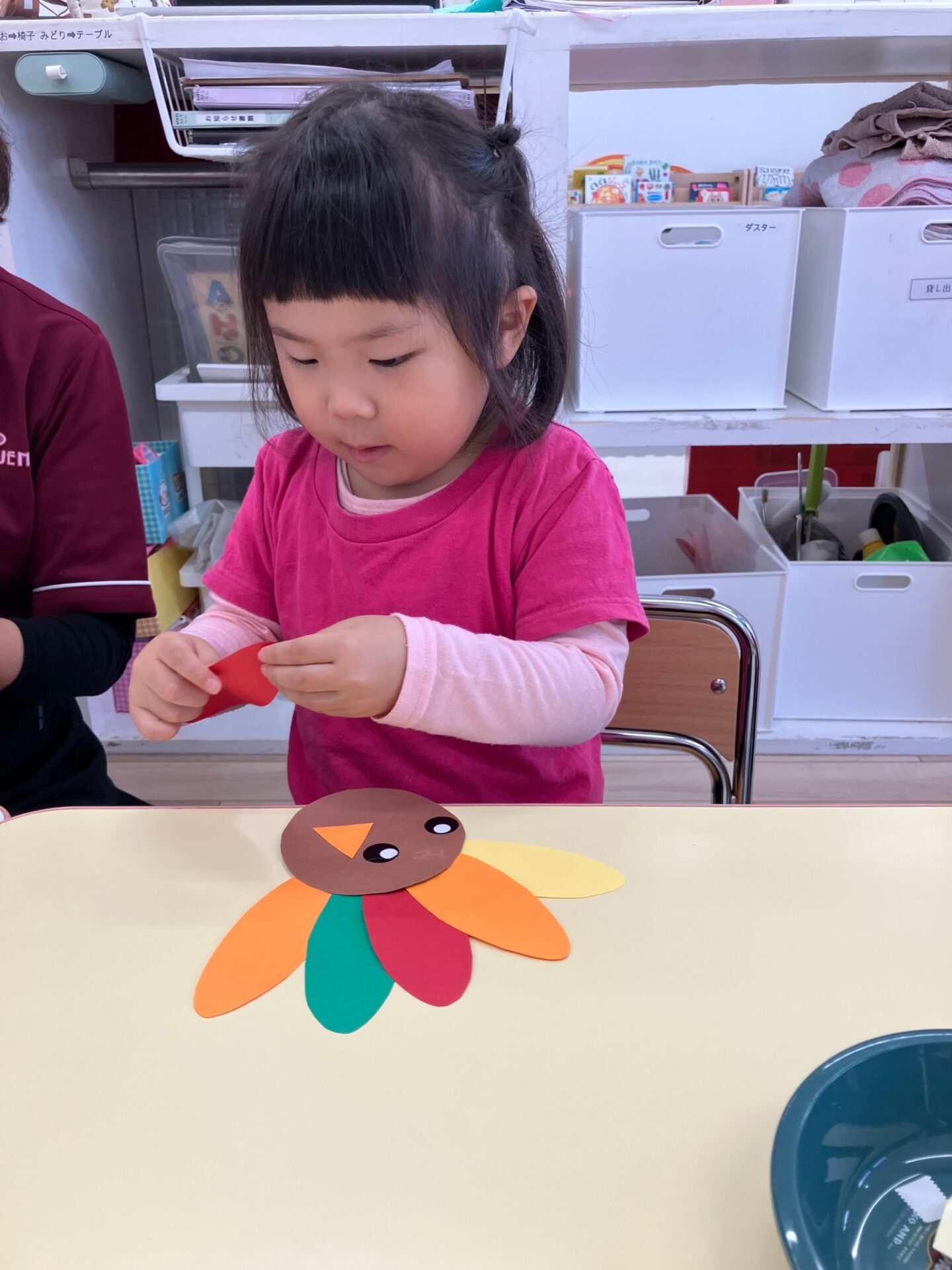 4週目はアメリカの感謝祭を紹介して、七面鳥のクラフトをしました。