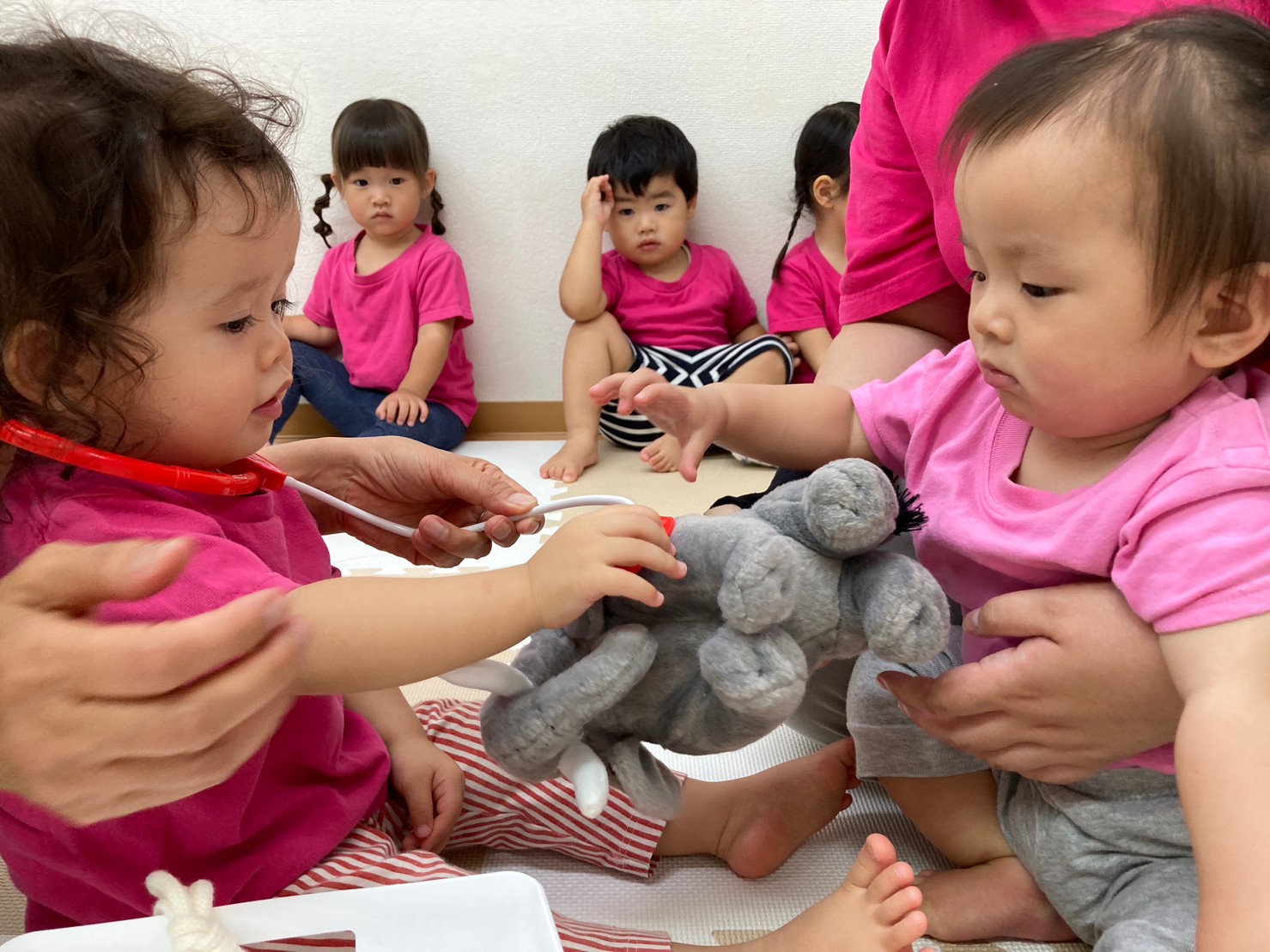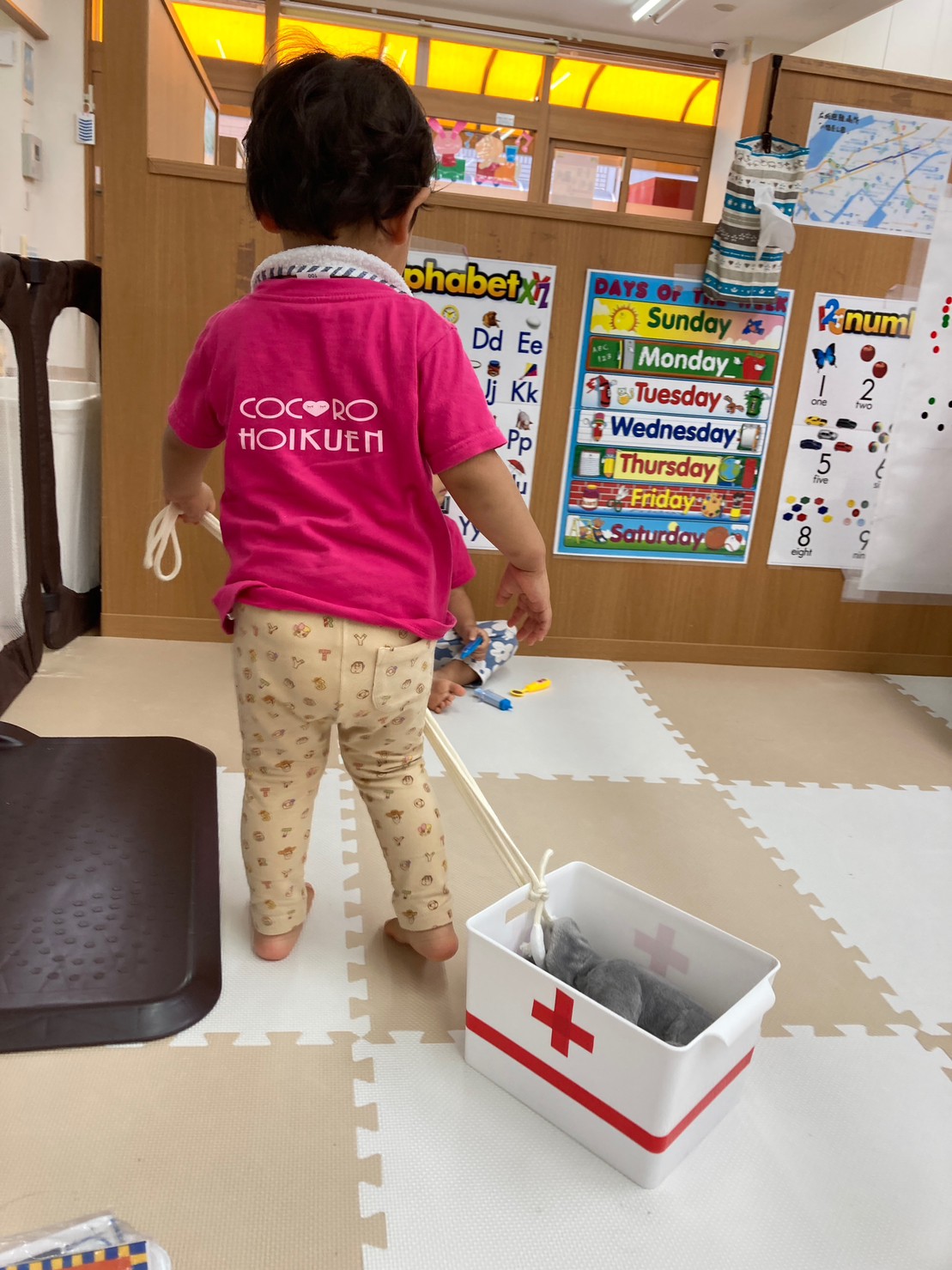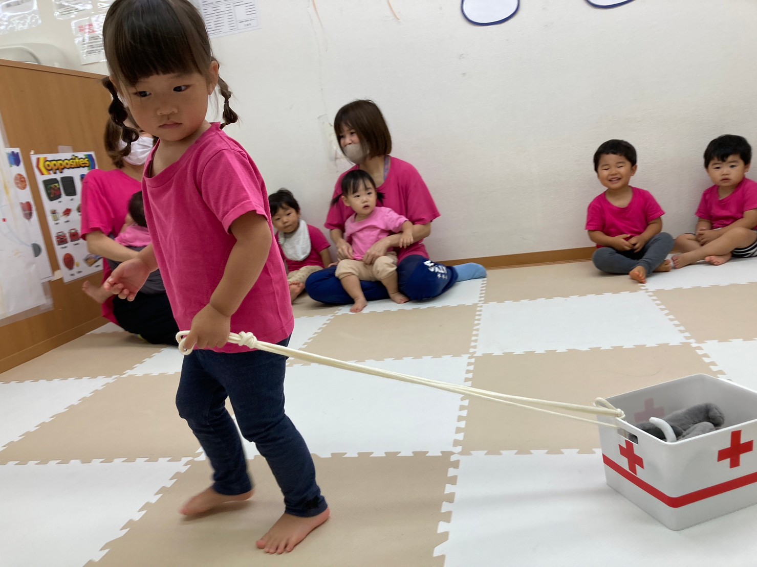 ・Rescue team and Doctor ぬいぐるみを救急車で運んだり、お友だちを患者さんにみたてて、お医者さんごっこを楽しみました。