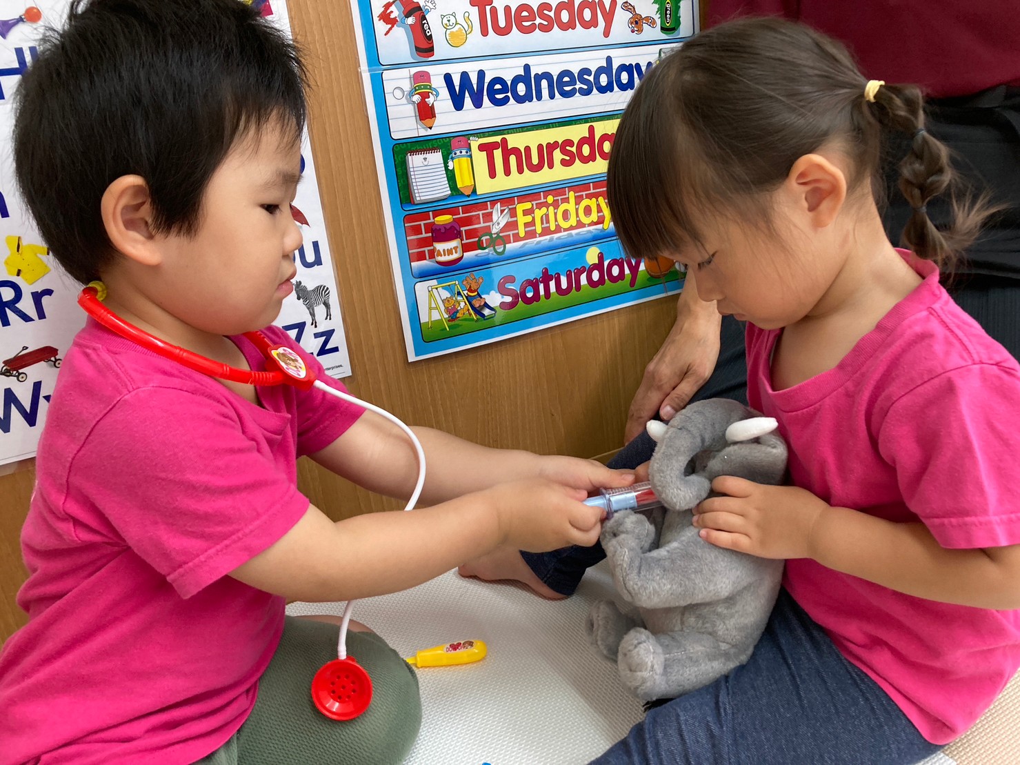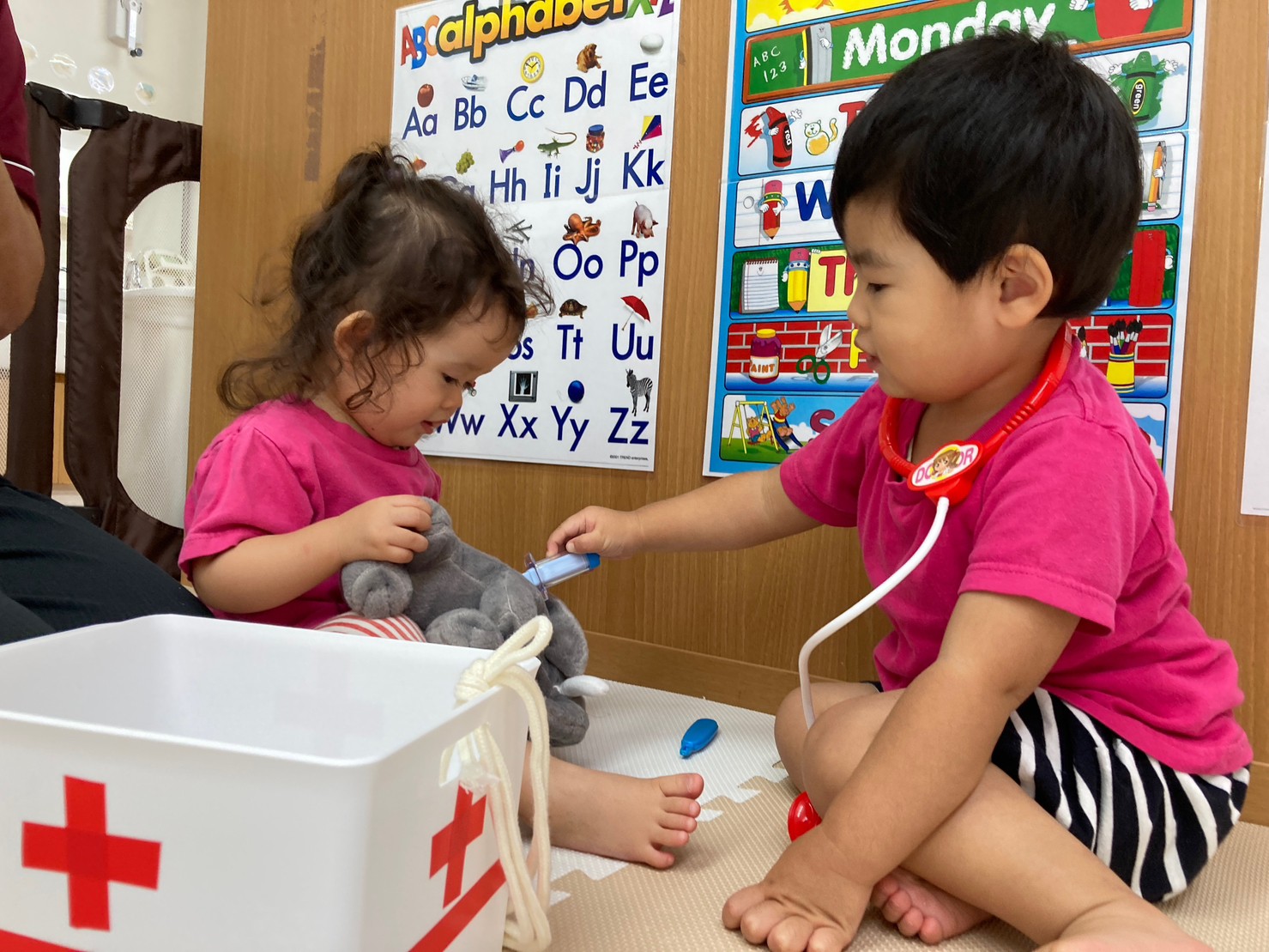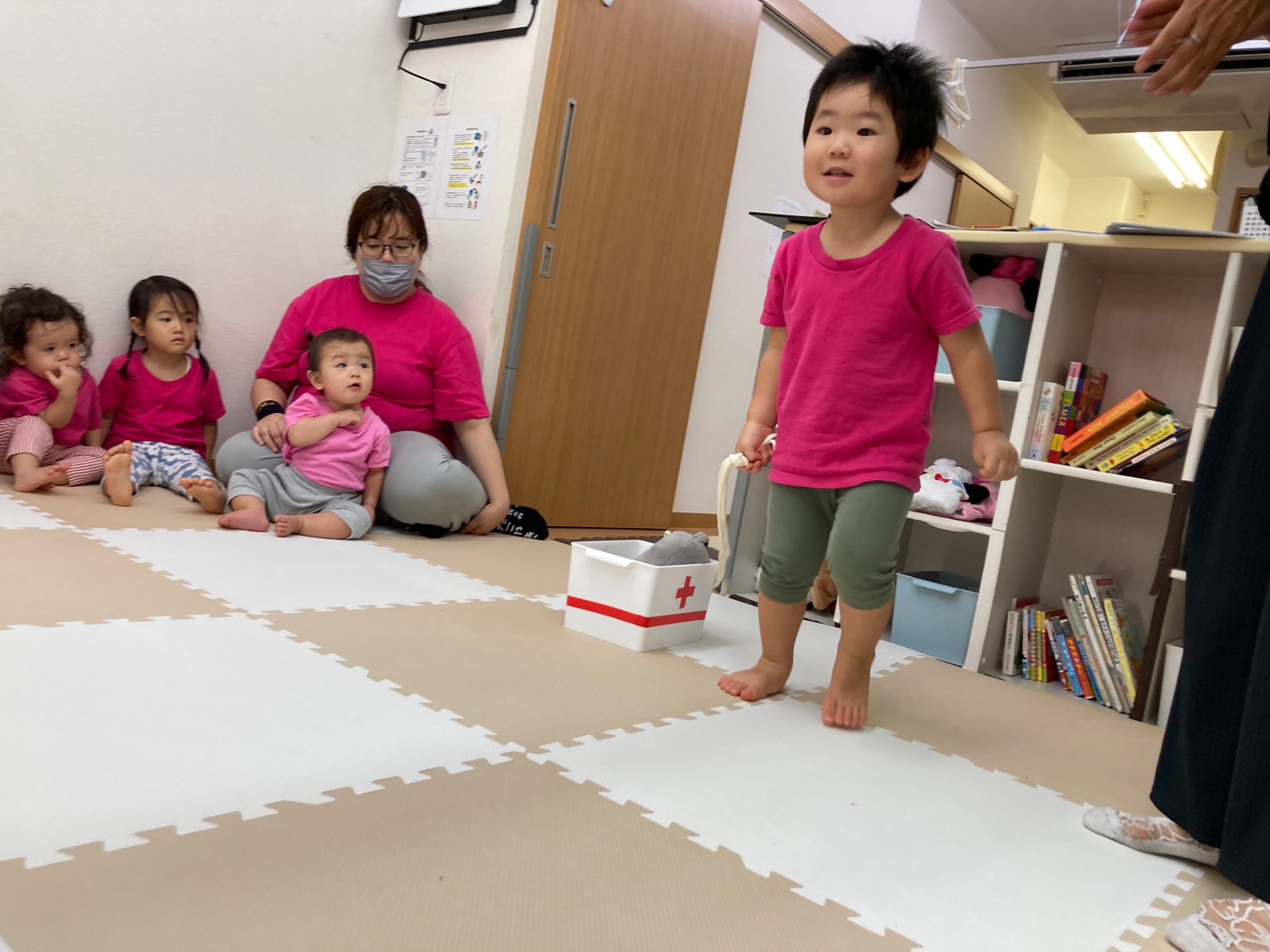 ・Rescue team and Doctor ぬいぐるみを救急車で運んだり、お友だちを患者さんにみたてて、お医者さんごっこを楽しみました。
