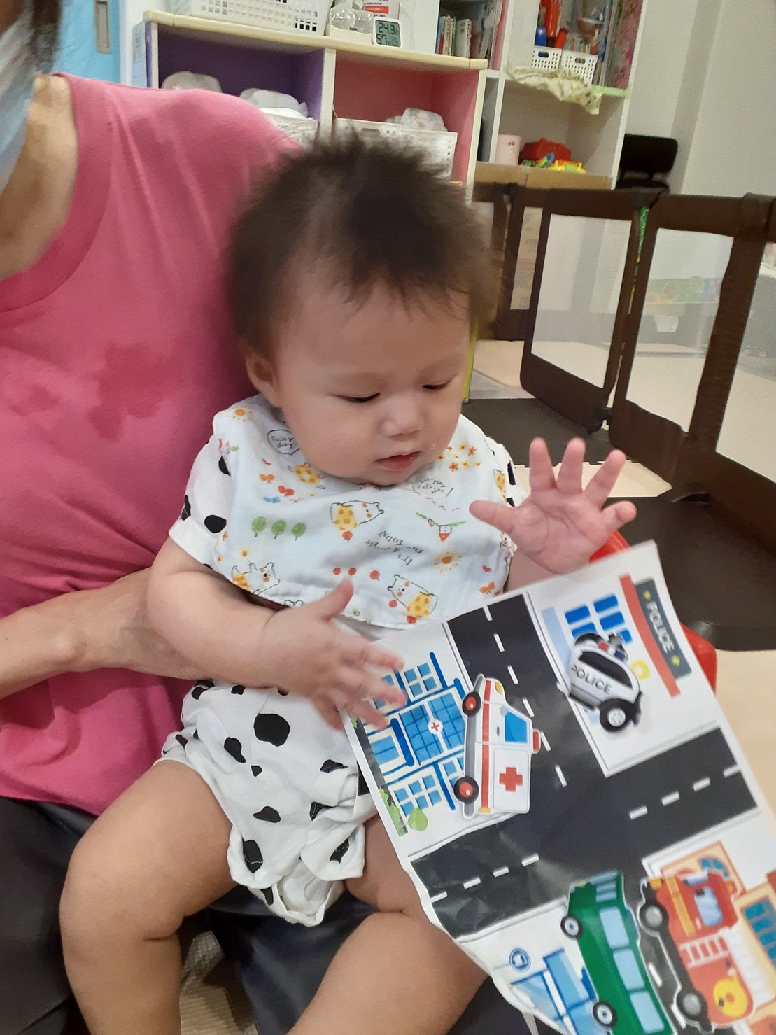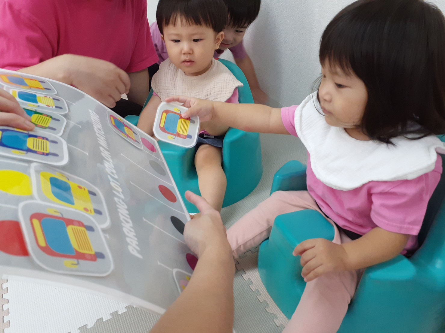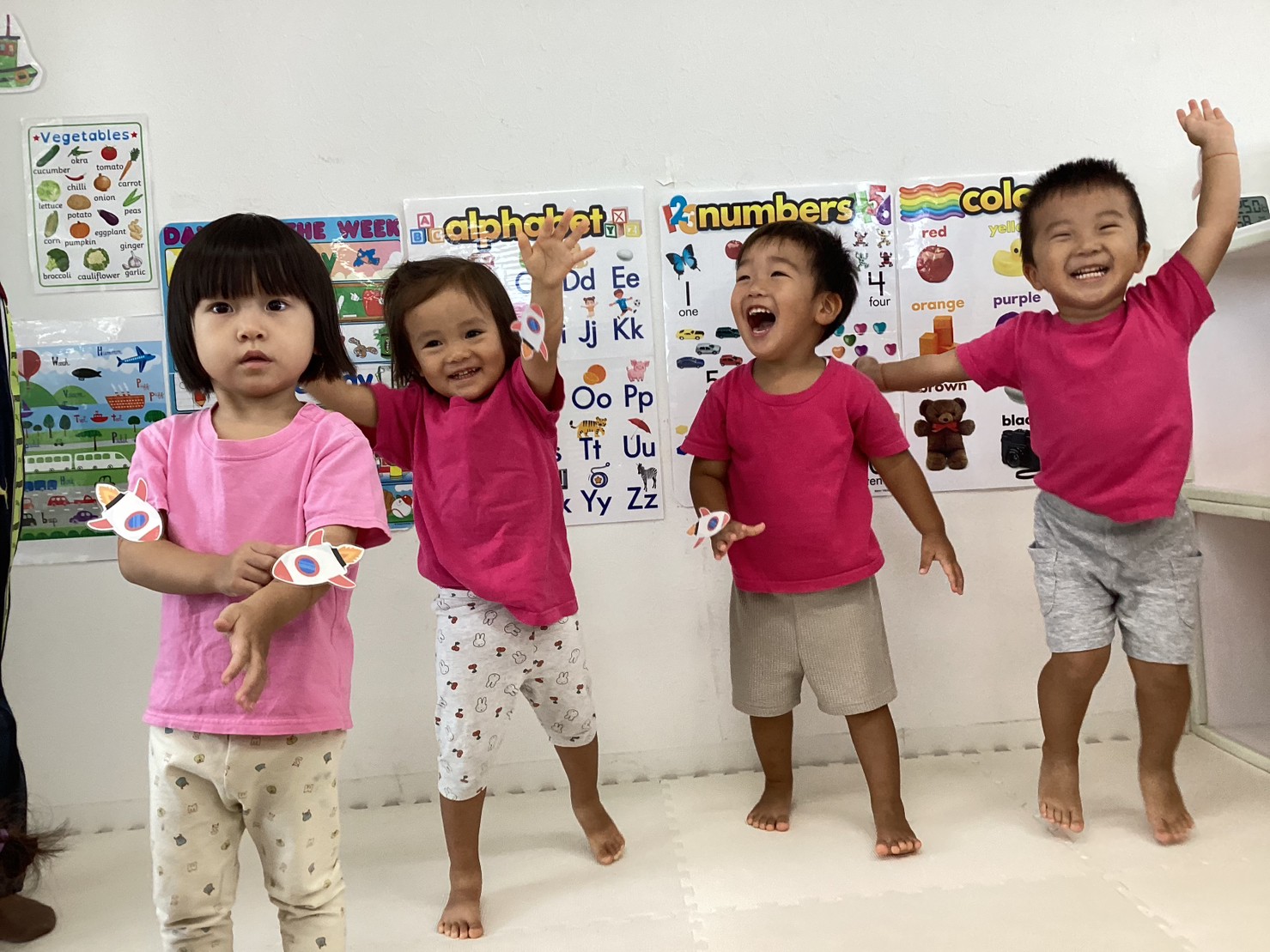 Bus(バス), Train(電車), Fire truck(消防車), Ambulance(救急車), Plane(飛行機), Boat(船), Car(自動車), Bicycle(自転車)など、身のまわりにある沢山の乗り物を英語で言ってみたり、真似をして遊んだりしました。