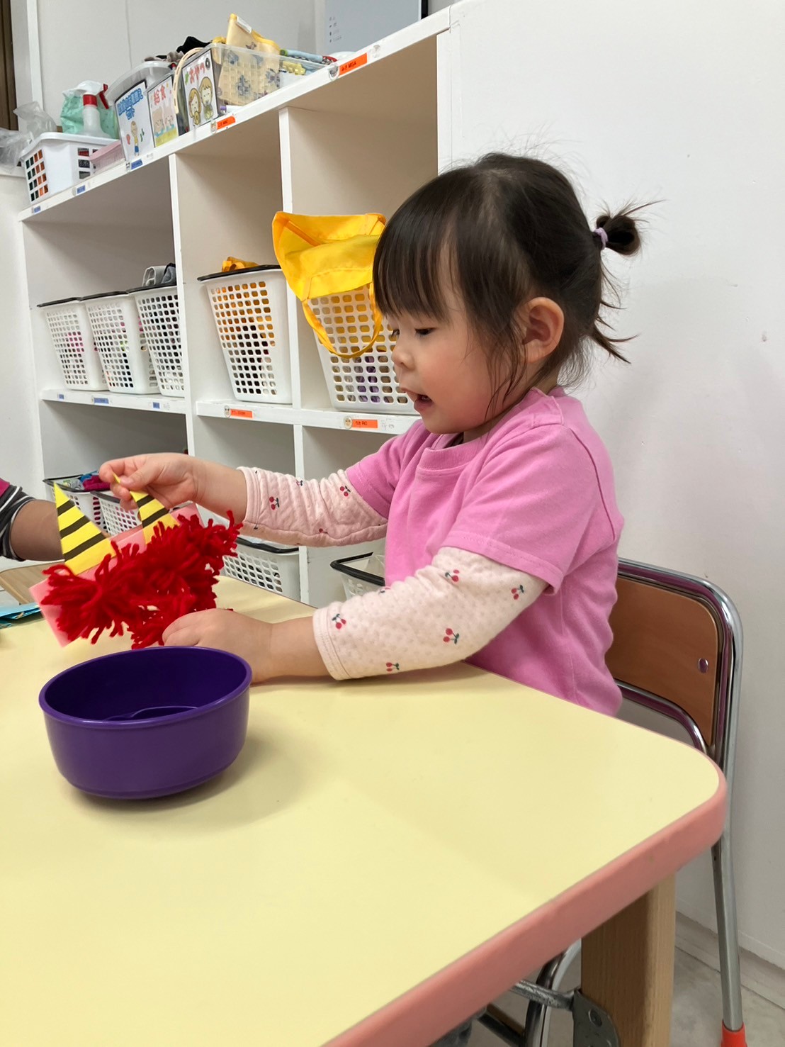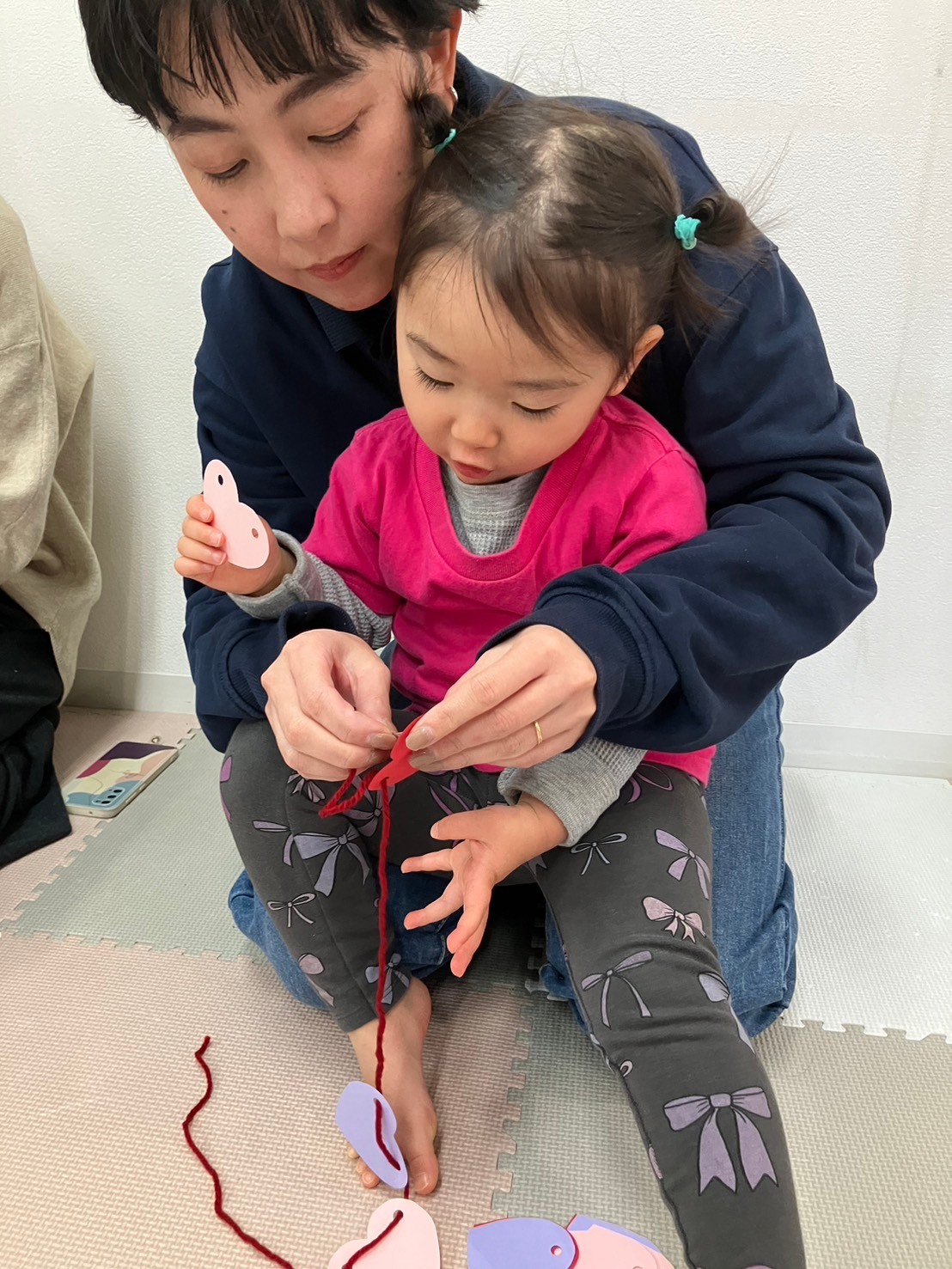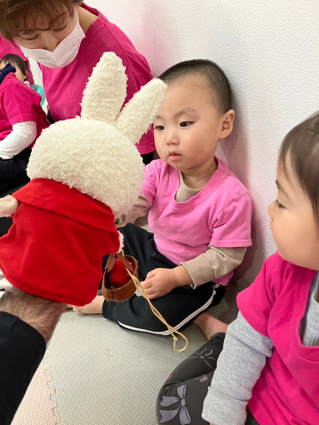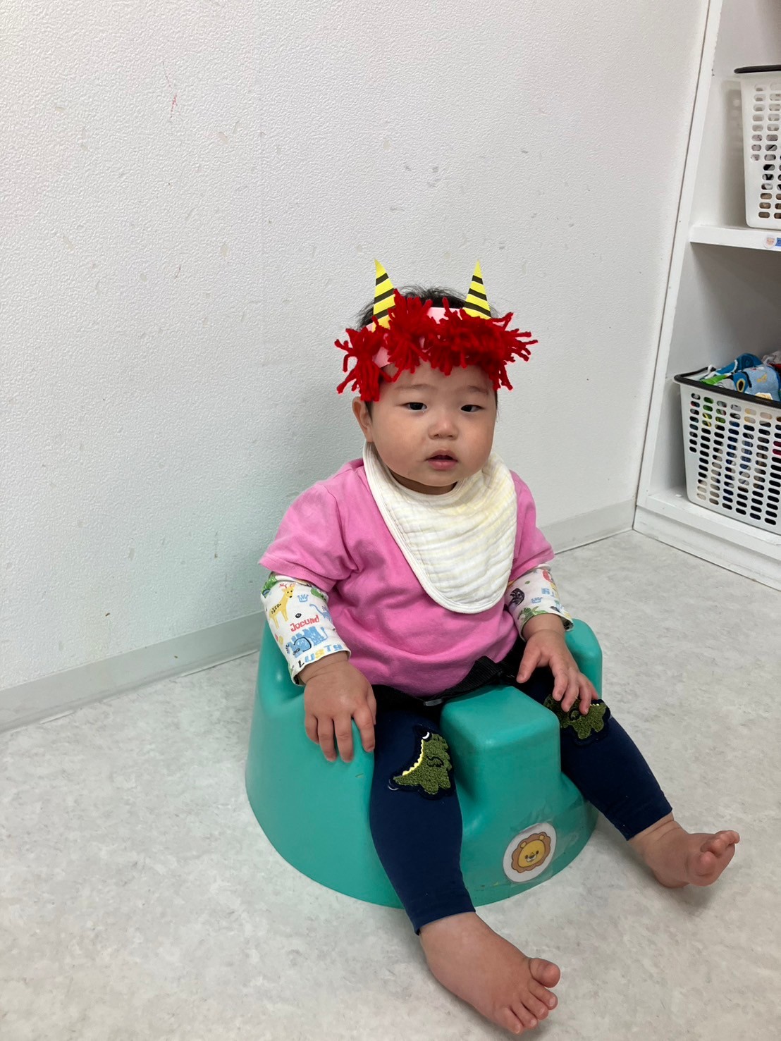 節分の歌である、「まめまき」や「おにのぱんつ」がみんなお気に入りの様子で節分の会が終わったあとも、歌を口ずさんでいる子がたくさんいましたよ♪