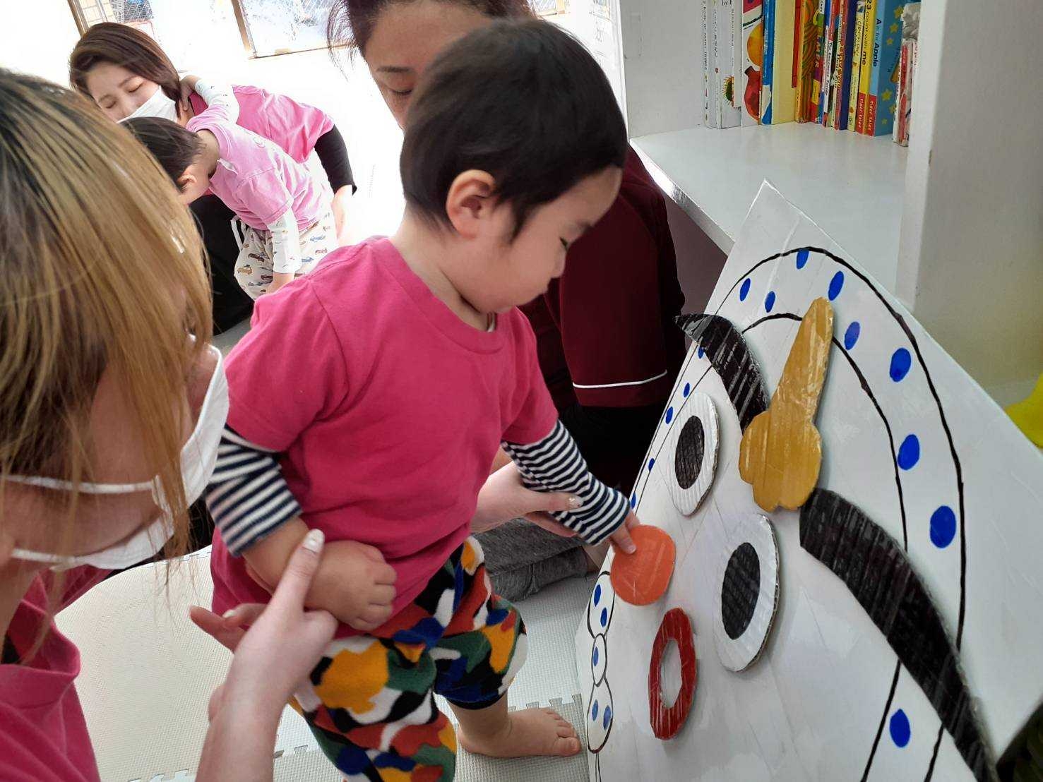 最近では、お友だちの名前を覚え、仲良くなったお友だちと一緒になって、子どもたちだけのお話を楽しんでいます。