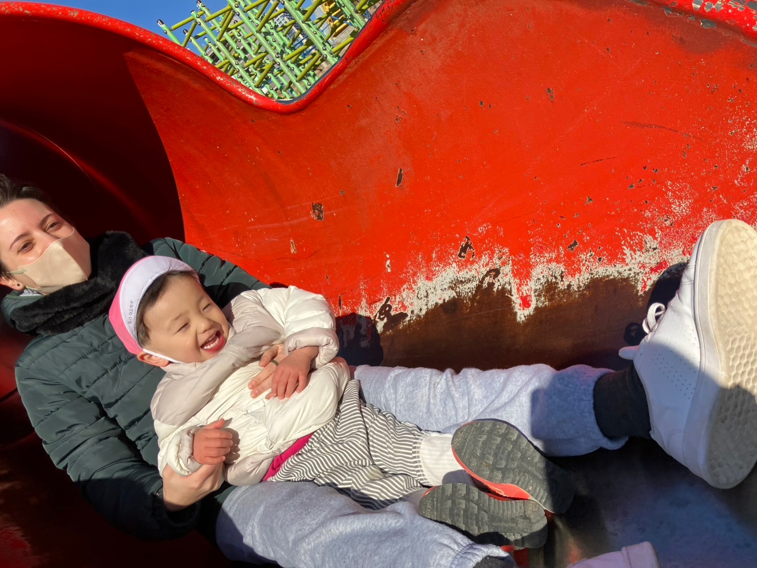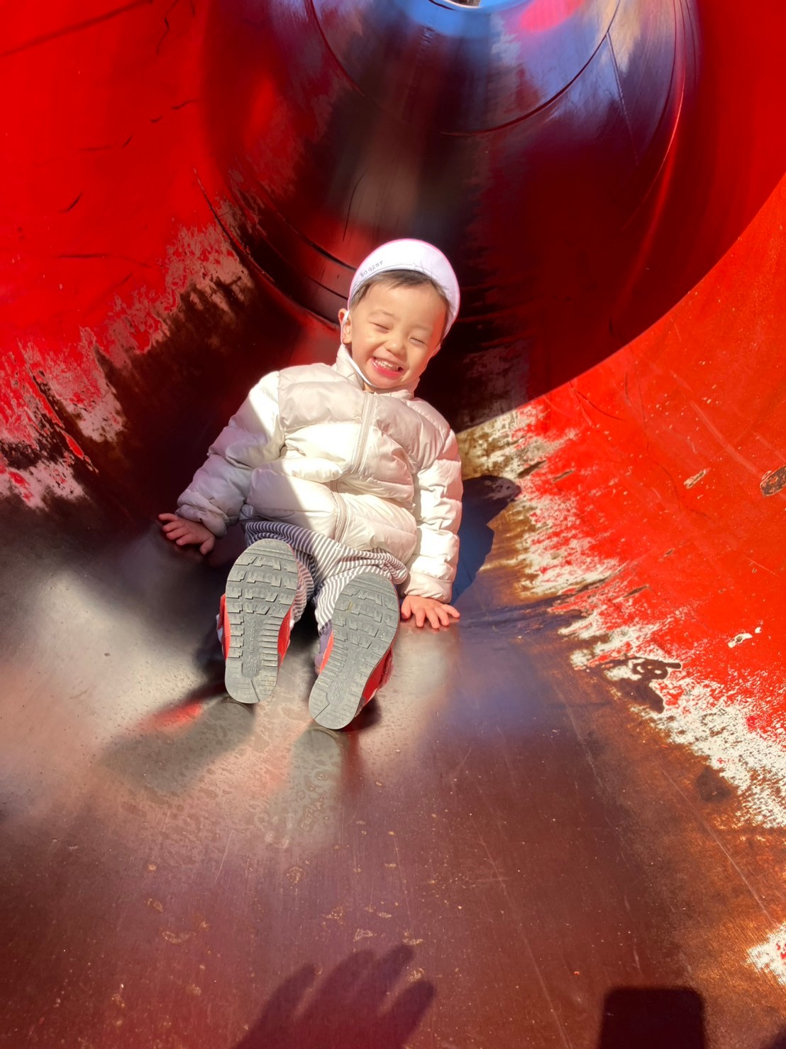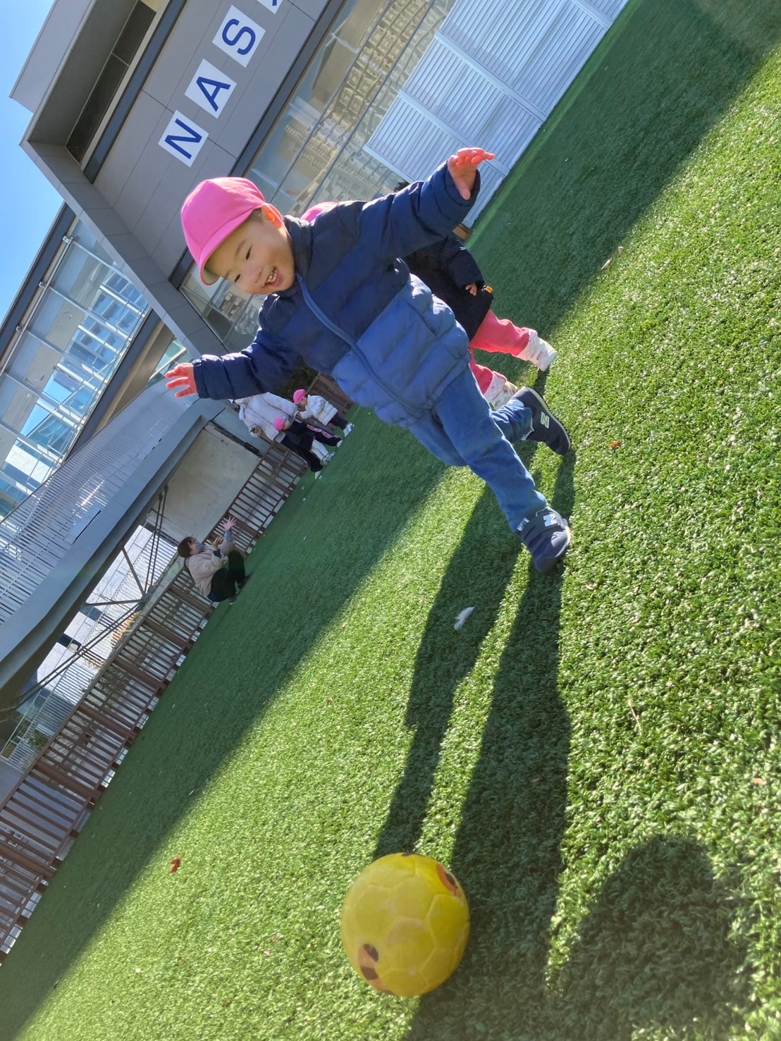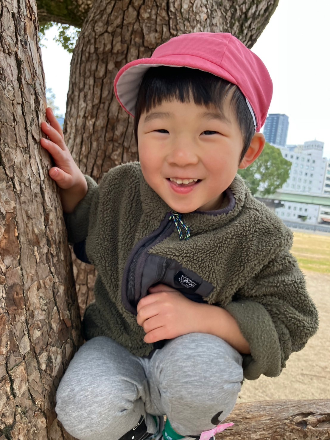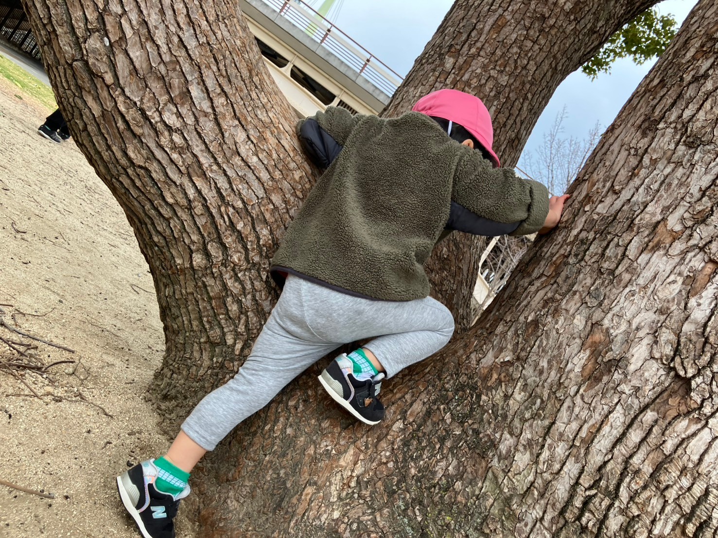 「すべりだい、おもしろ〜い!」「ひとりで、(木に)のぼれるからみといてよ〜!」と寒さに負けず、元気に遊ぶ子ども達。
