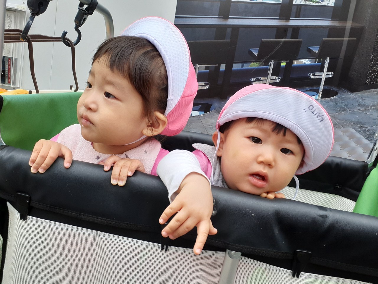 1,2歳児クラスのお友だちは、遠足に向けて自分で歩く練習をしています。