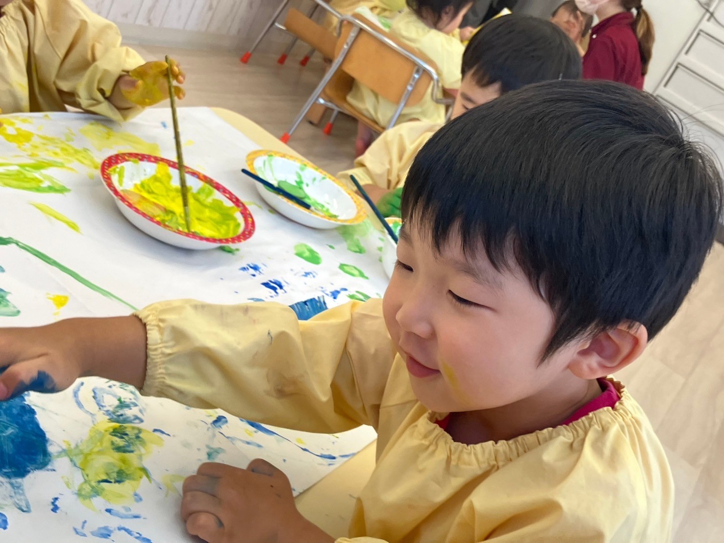 子ども達が、実際に目で見て感じた模様は、次のお友だちへと繋がり、「はなび!?どんなの?」と花火模様の大根は大人気でしたよ。