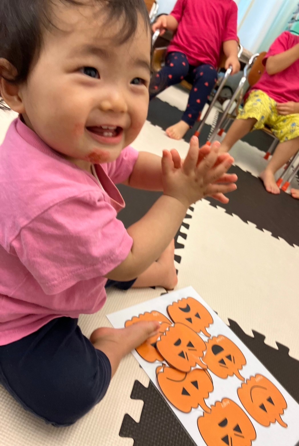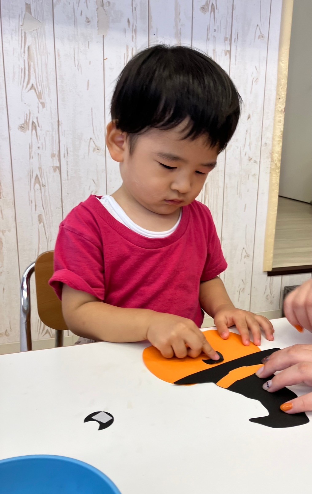 ジャックオーランタンの製作をすると“かぼちゃ”“ぱんぷきん”“じゃっくおーらんたん”と様々な声が聞こえてきます。