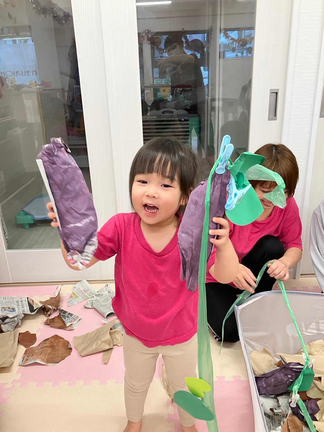 後日、みんなで作ったさつまいもを使ってお芋掘りごっこをしました。
