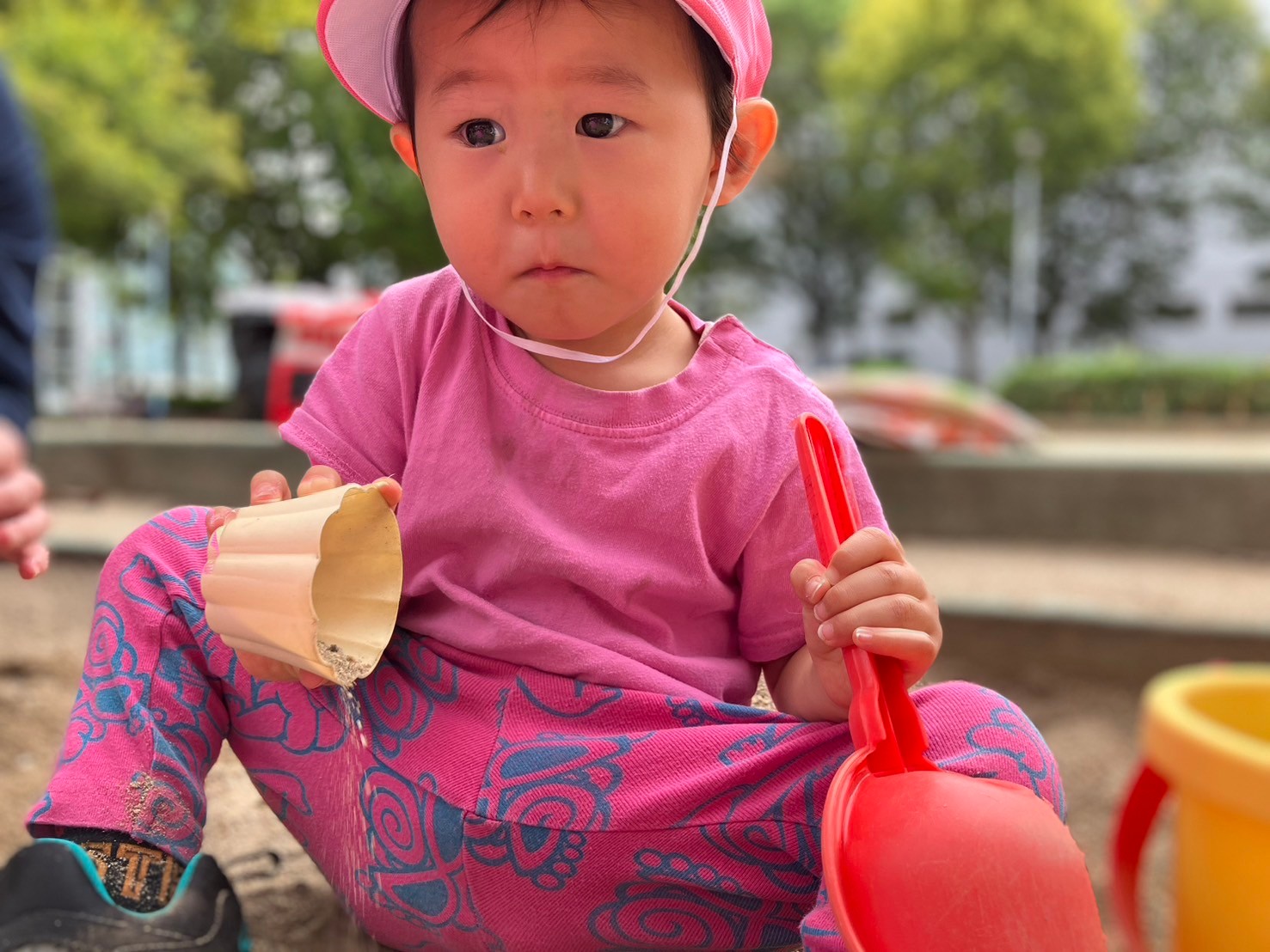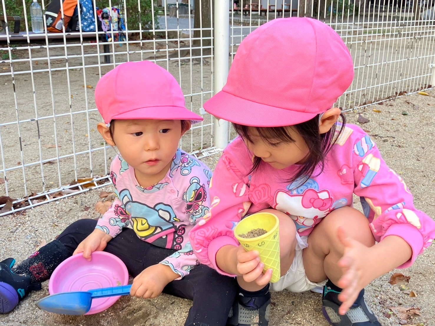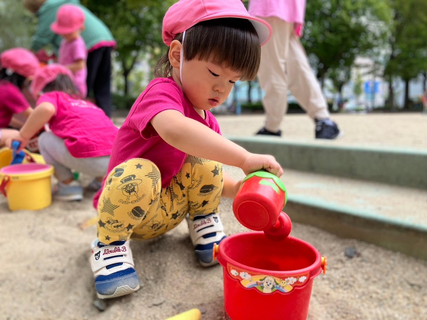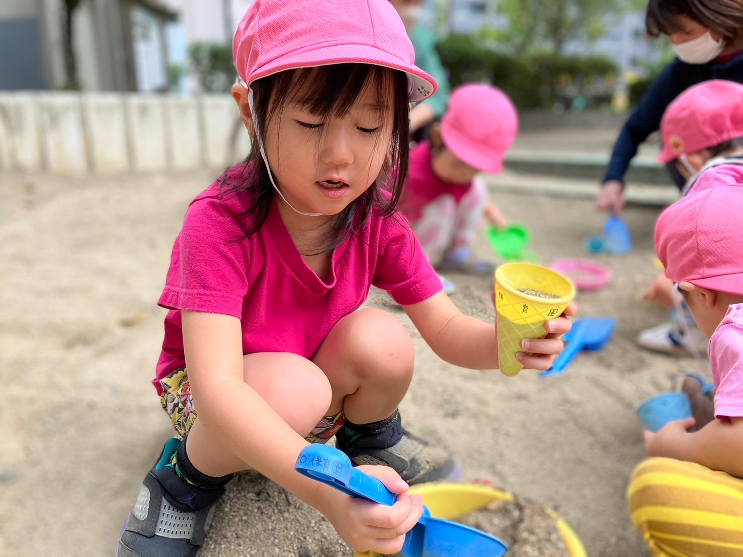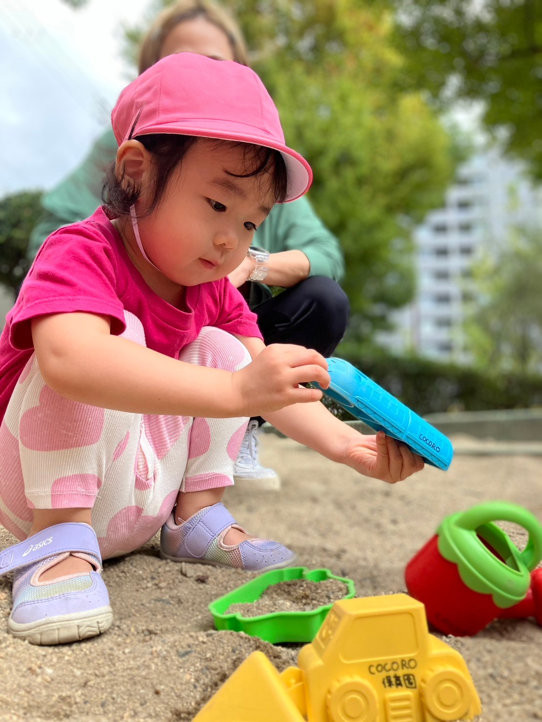 砂場遊びでは、黙々とそれぞれ好きな場所でスコップやバケツを持って遊んでくれていました。