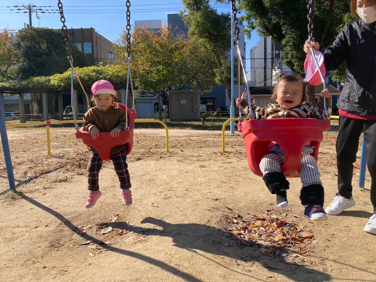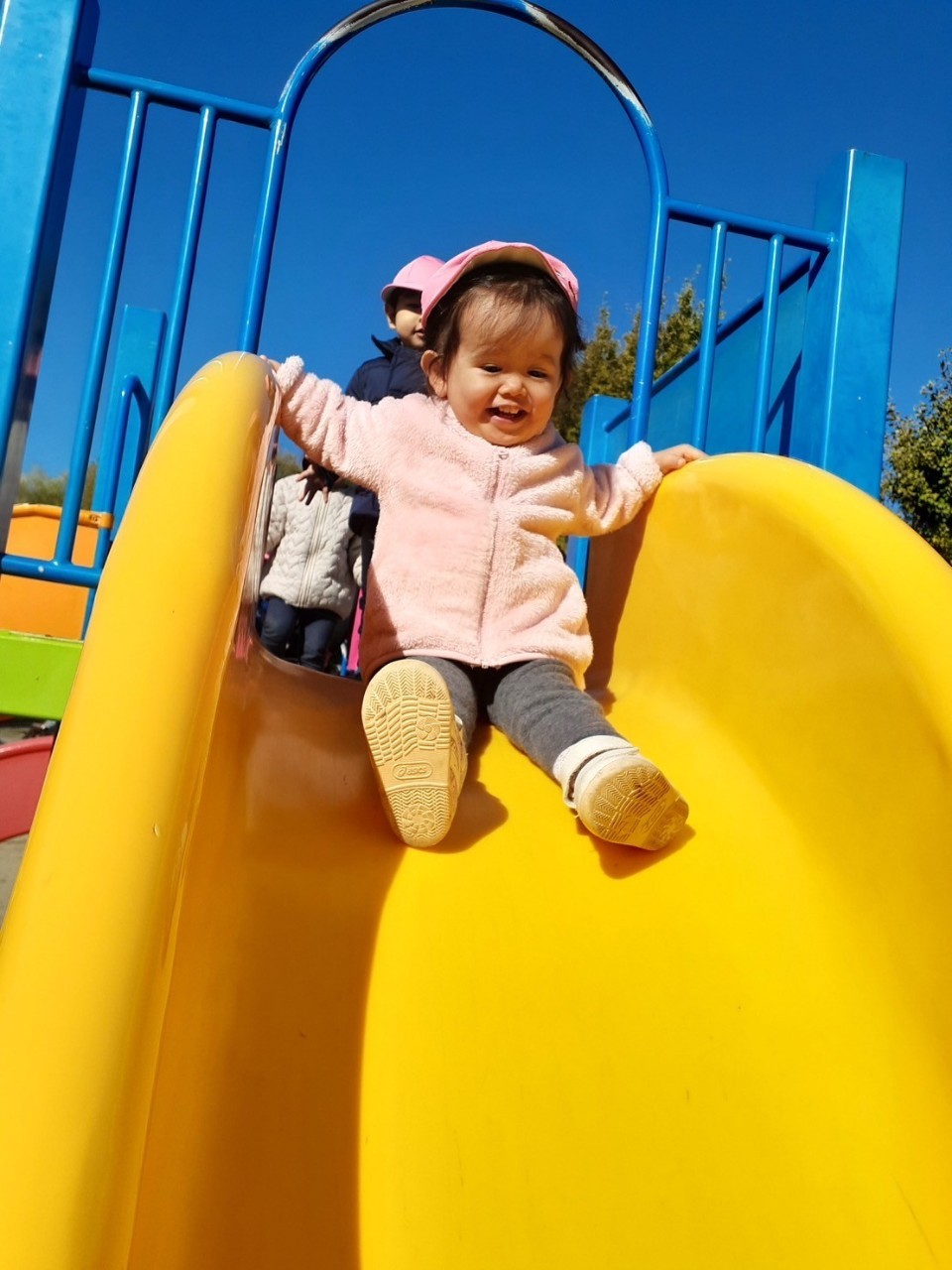 くねくね滑り台やアーチ型の登り棒に挑戦し、大はしゃぎでした。
