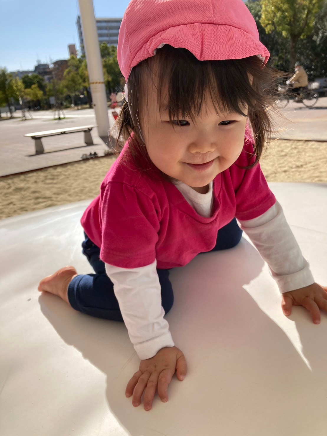 トランポリンのようなふわふわドームで元気いっぱい飛び跳ねたり、何度も繰り返し滑り台を楽しんでいました。