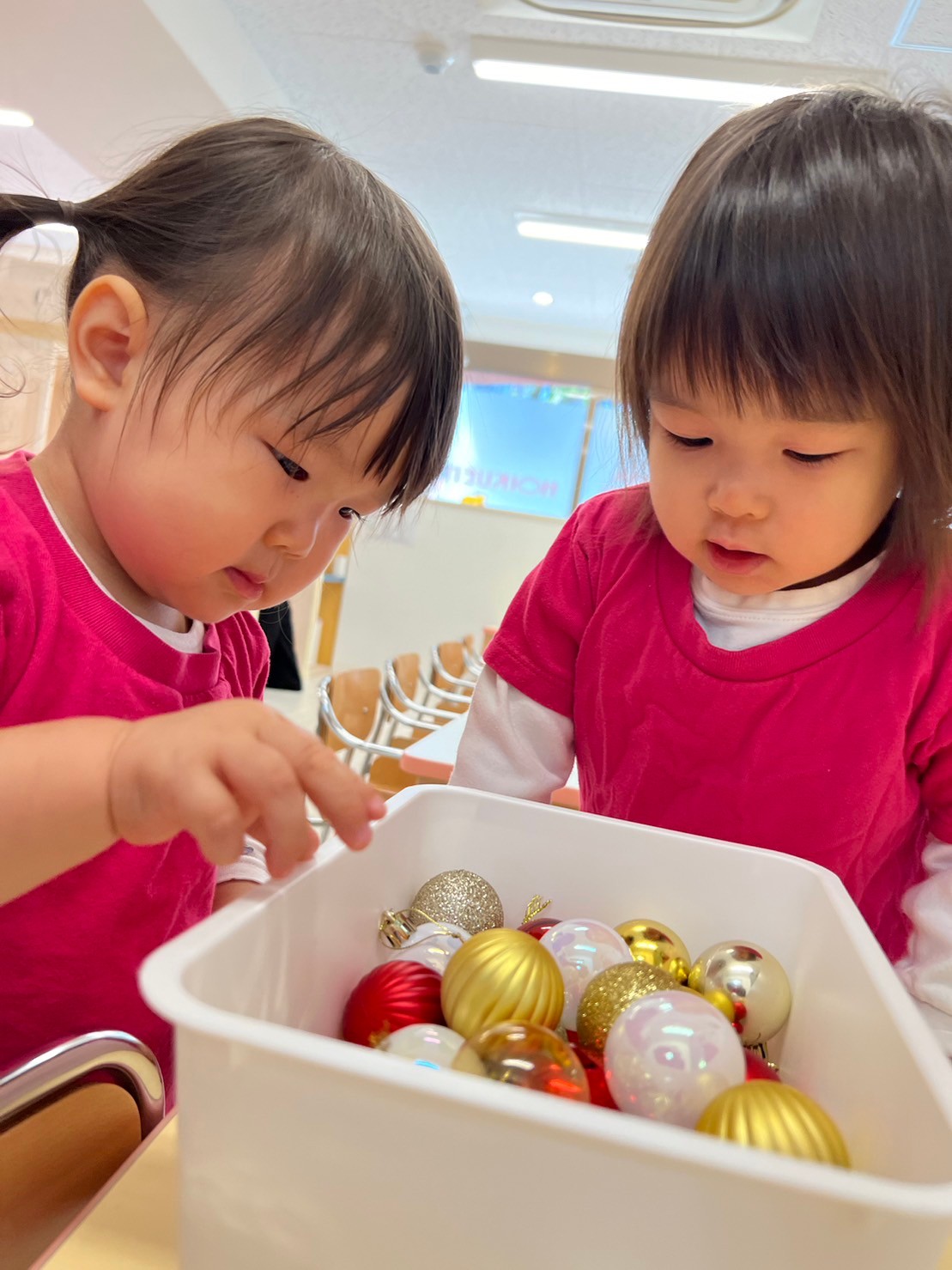 キラキラだー!どこにつけようかな?と目を輝かせながら飾りをつけてくれた子どもたちです。