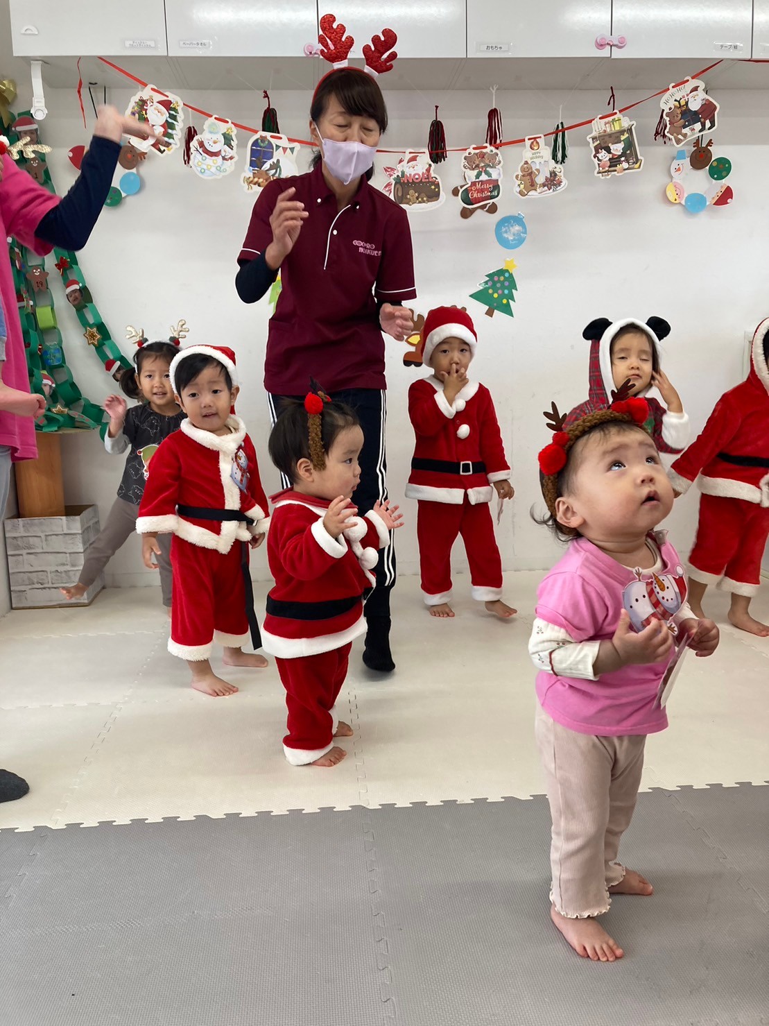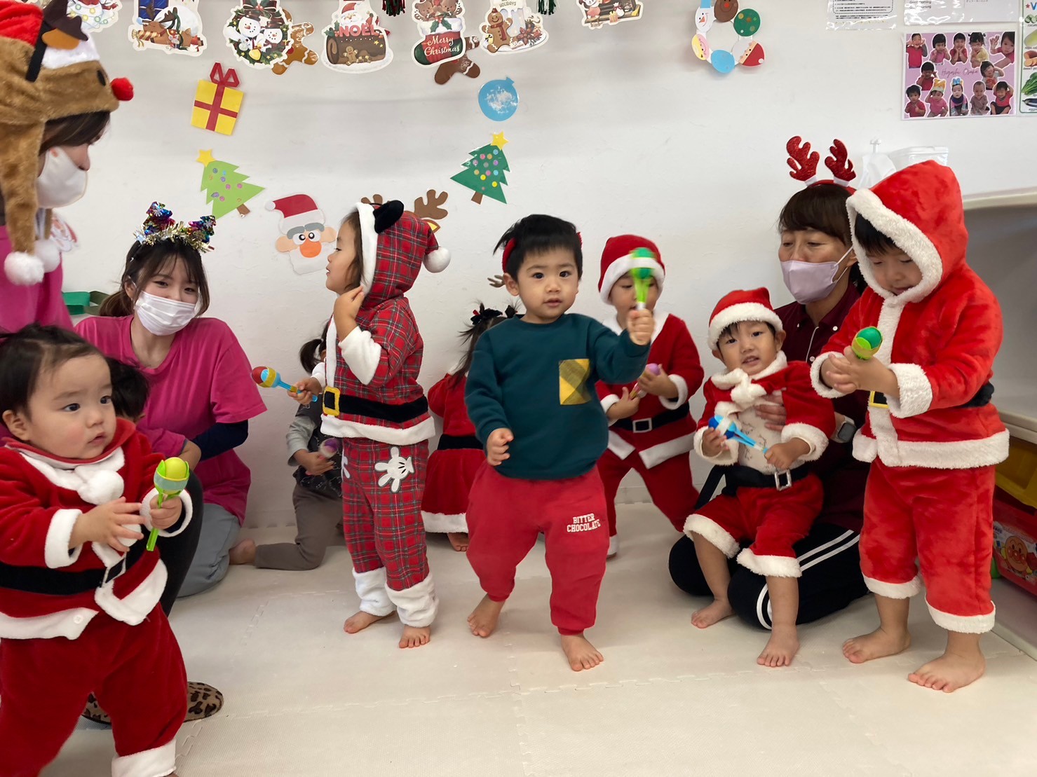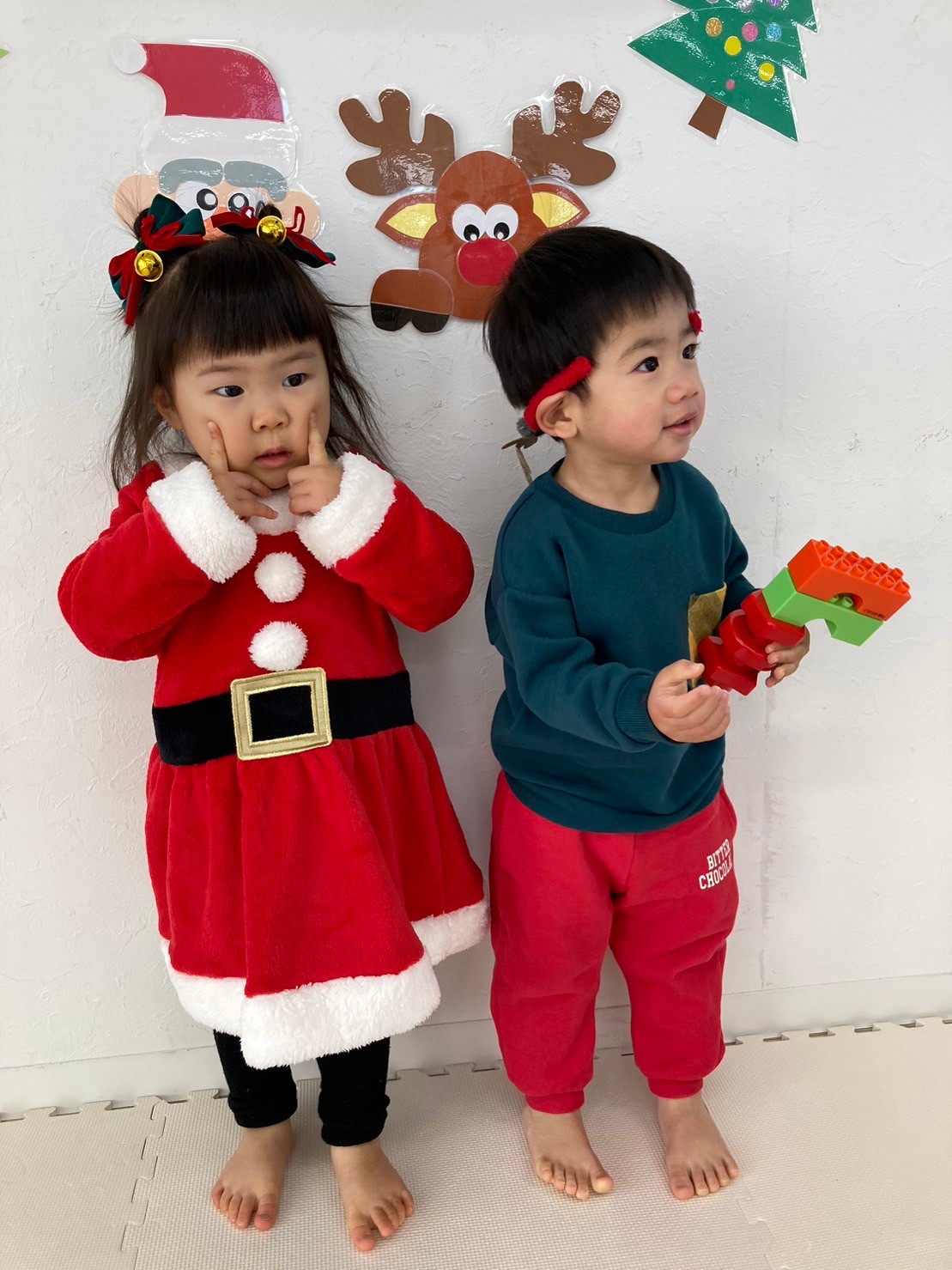 サンタクロースの服を着たり、トナカイのカチューシャをつけたりして、準備万端の子どもたち。