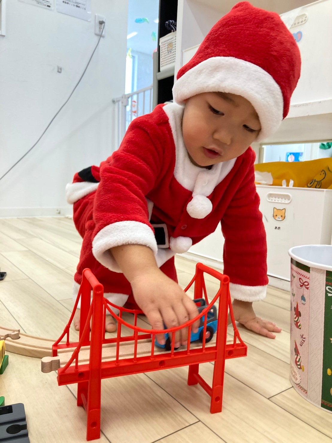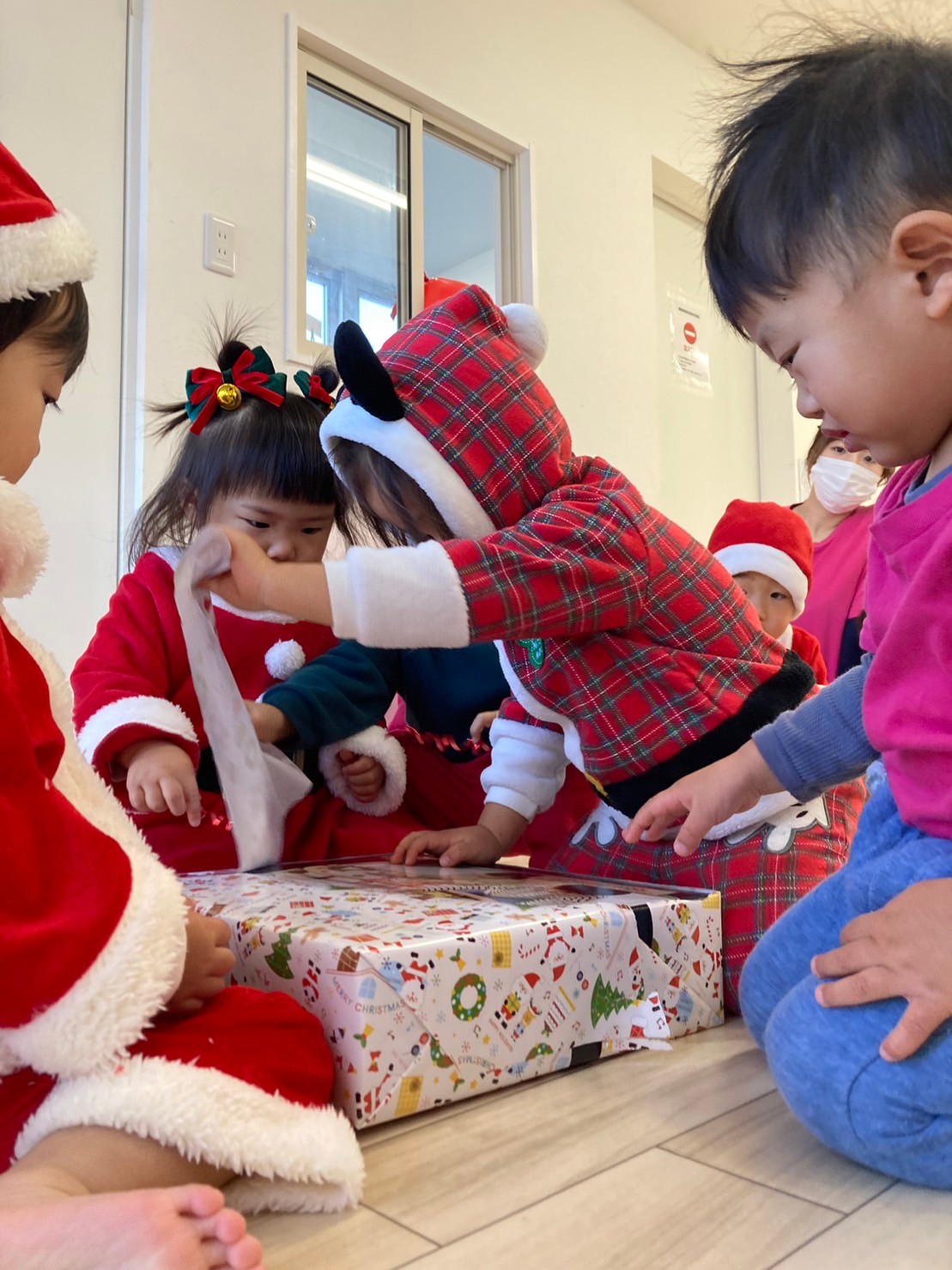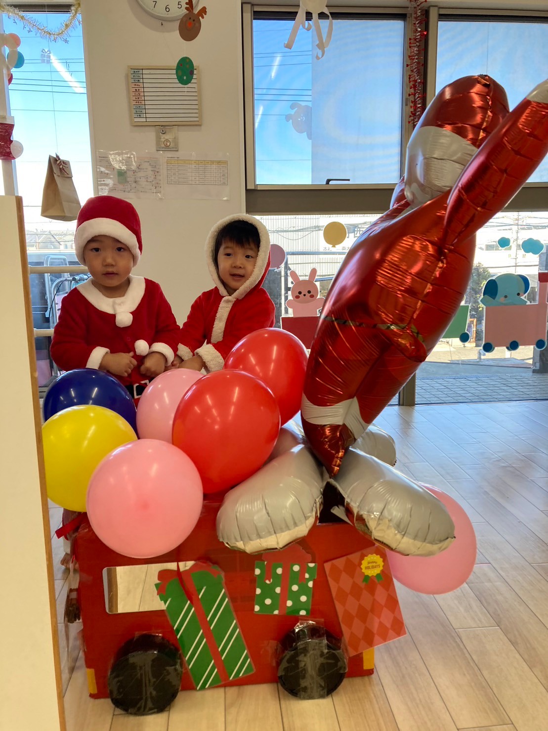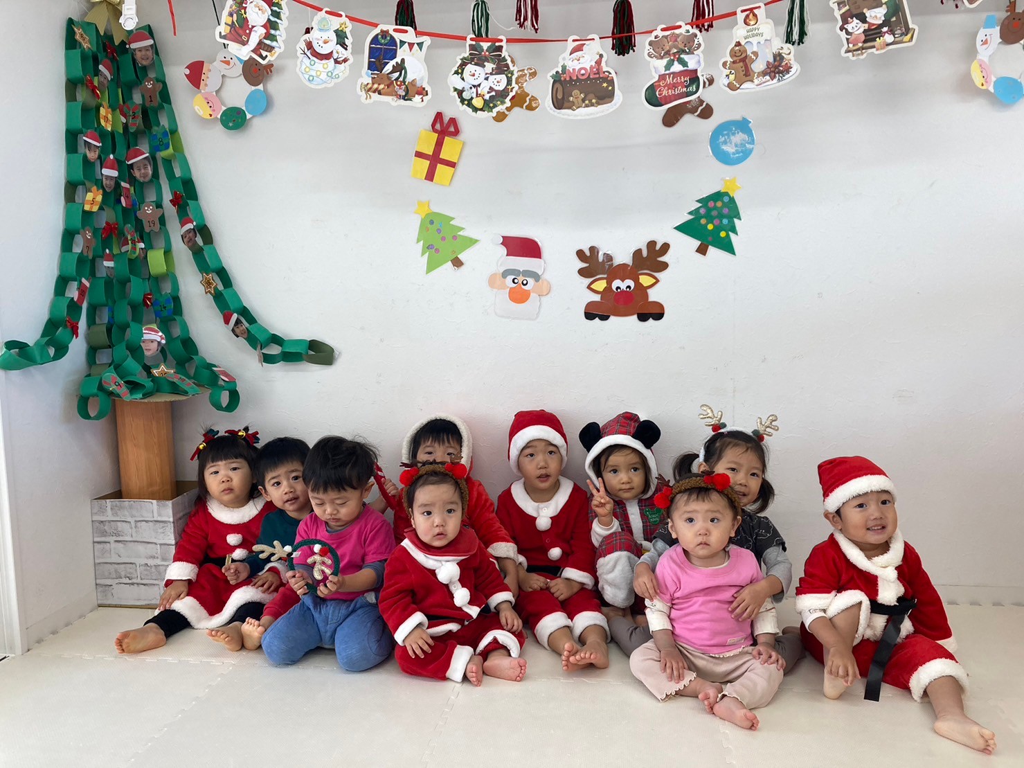 サンタクロースの服を着たり、トナカイのカチューシャをつけたりして、準備万端の子どもたち。