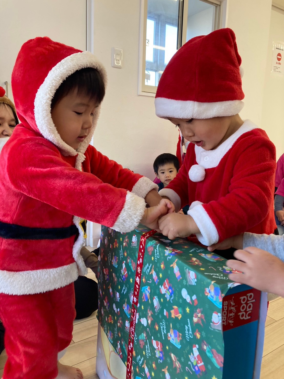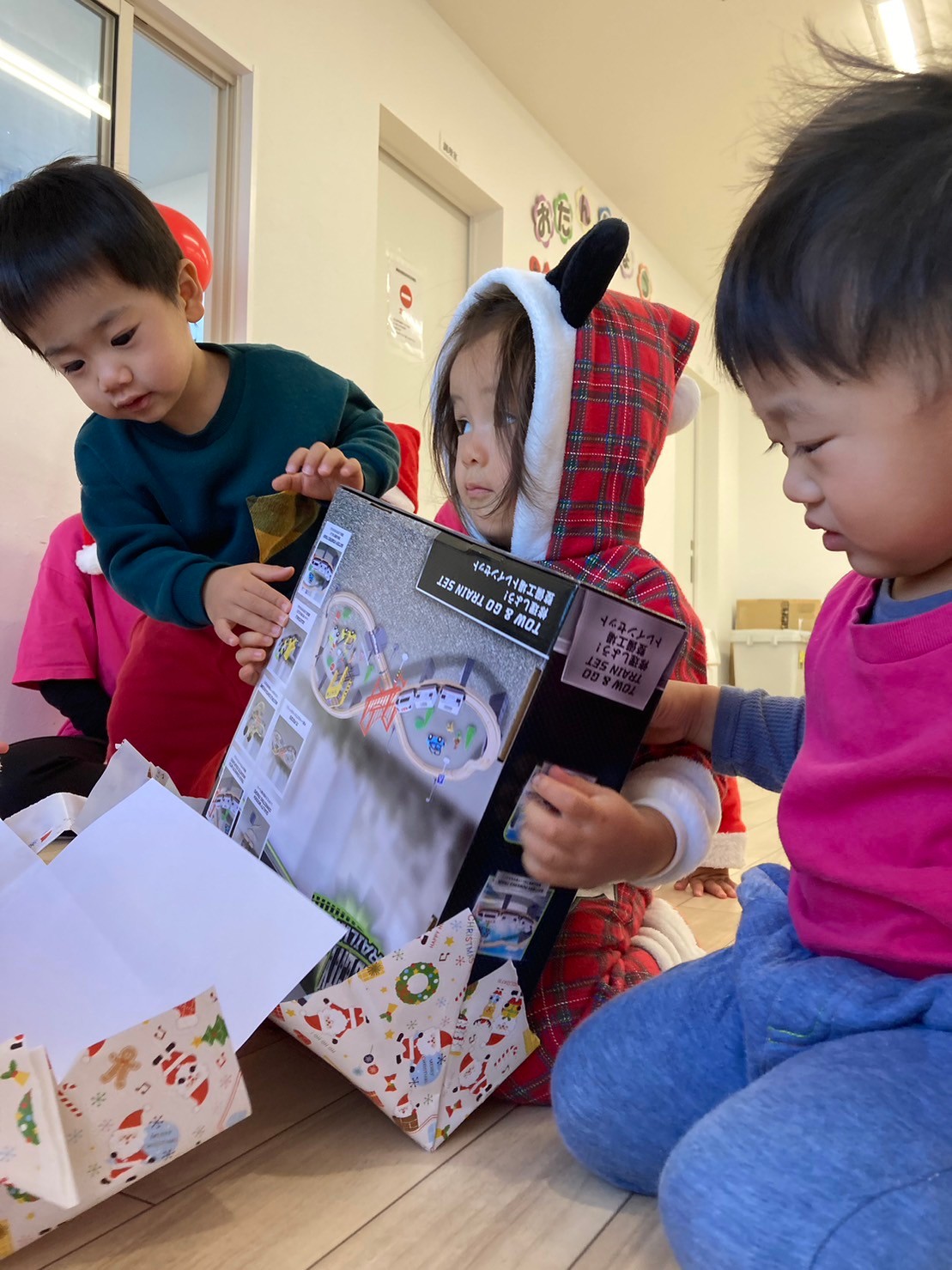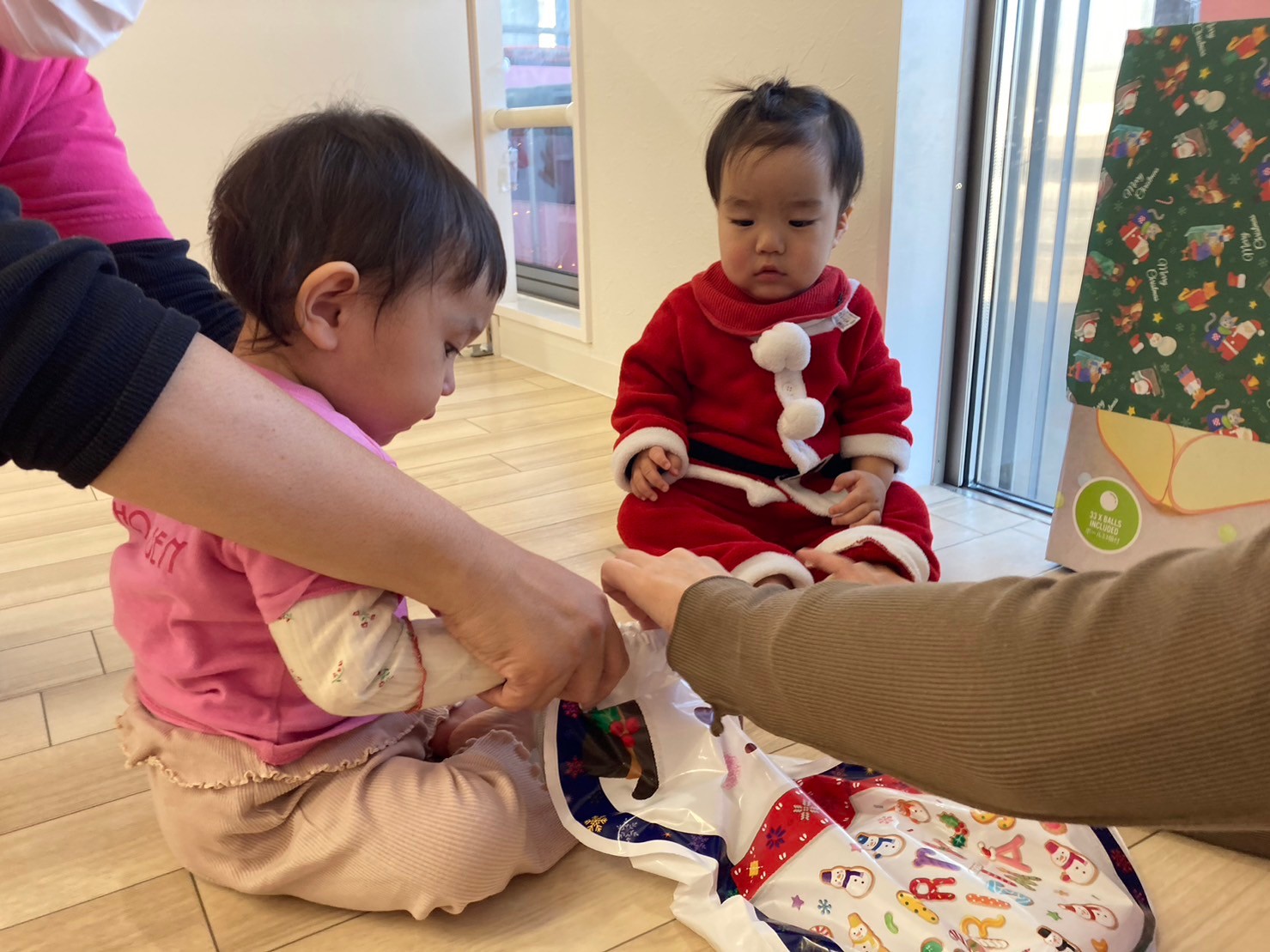 「今日はクリスマス会だよー」と言うと、「いえーい!」「やったー」と大盛り上がりです。