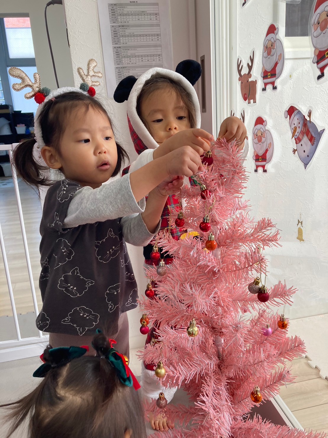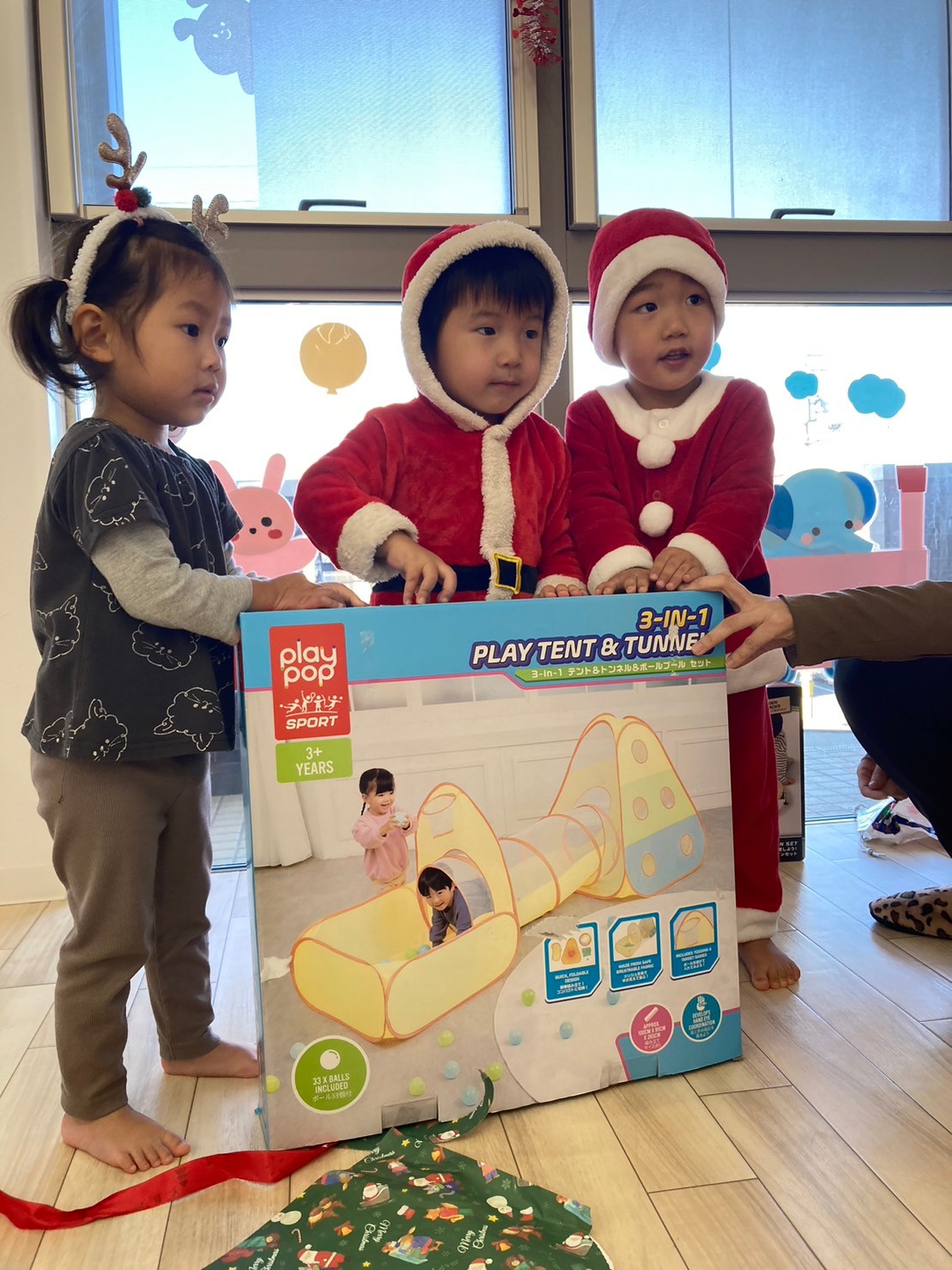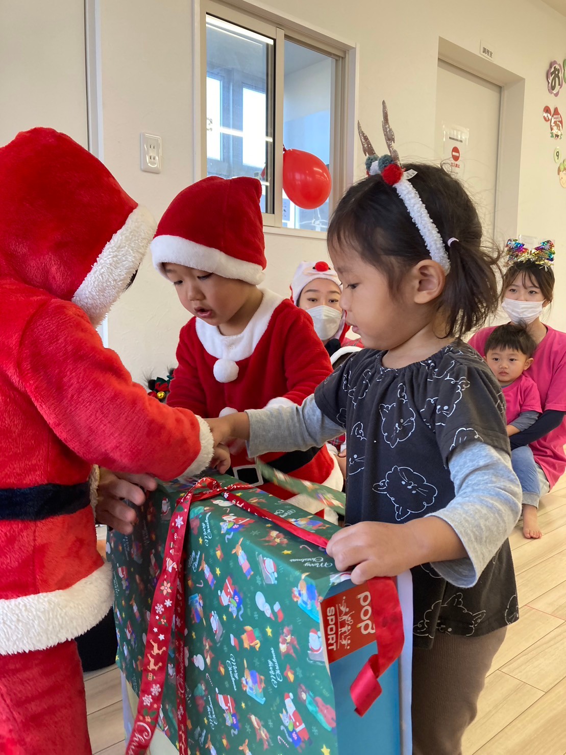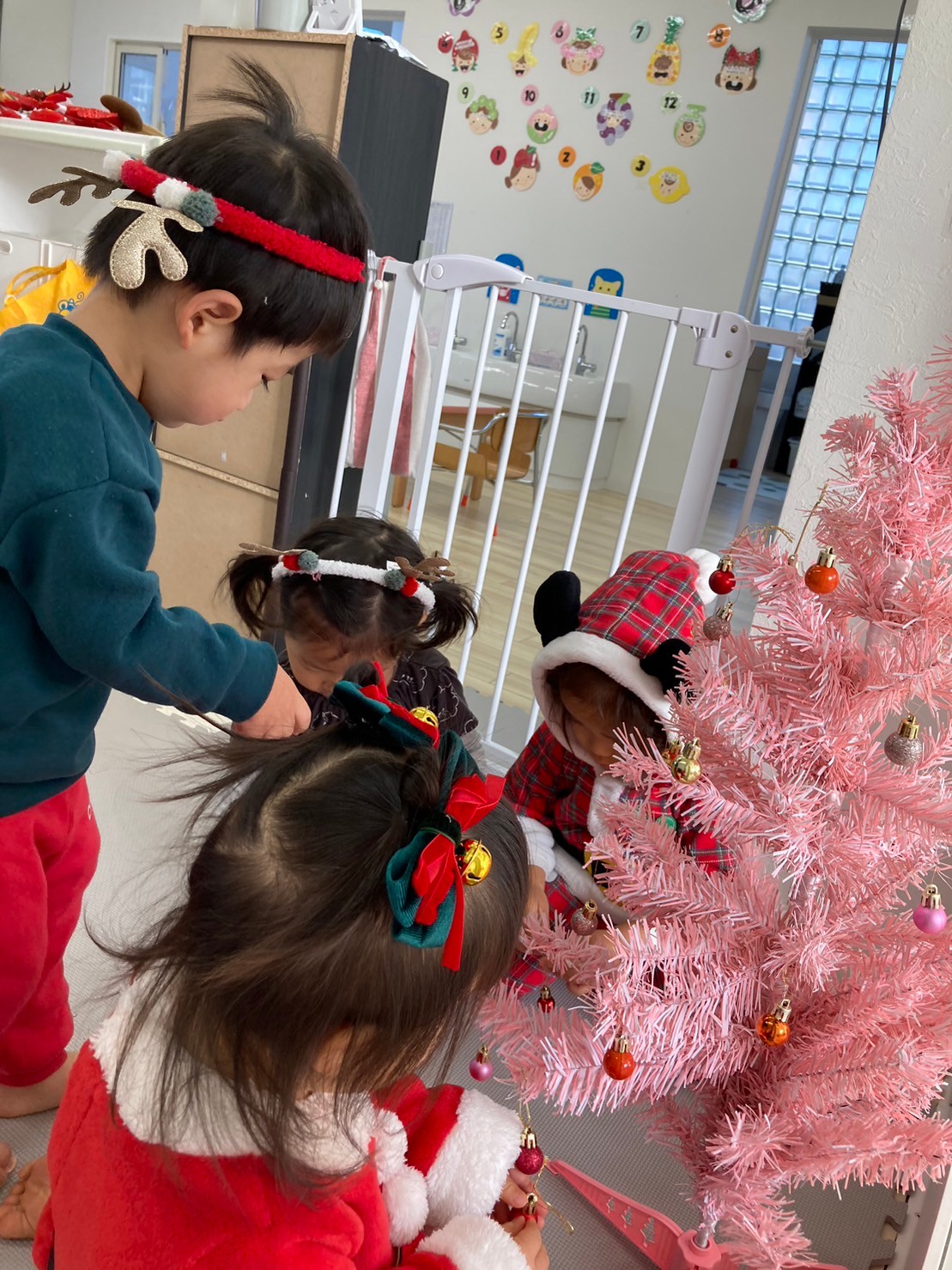 「今日はクリスマス会だよー」と言うと、「いえーい!」「やったー」と大盛り上がりです。