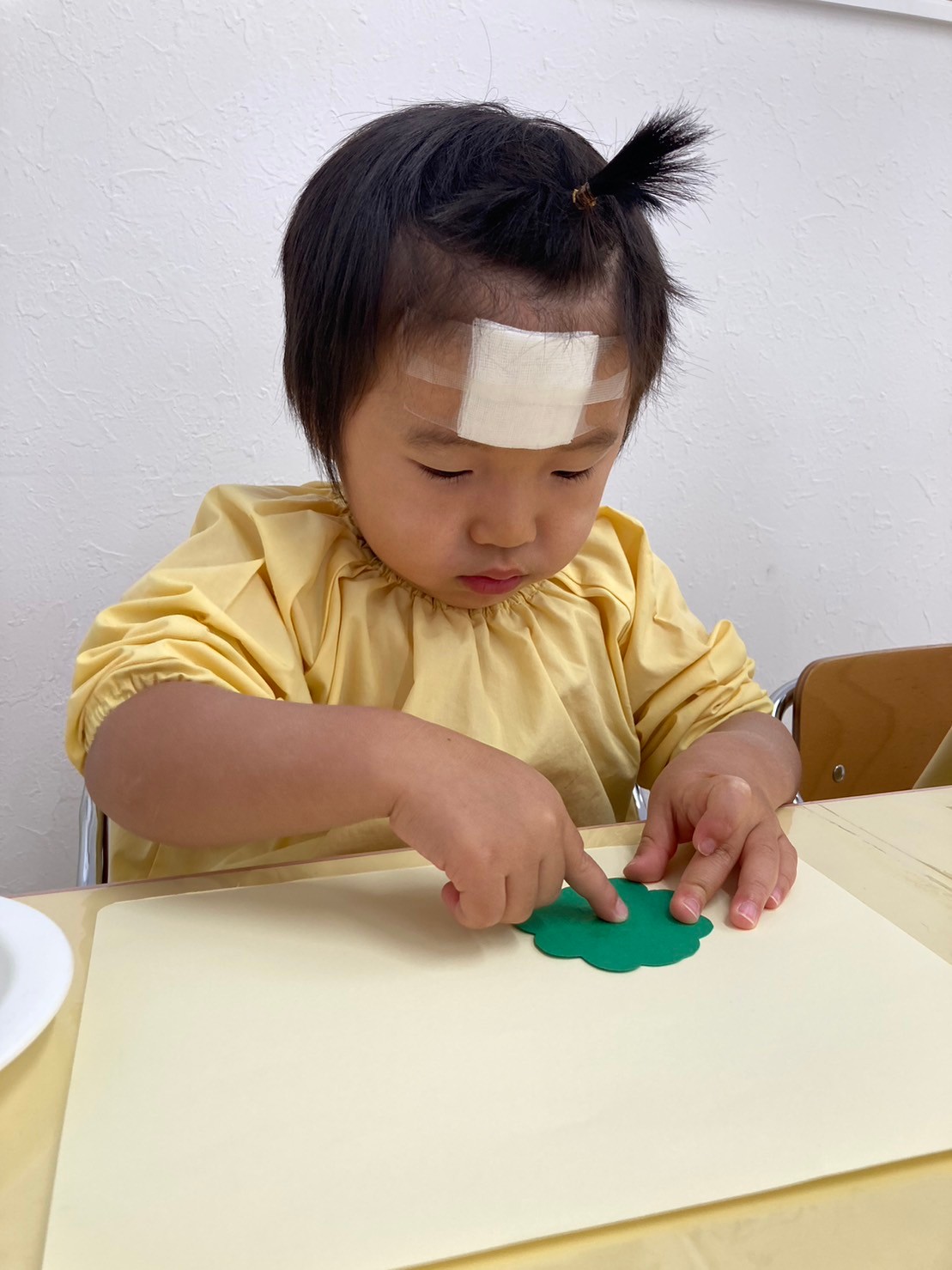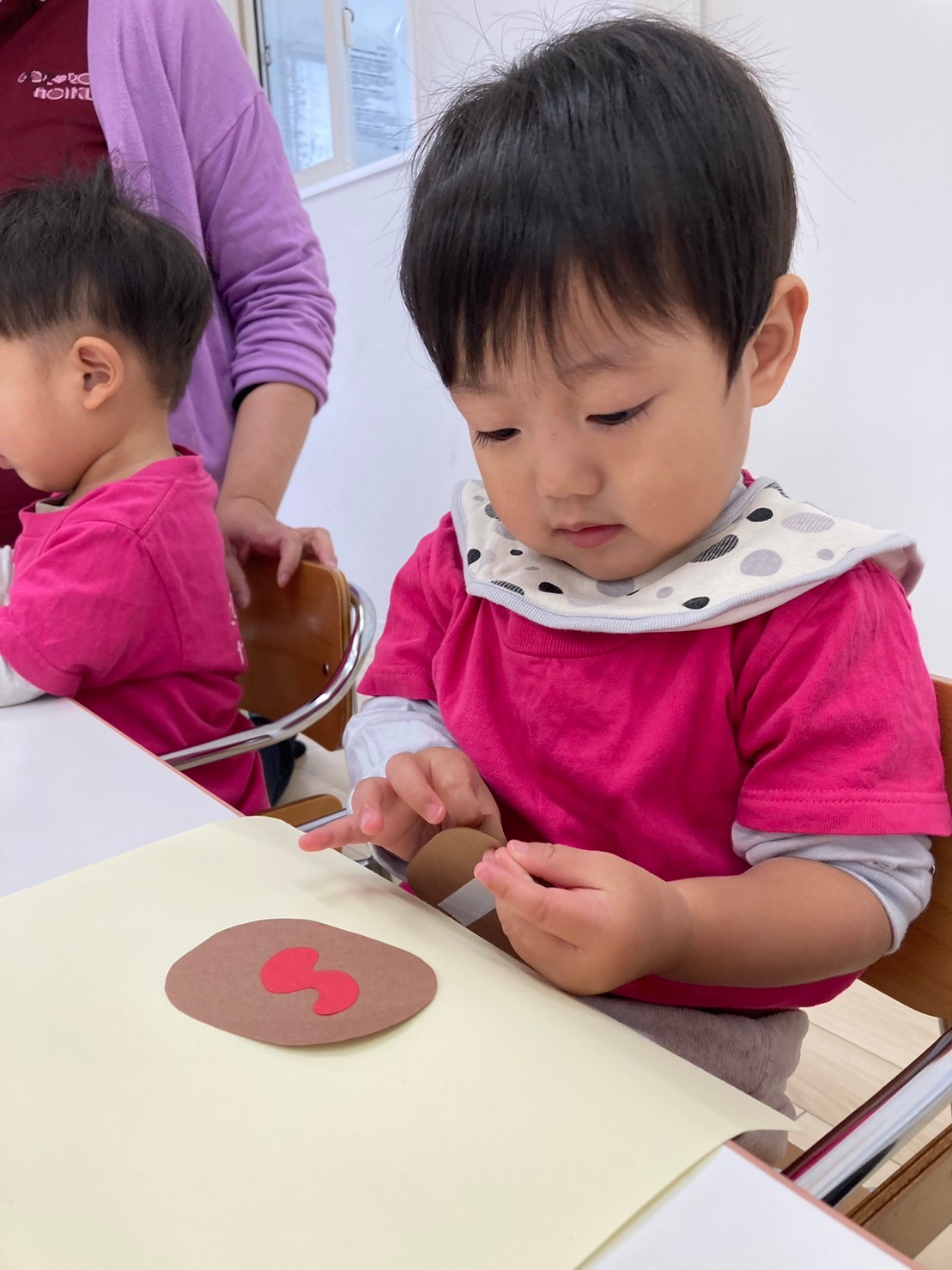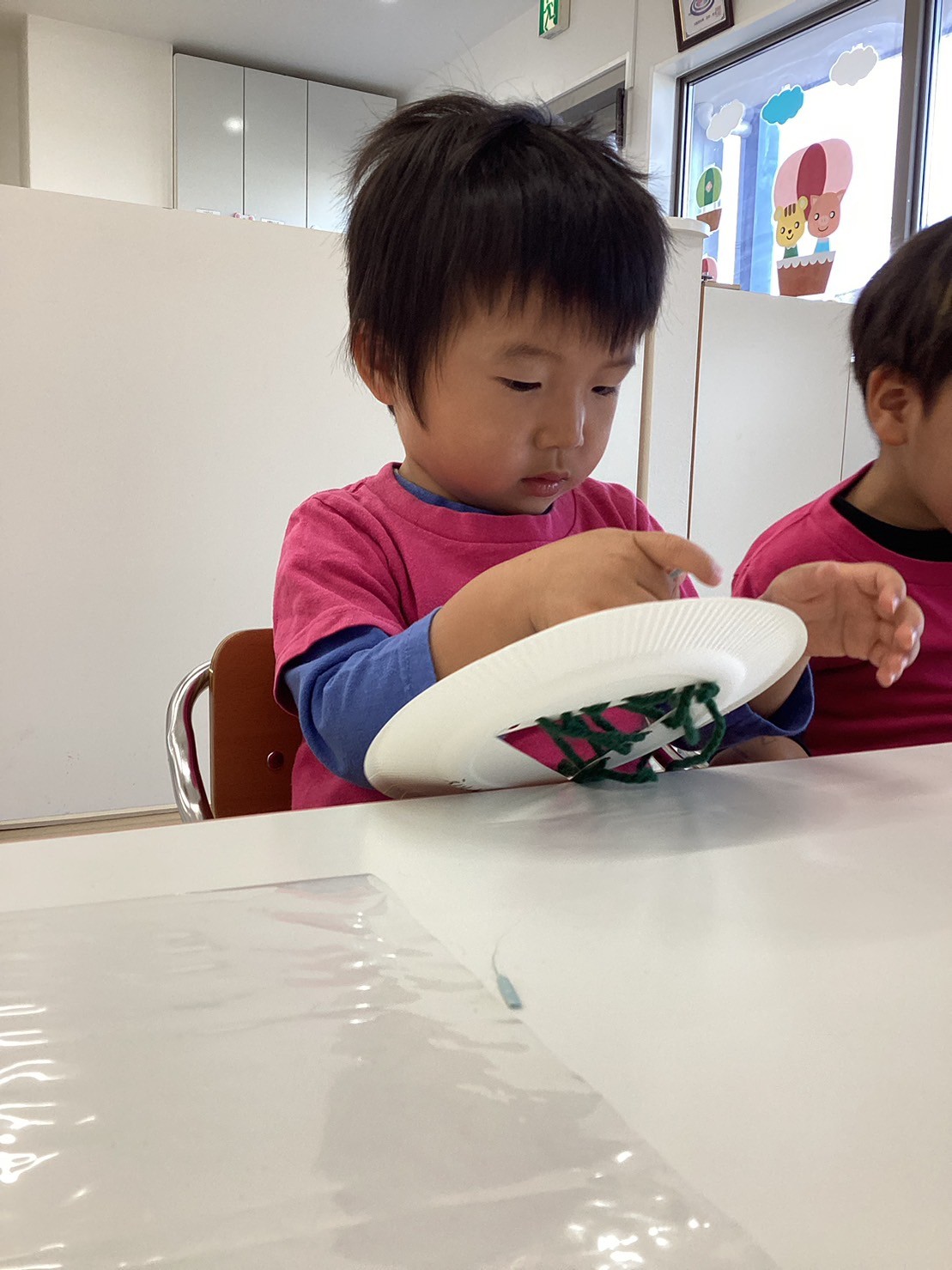 完成すると、それぞれ作ったものを見せ合って、「かわいい」「じょうず」と言って、褒め合っている姿が可愛かったです。