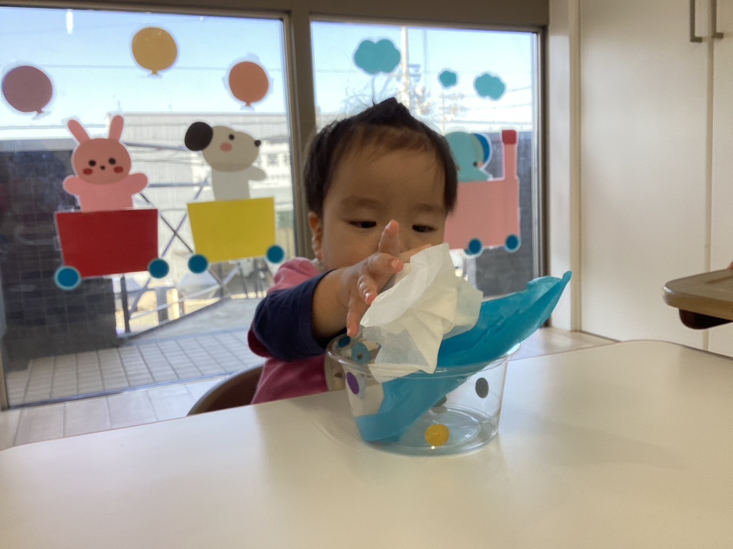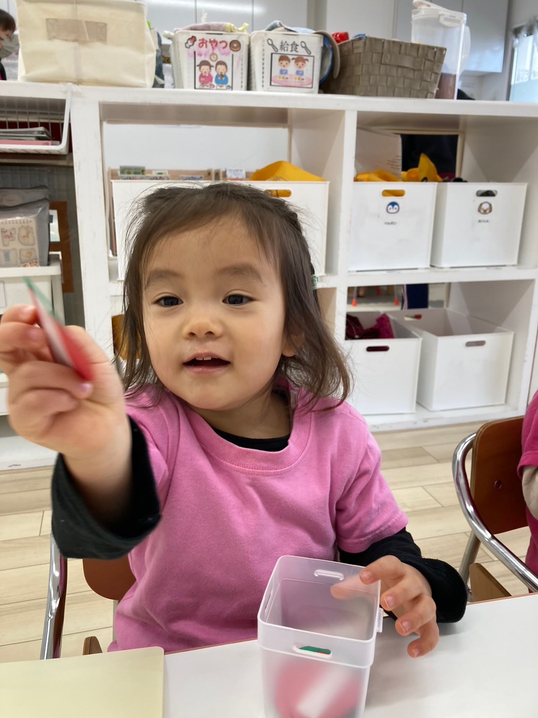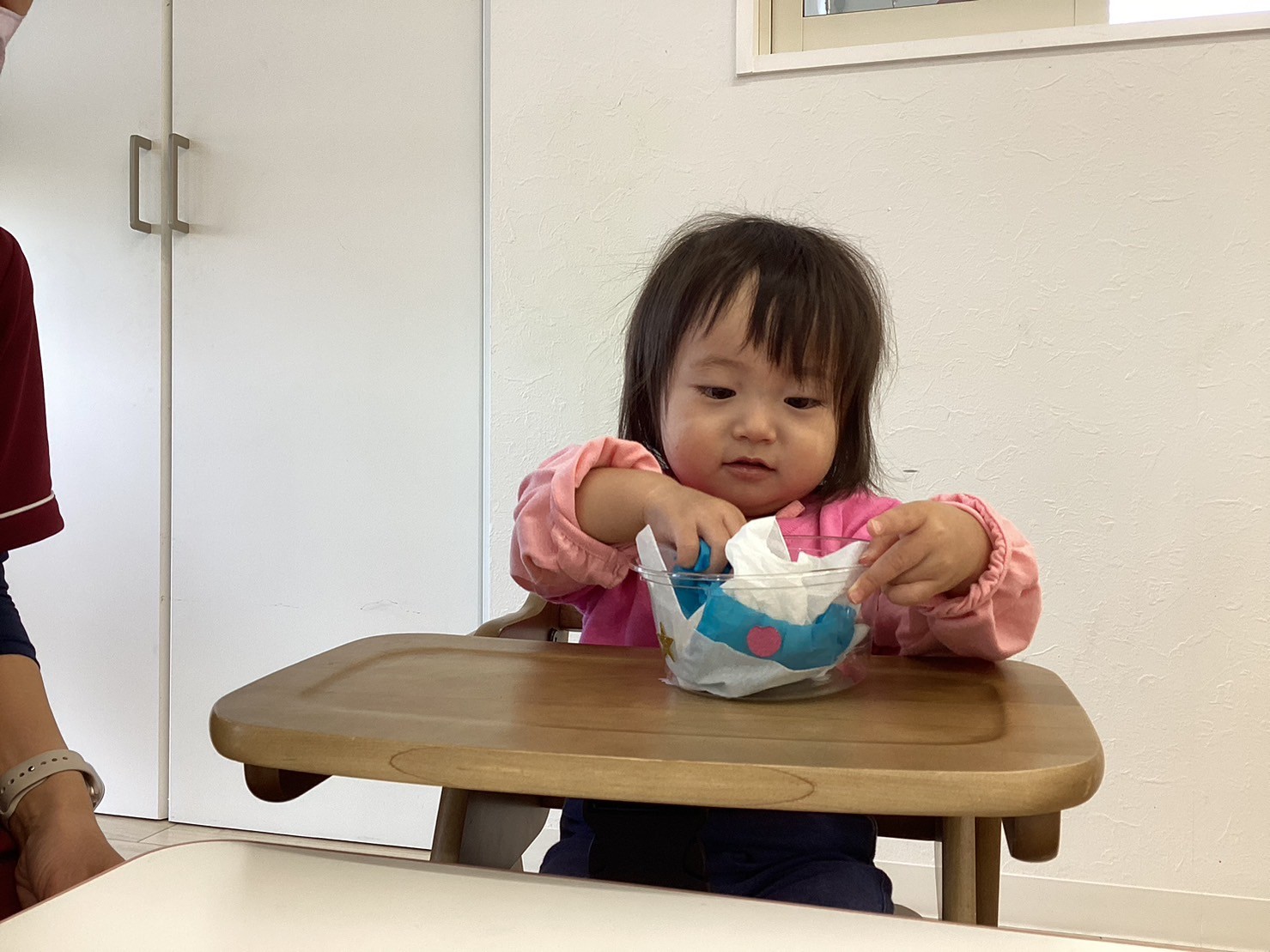 完成すると、それぞれ作ったものを見せ合って、「かわいい」「じょうず」と言って、褒め合っている姿が可愛かったです。