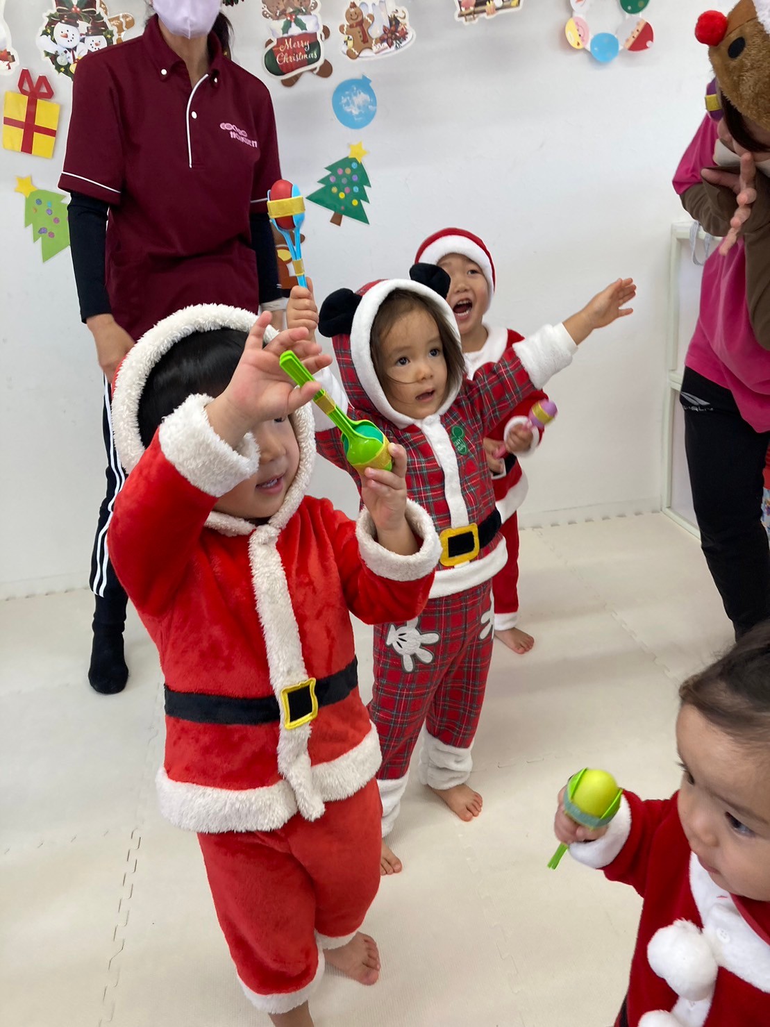 マラカスを持ってジングルベルを踊ると、シャカシャカたくさん音が鳴り笑顔いっぱいでした。