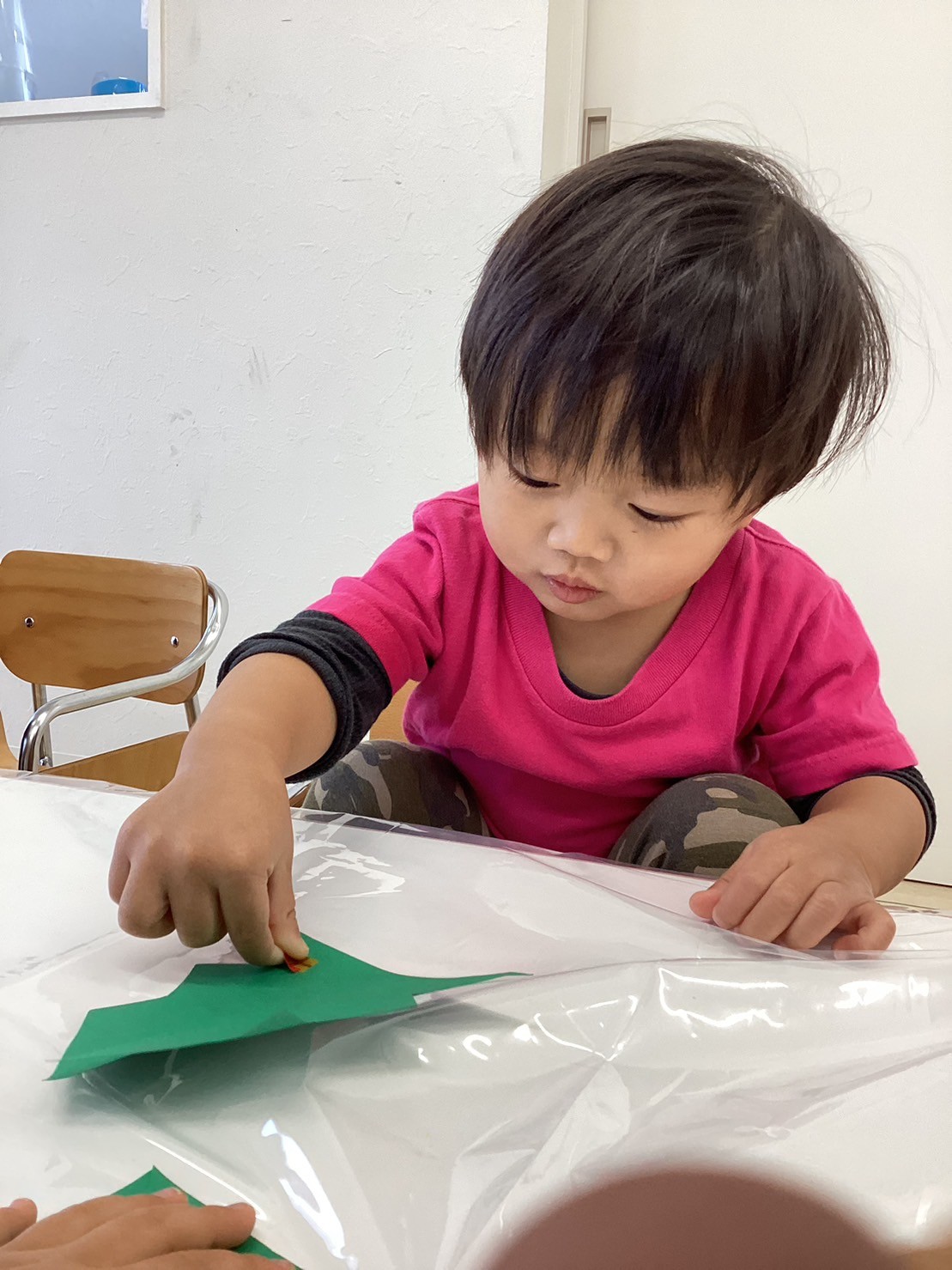 保育園に飾ることを話すと、「ママにみせる」「みんなみてくれるかなー」と、期待しながら作っていました。