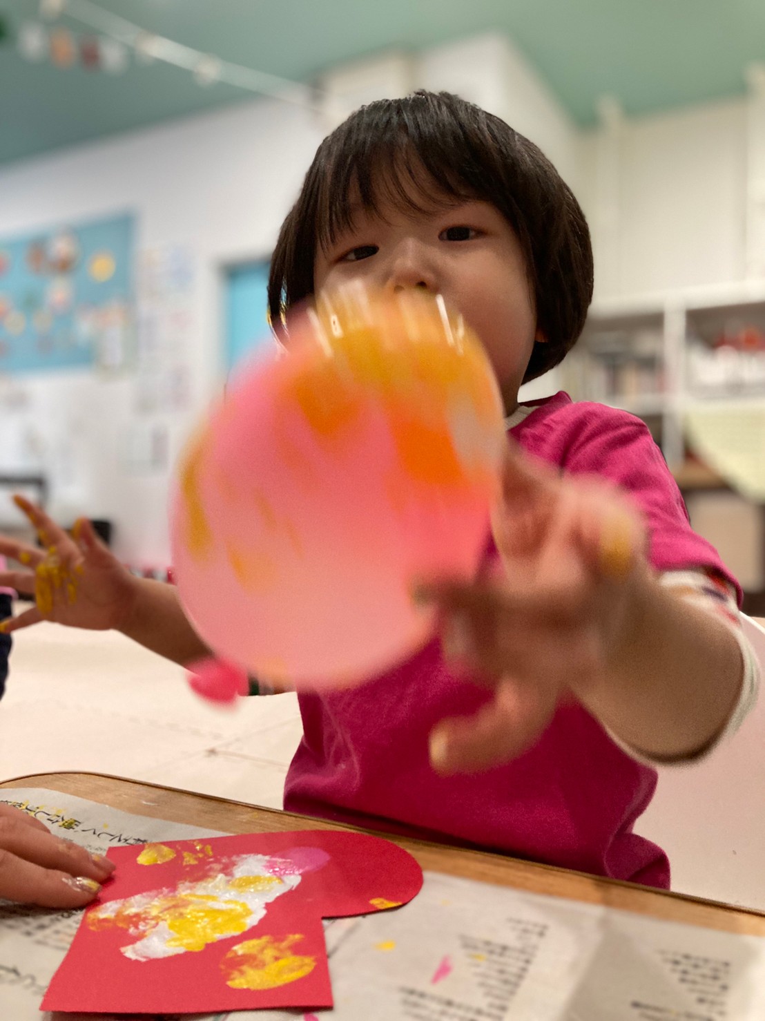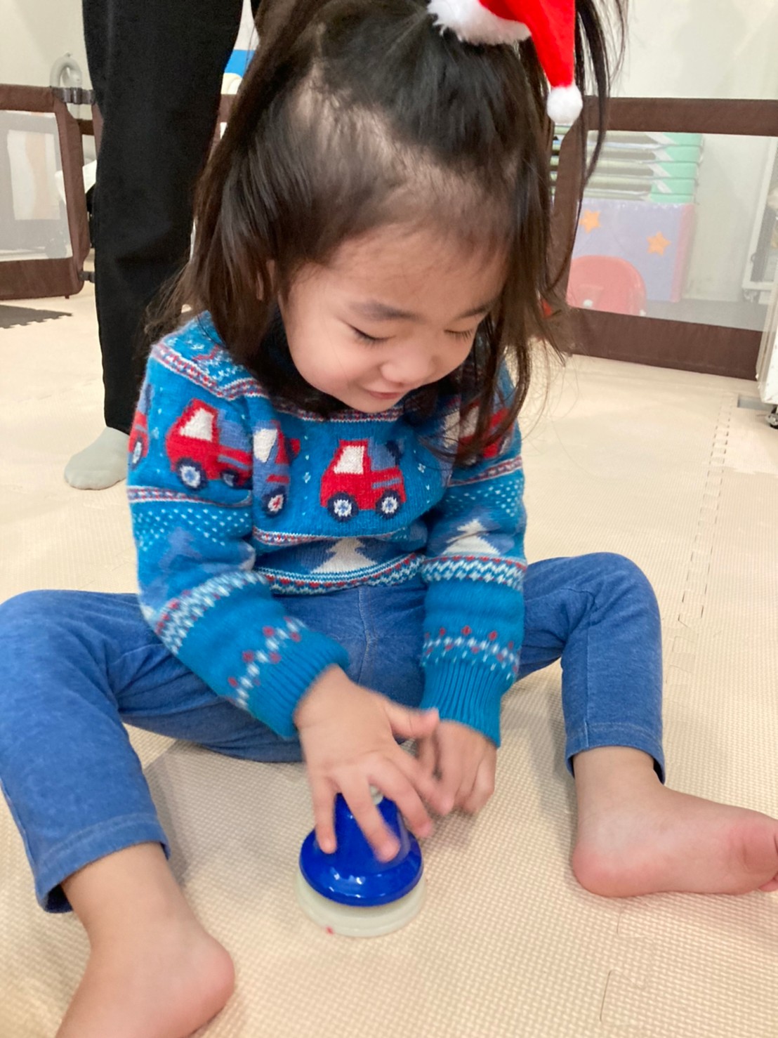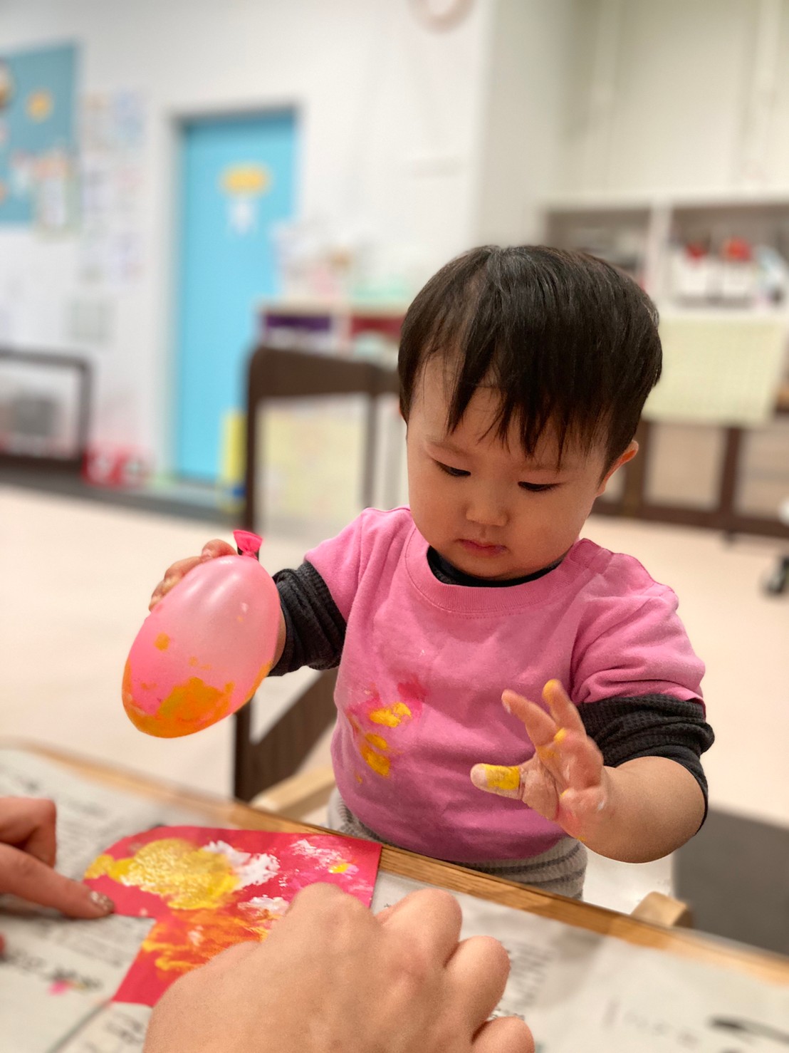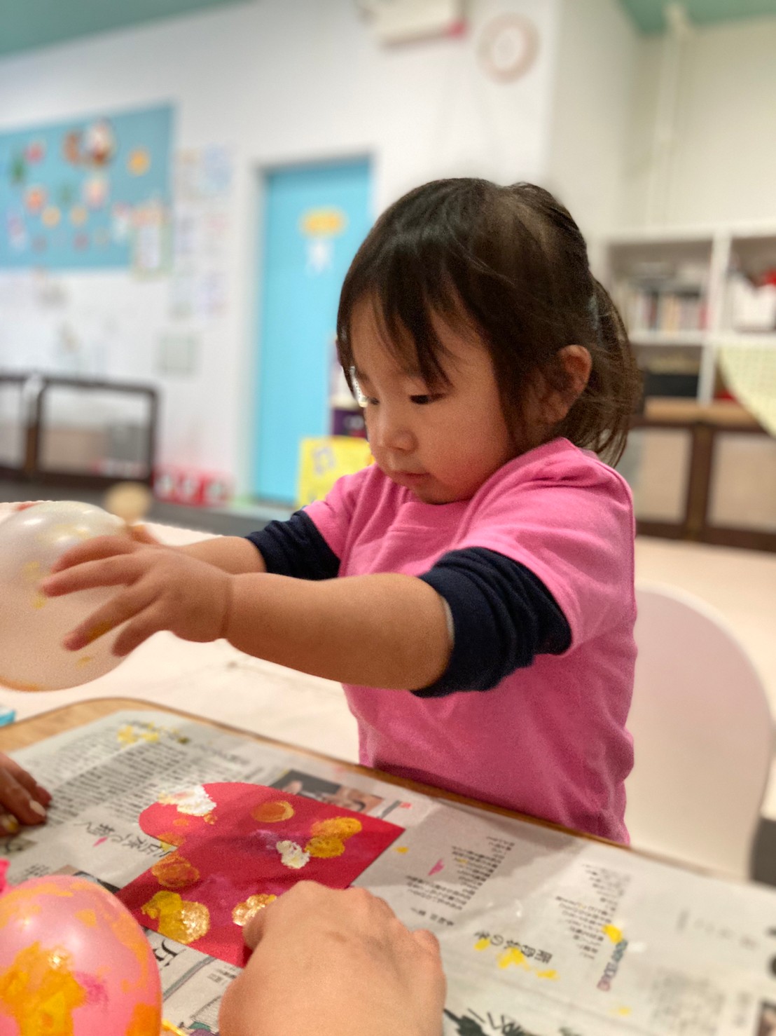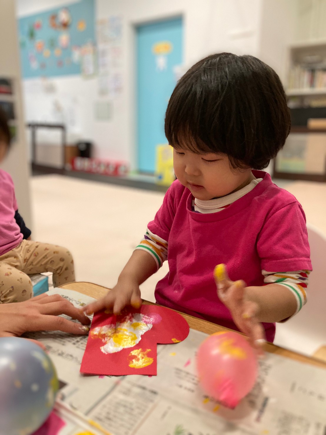 ブーツは、風船に絵の具をつけて、ブーツにカラフルな模様をつけて、クリスマスツリーに飾りましたよ☆