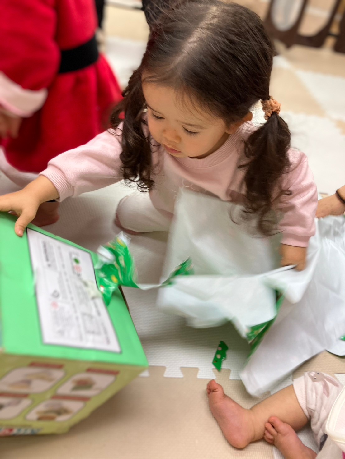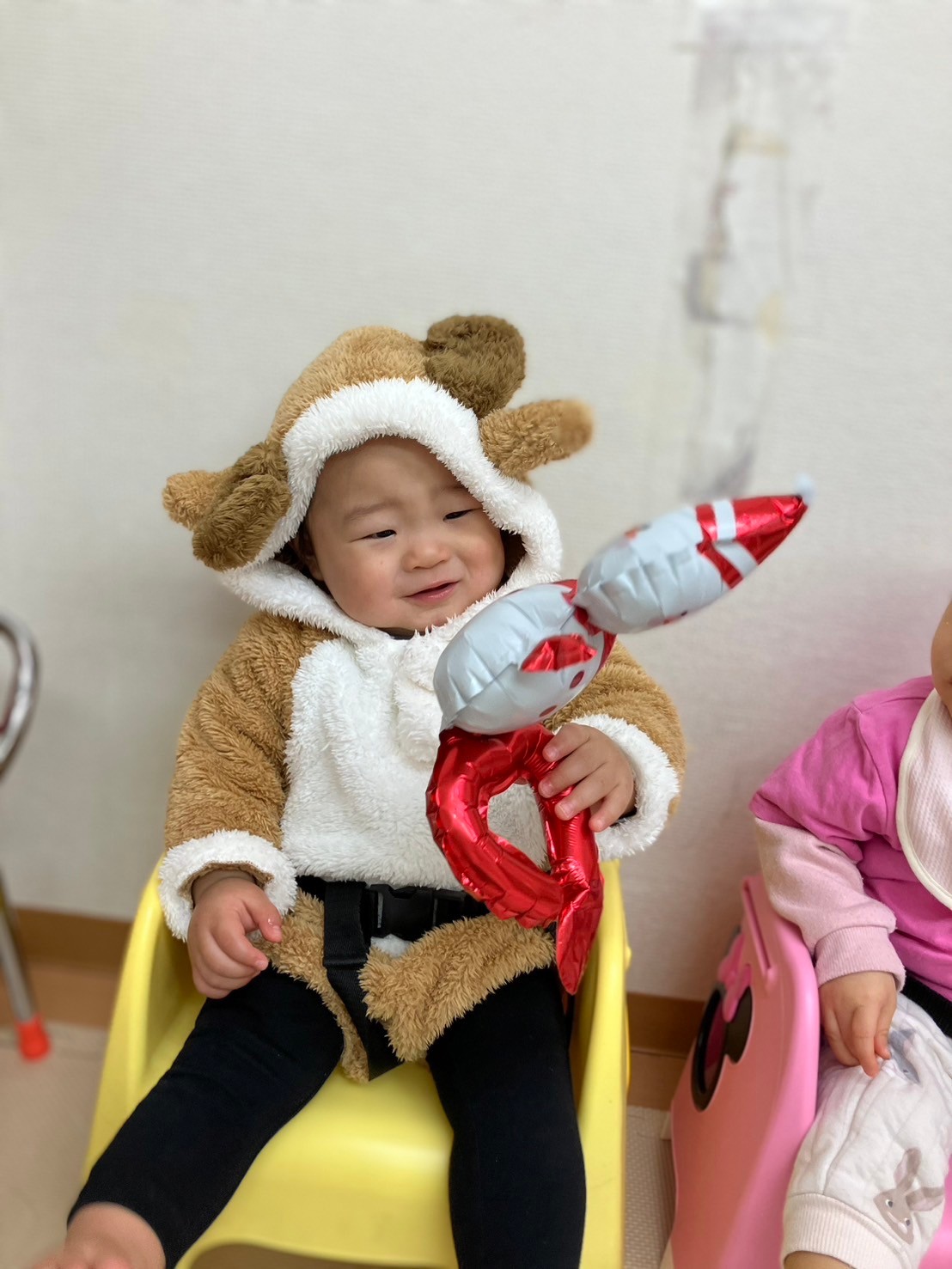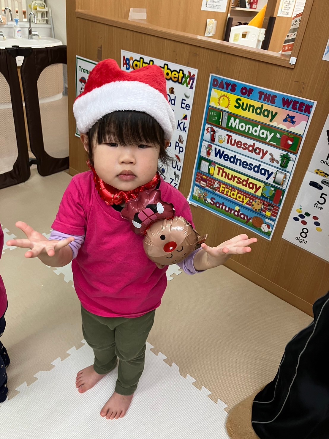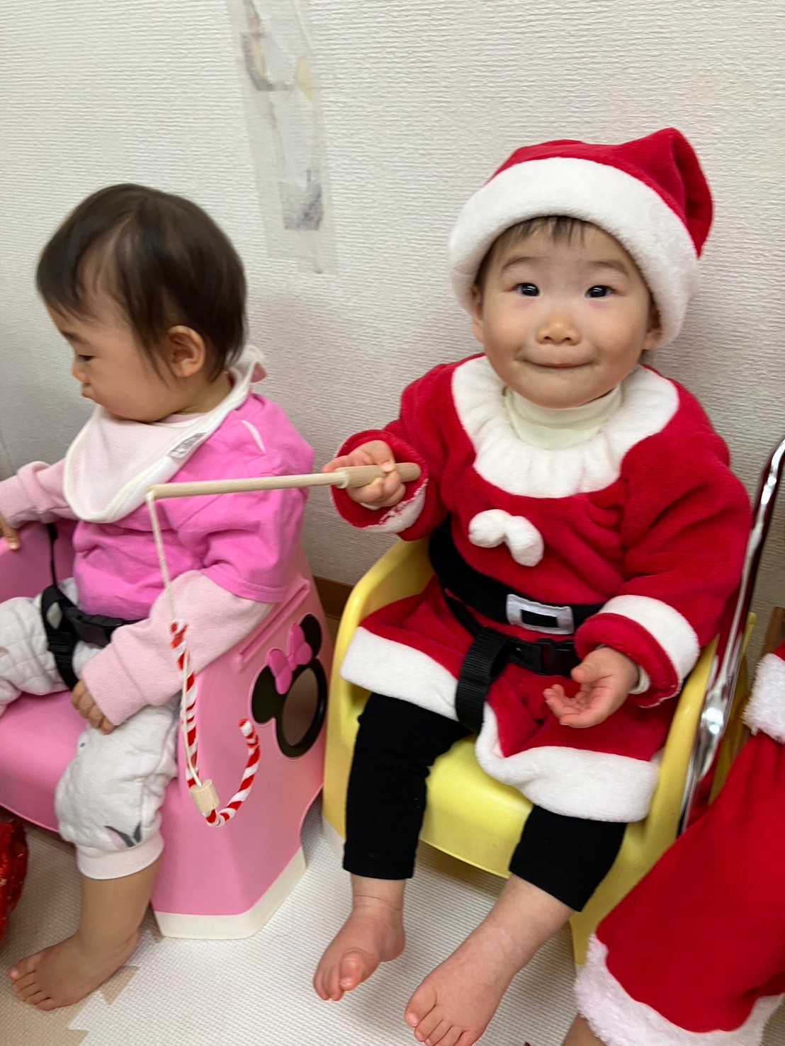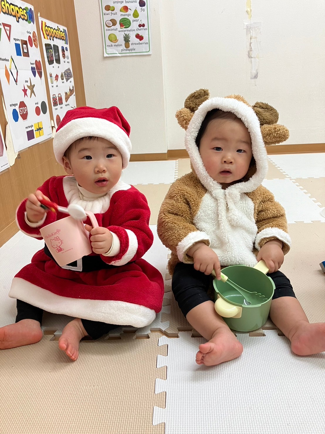 ミニサンタやトナカイの衣装の子、赤い帽子を被る子とワクワクした雰囲気で始まりました。