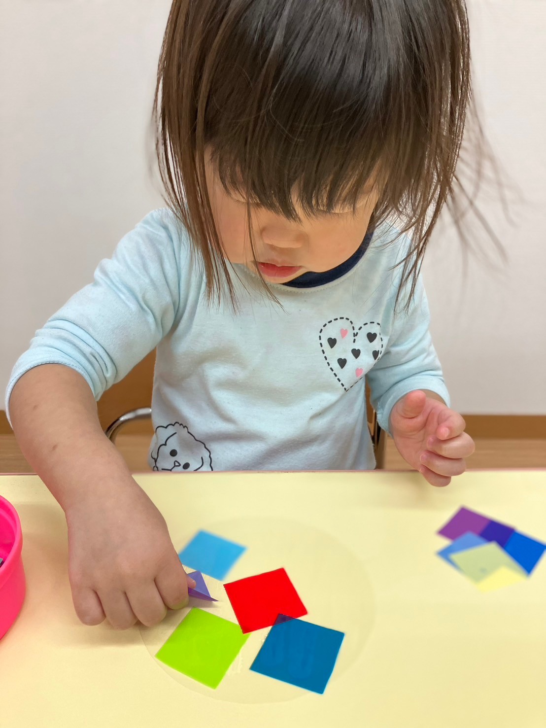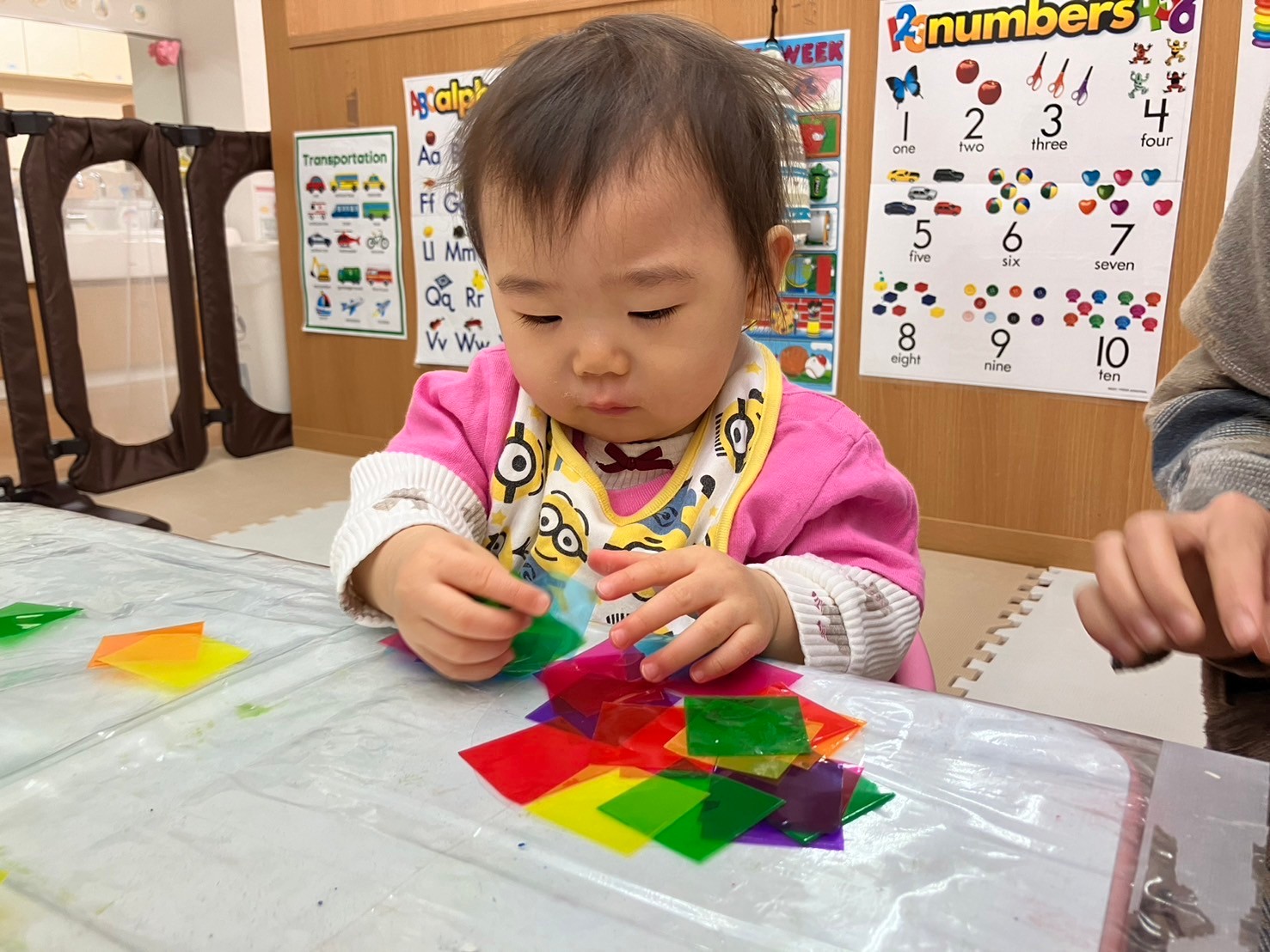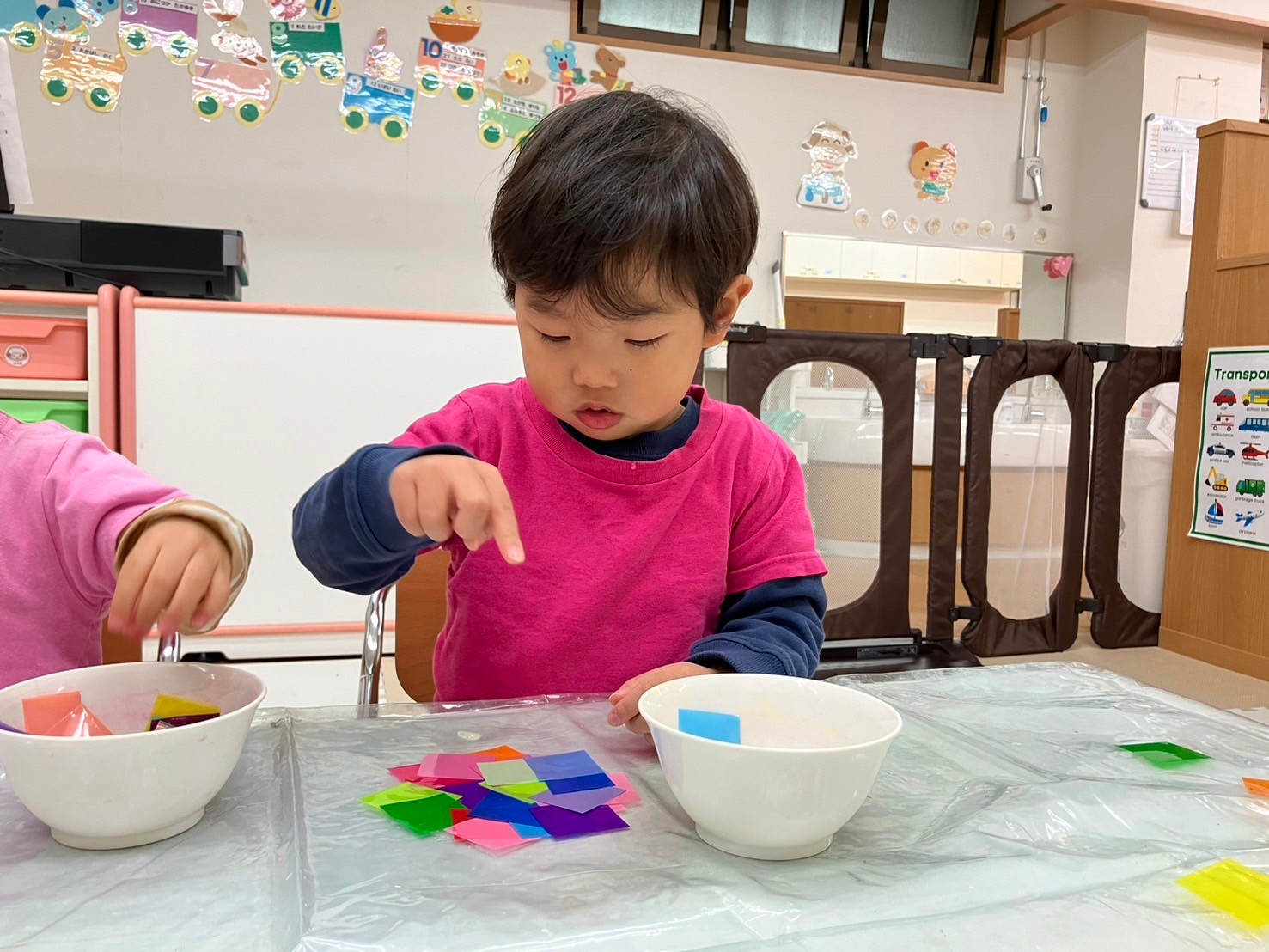 「これはあかー!あおもはろうー!」と興味津々な子ども達。