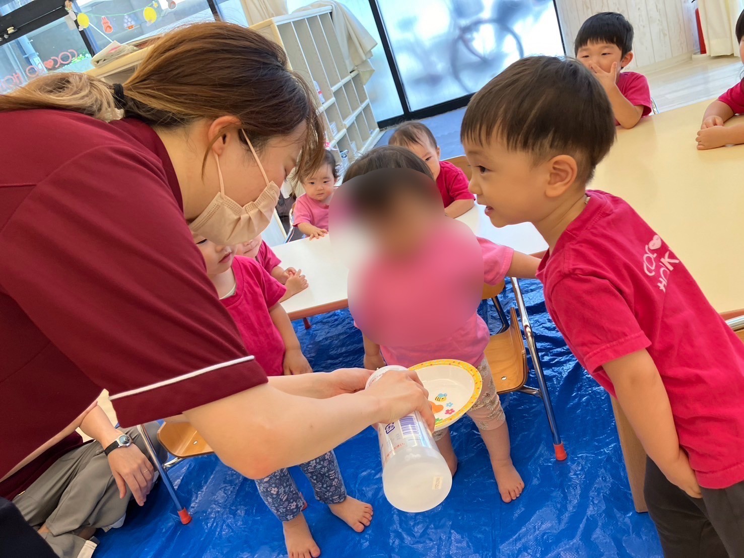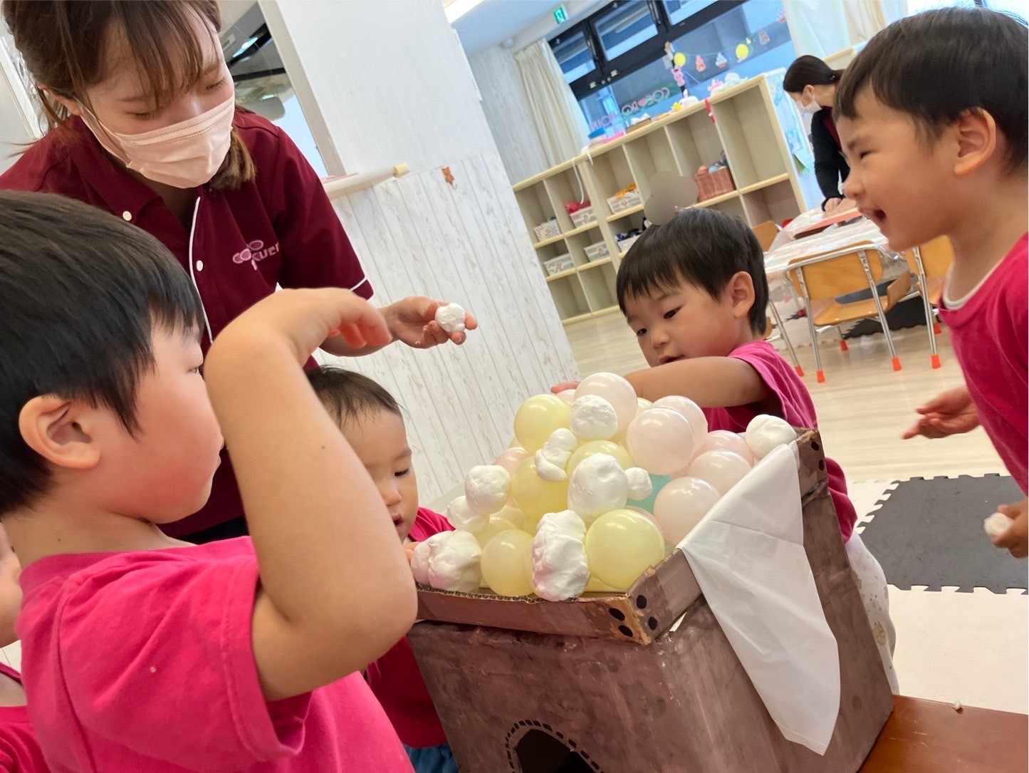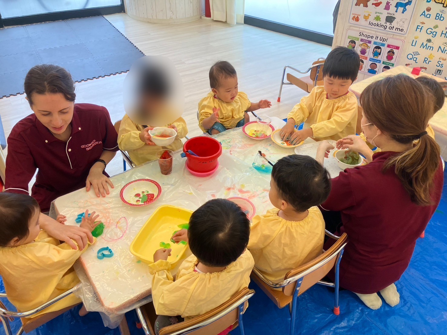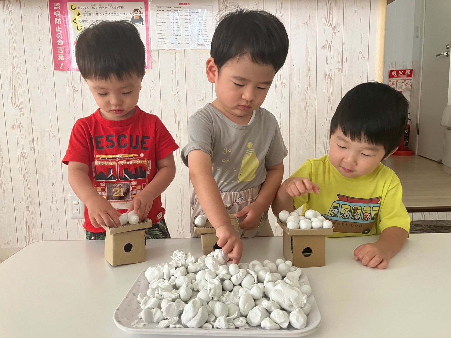 手でちぎったり、カップに入れたり、達成感でいっぱいの子ども達でした。