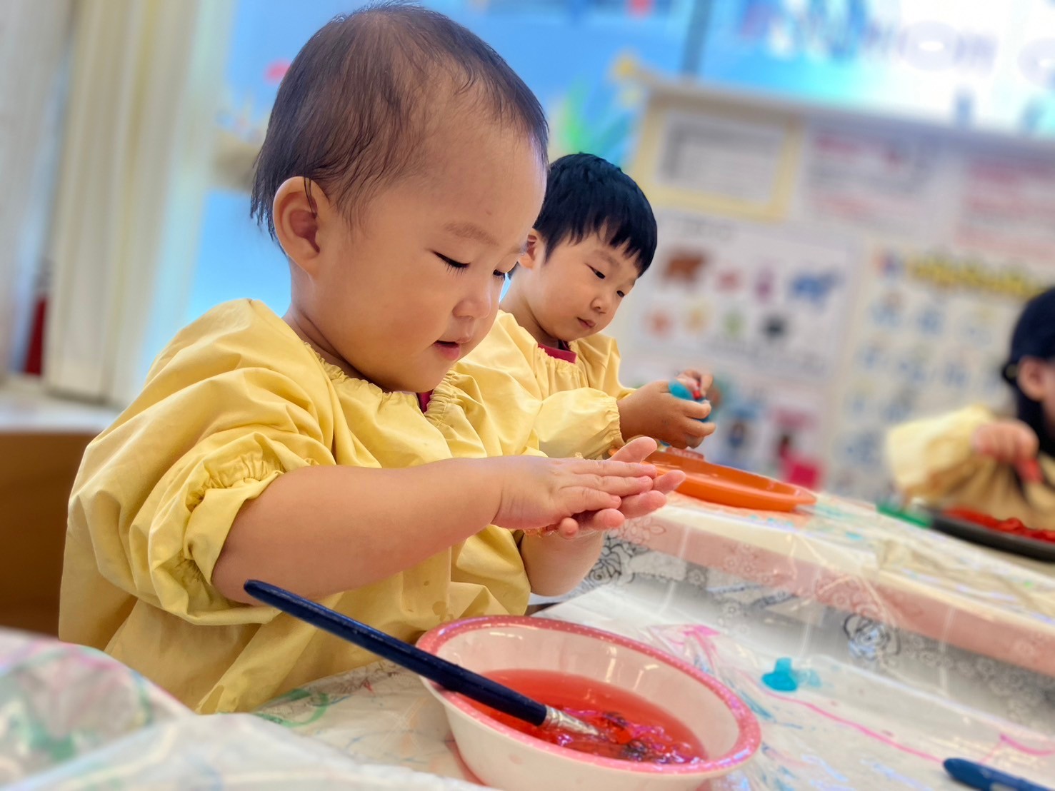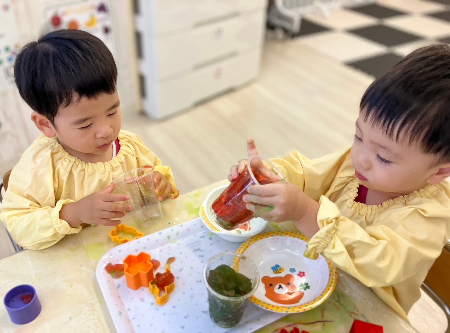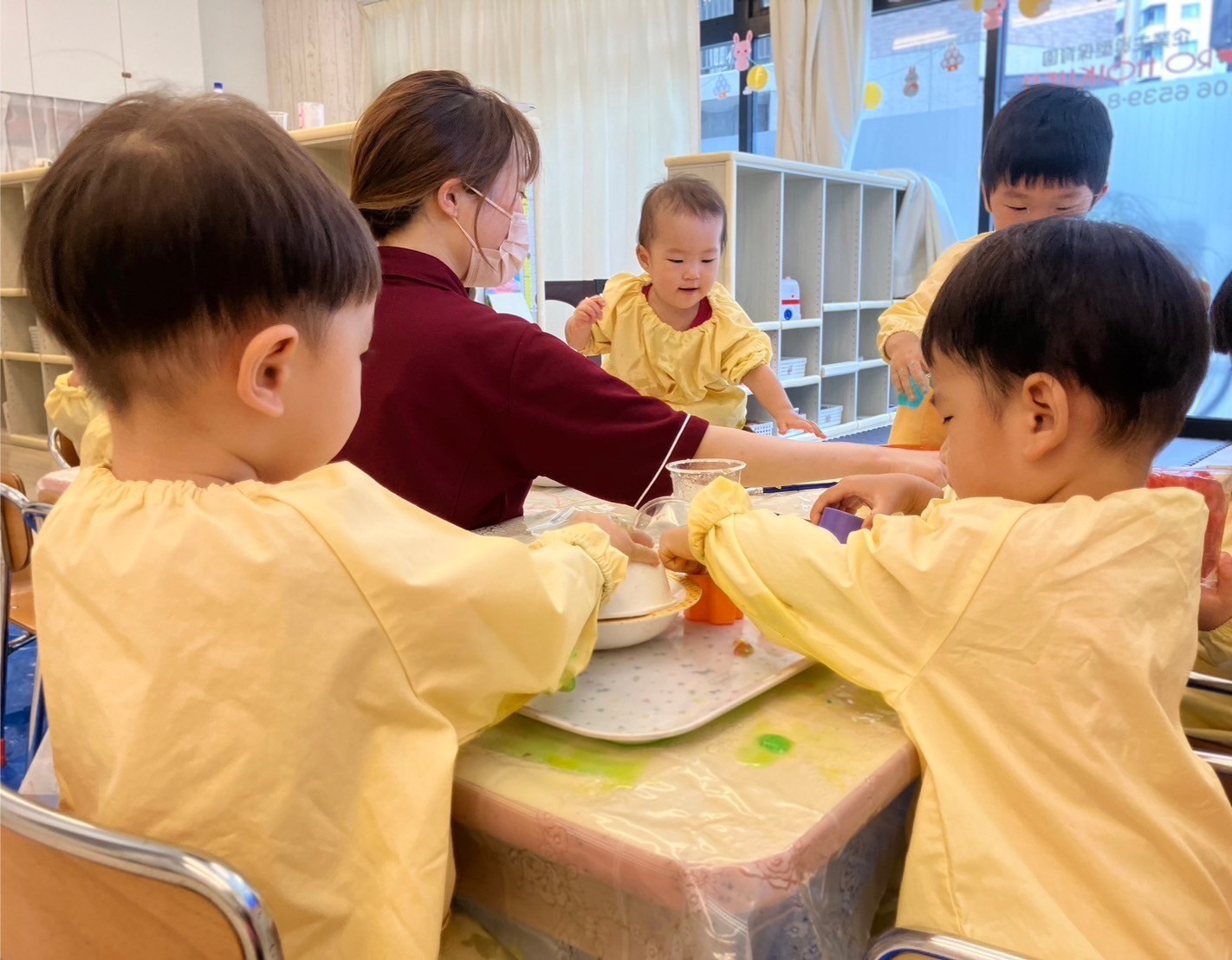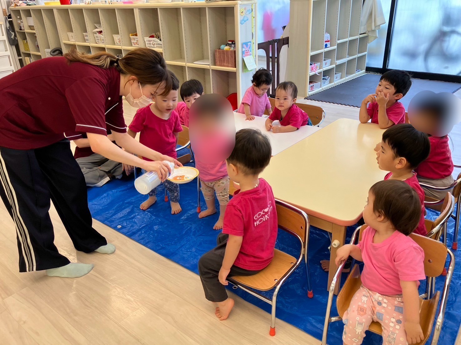 手でちぎったり、カップに入れたり、達成感でいっぱいの子ども達でした。
